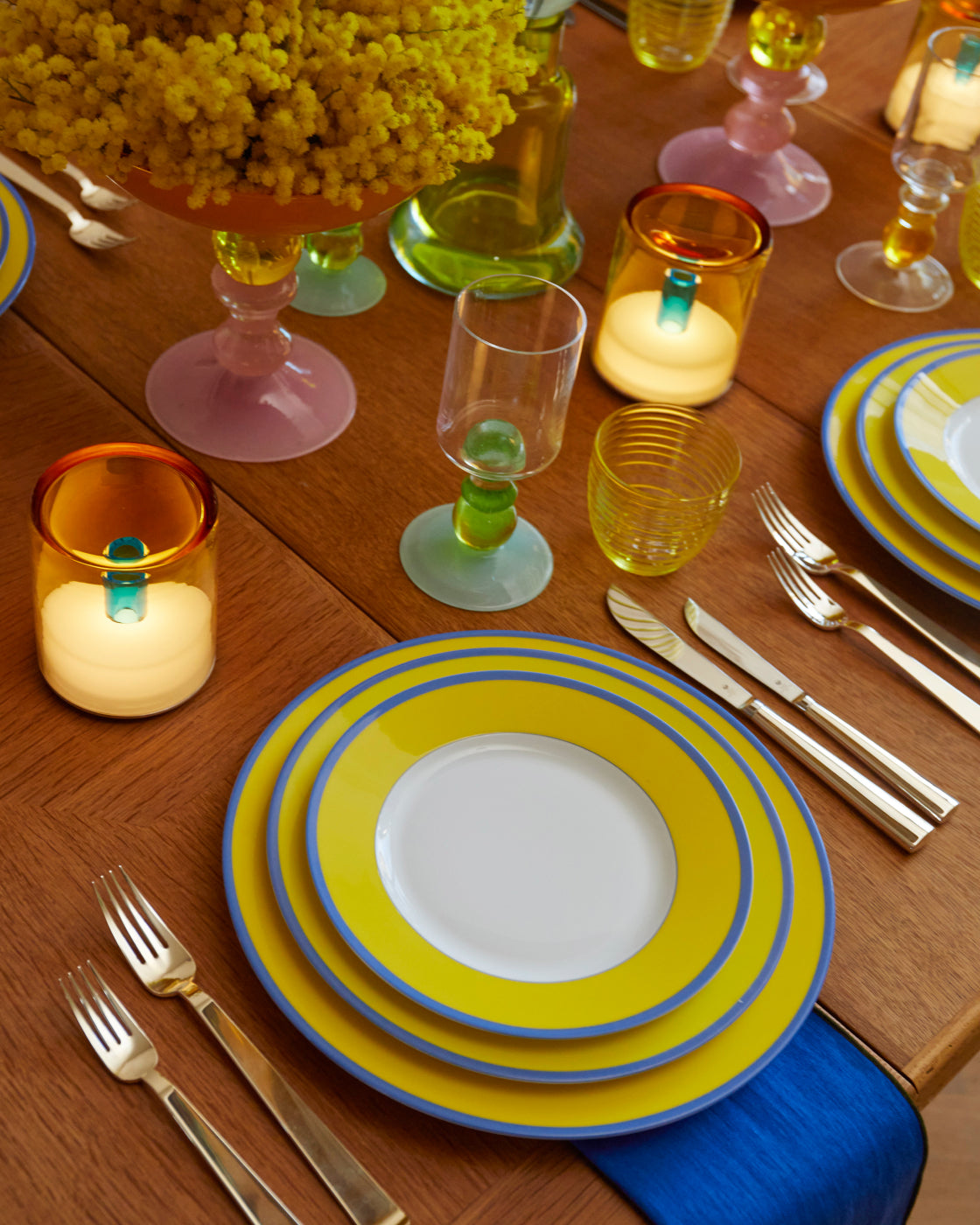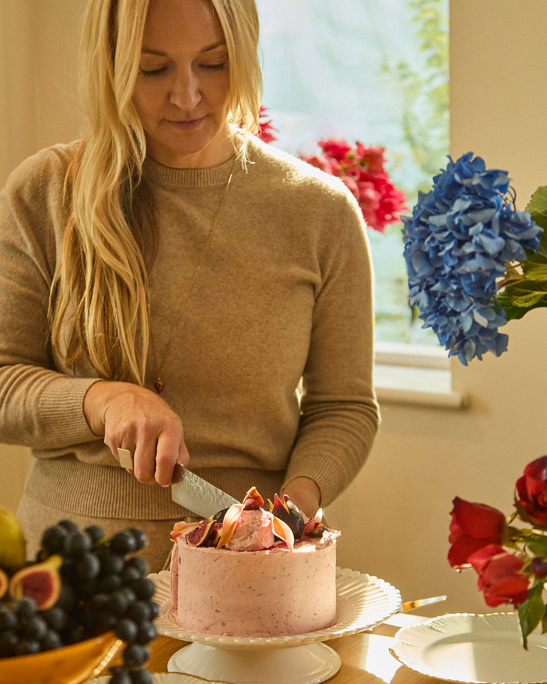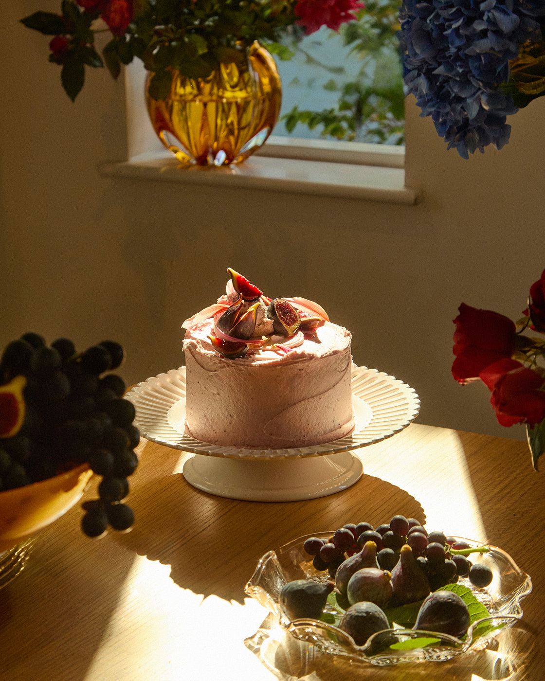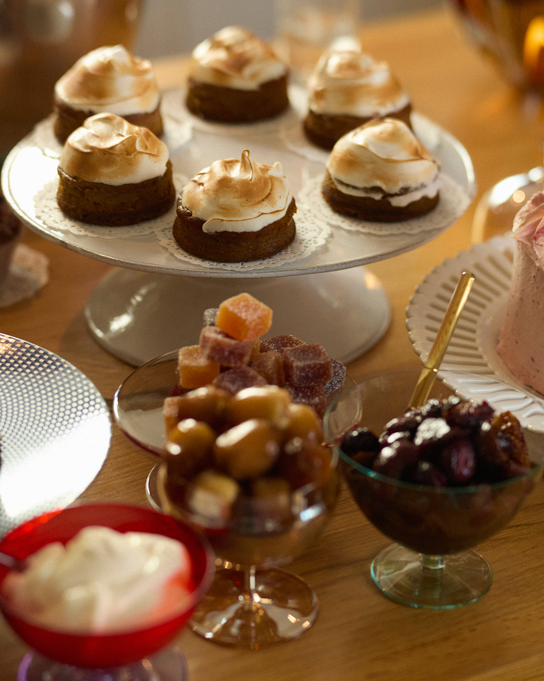 “I always make a dessert buffet table: it’s joyful and filled with color which I love. To create visual interest, it’s important for everything to not look too symmetrical. So, I have cake stands and objects of different heights and materials… there has to be a flow, and I want my buffet to resonate with abundance.”