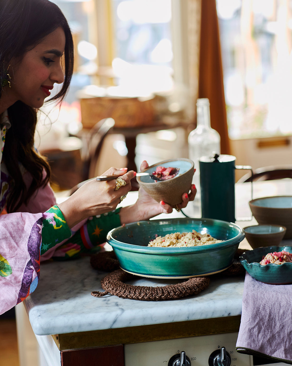 “People love platters—you don't even have to do a whole dinner. Sometimes the simplest things are the best: good produce, and seasonal. Cut up some tomatoes with salt and good olive oil, buy some lovely hams and charcuterie, and make a communal bowl of soup or stew, served in a beautiful dish.”