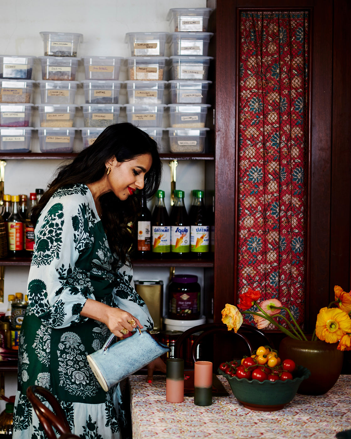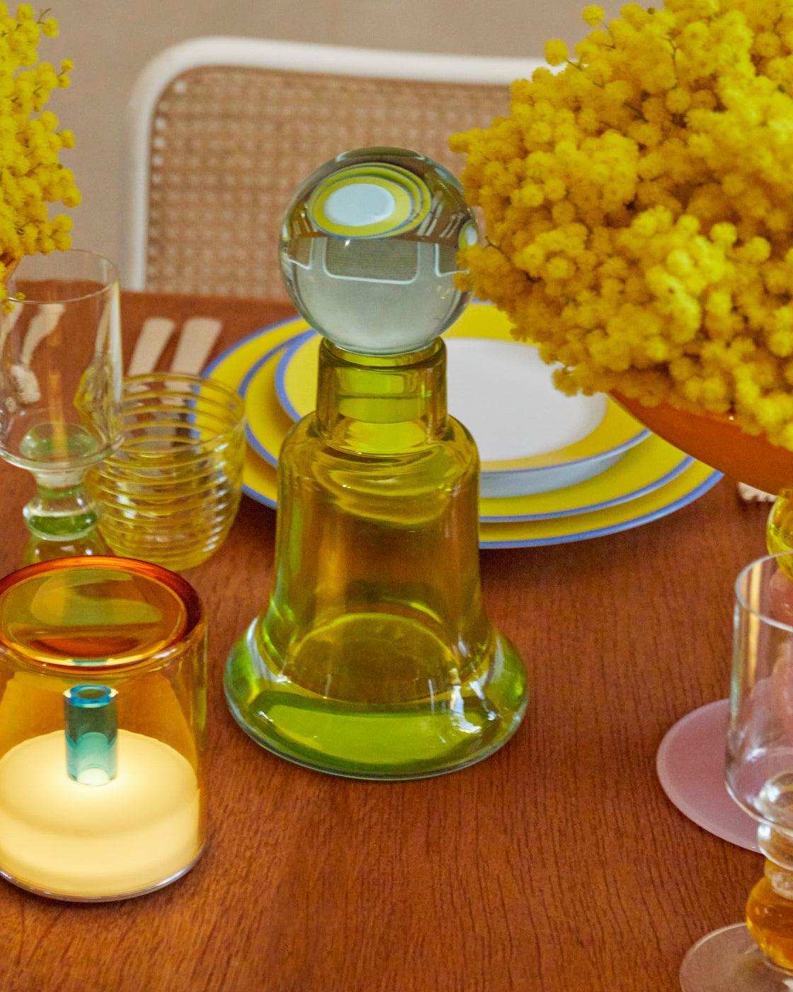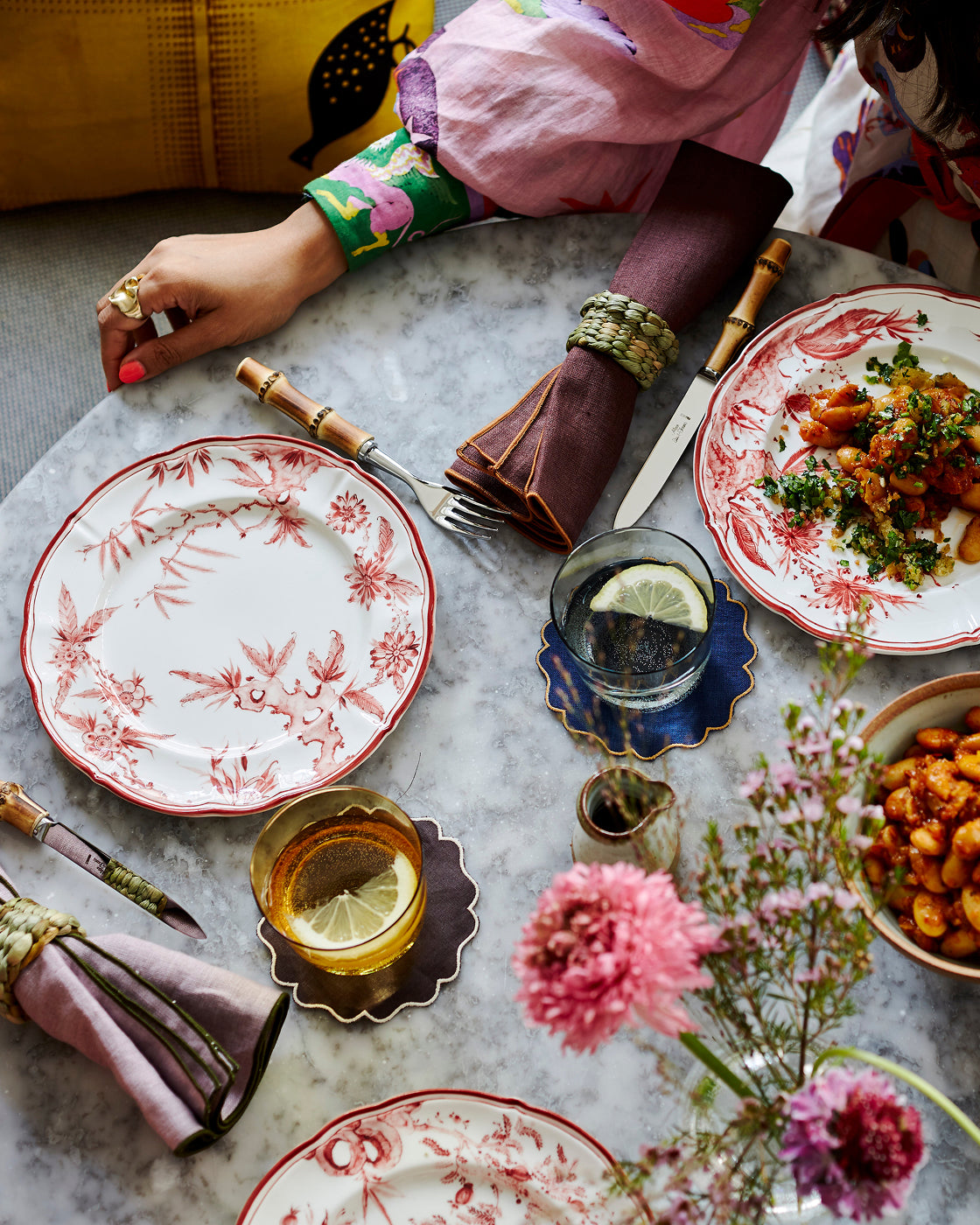 “I like mixing plain plates with patterned ones which gives a natural and relaxed feel. I wouldn’t say I have any rules and there doesn’t have to be a perfect order, but I do think a lot about complementary colors and try to use my eye. I think it’s good to be brave with mixing genres and eras of objects, too—for example, old furniture and modern decorative objects work really well together. Just trying things out is the fun bit.”
