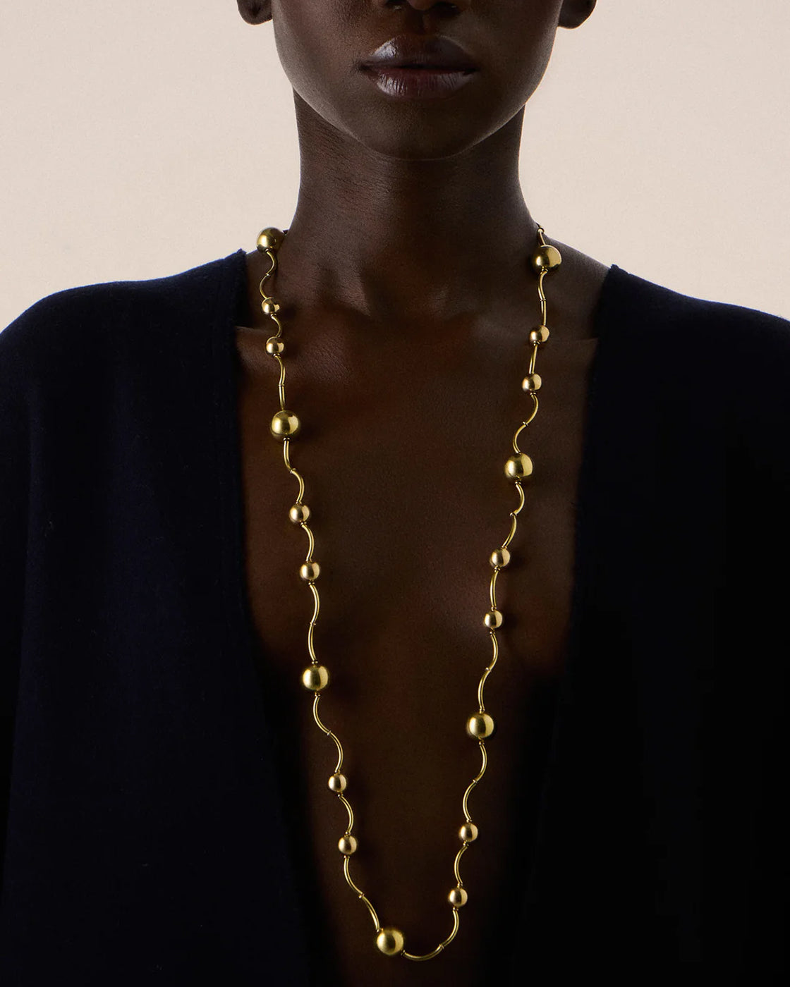 Mahnaz Collection - Vintage Manfredi 18-Karat Yellow Gold Long Ball and Twisted Tube Chain Necklace - Gold - ABASK