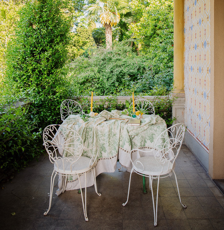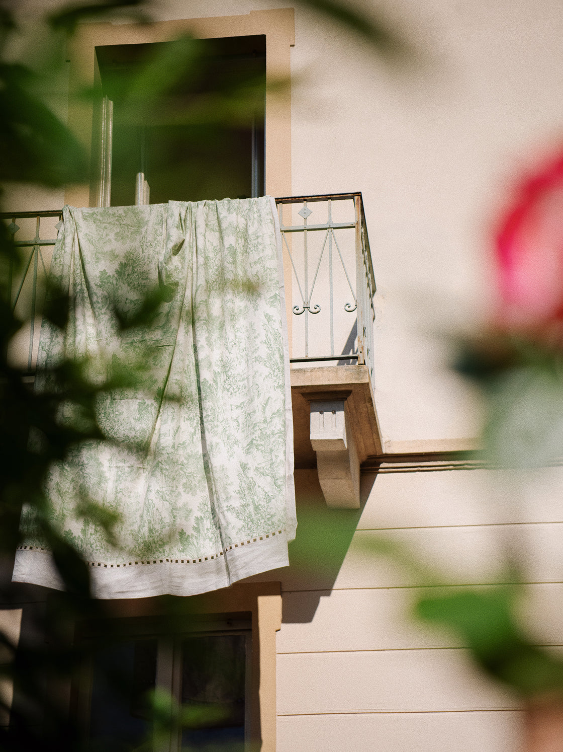 "Italian linens are famous around the world and seeing them hang from a balcony is quite an iconic scene. During the shoot, we left our lunch tablecloth hanging on the balcony and when I saw it from the garden I shot it without touching it at all. I like the idea that imperfections create many layers and these layers are always more interesting."