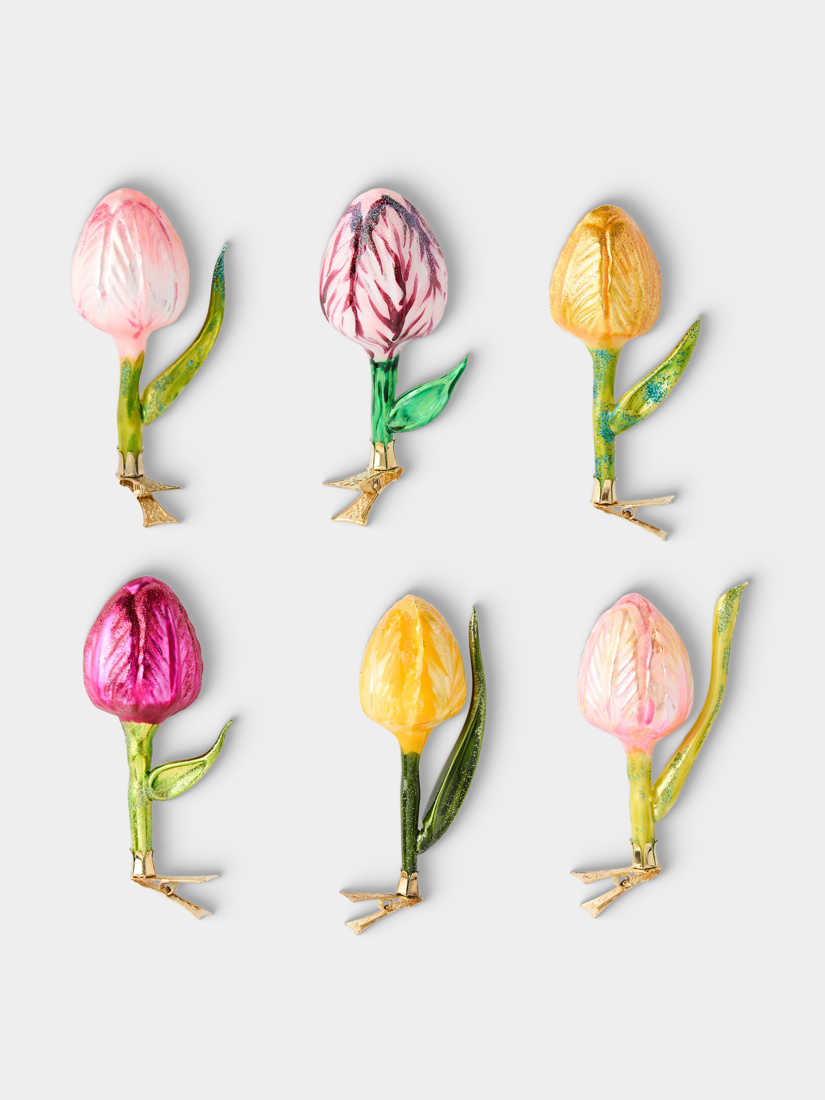 ABASK Decorations Tulip Garden Hand-Blown Glass Clip-On Tree Decorations (Set of 6)