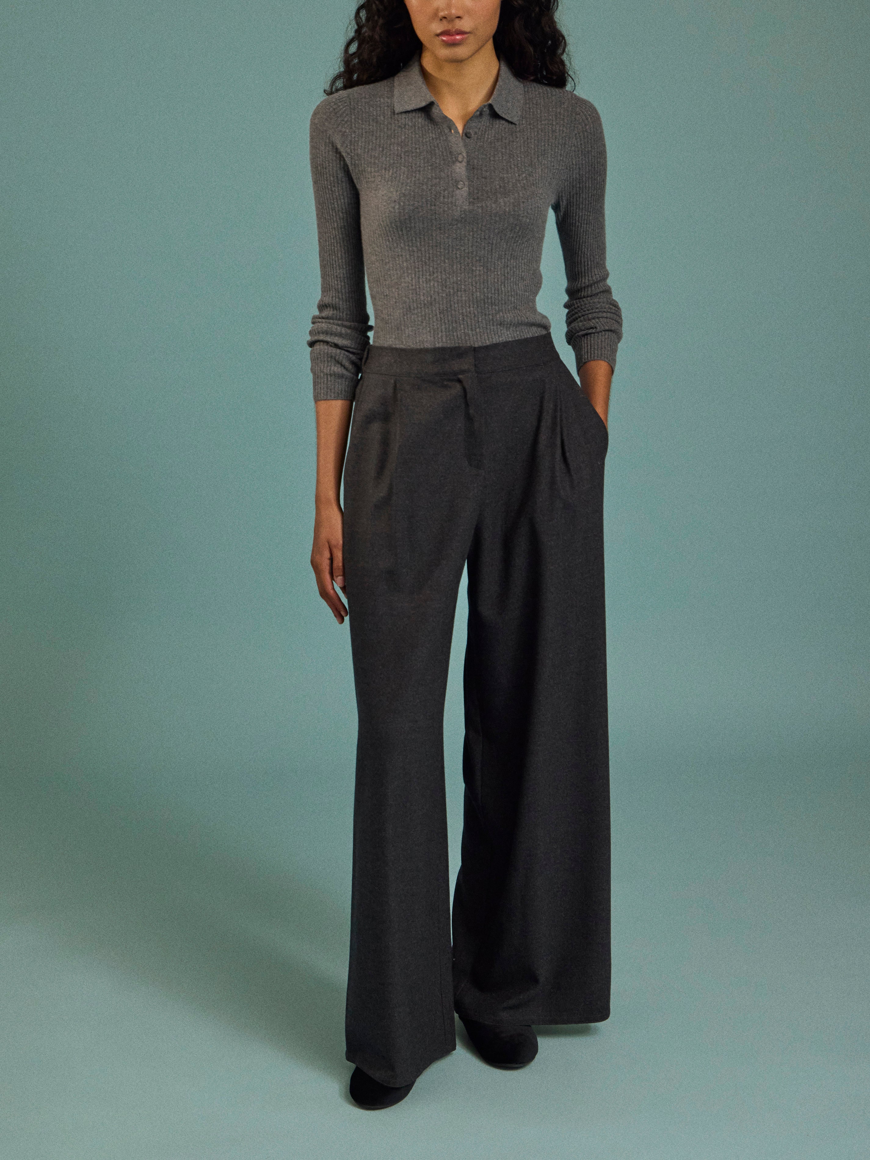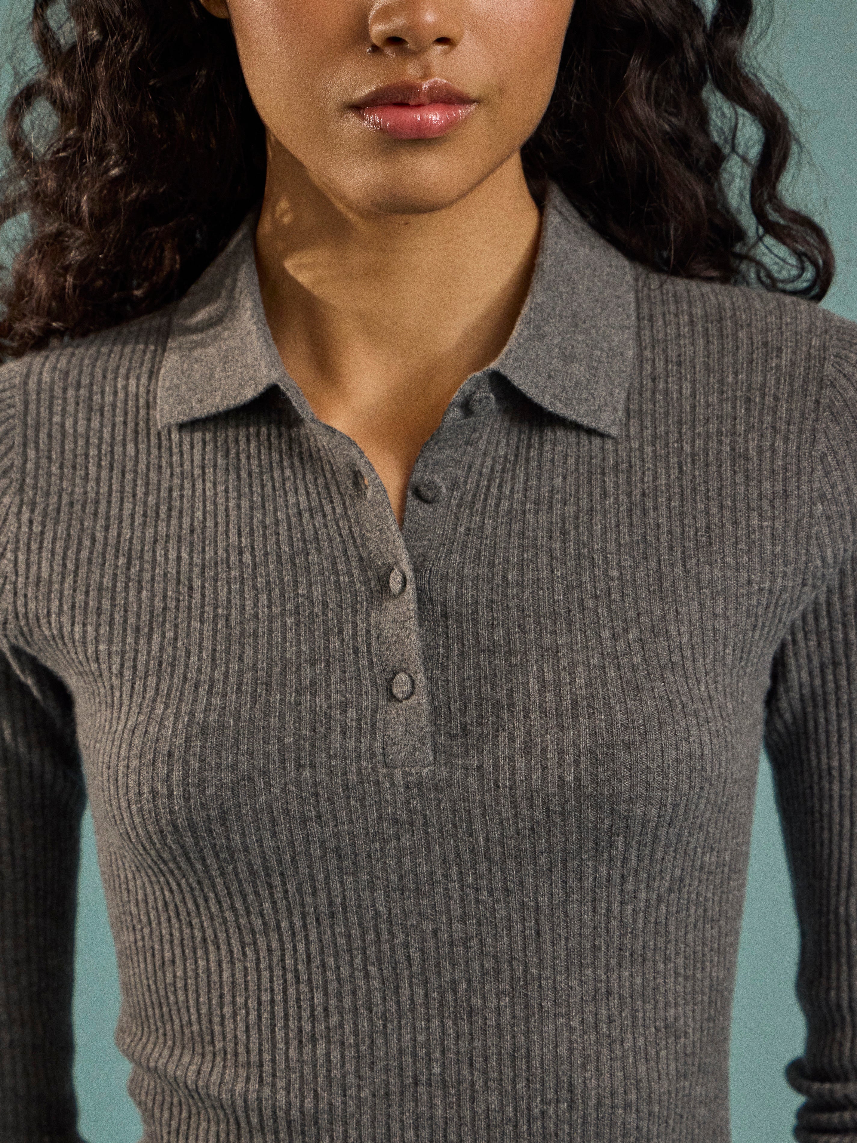Arch4 Nightingale Baby Goat Cashmere Long-Sleeved Polo Top