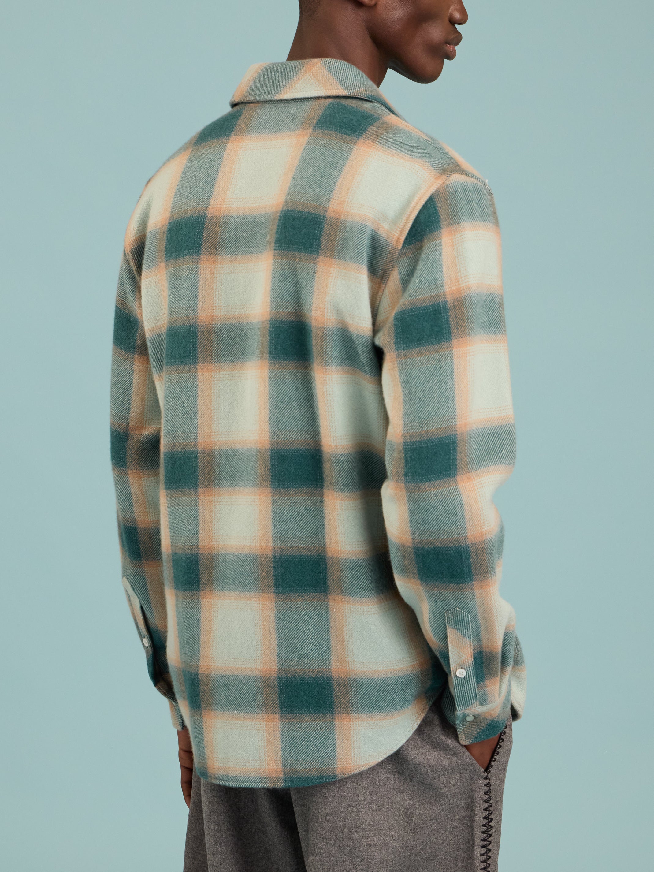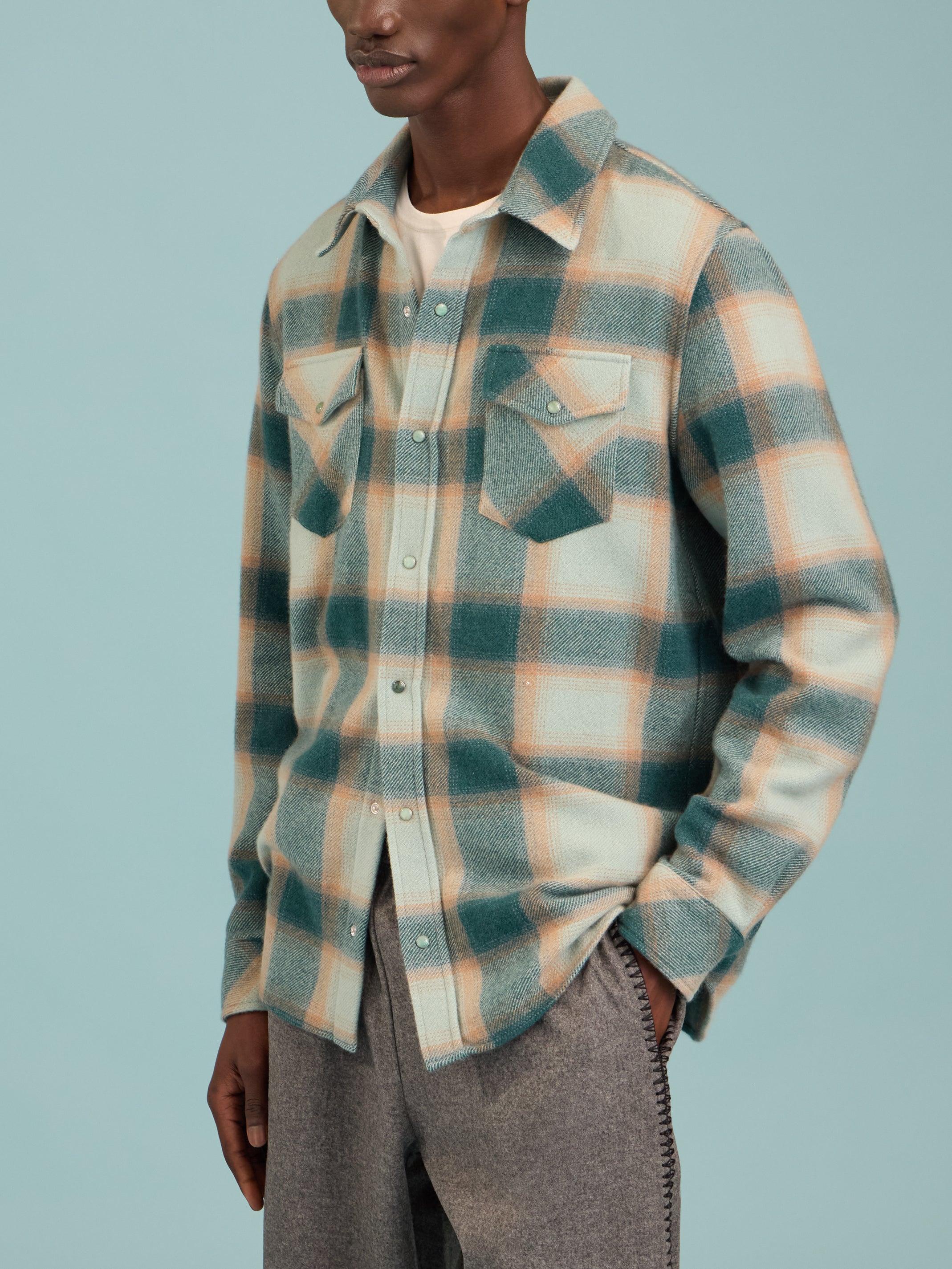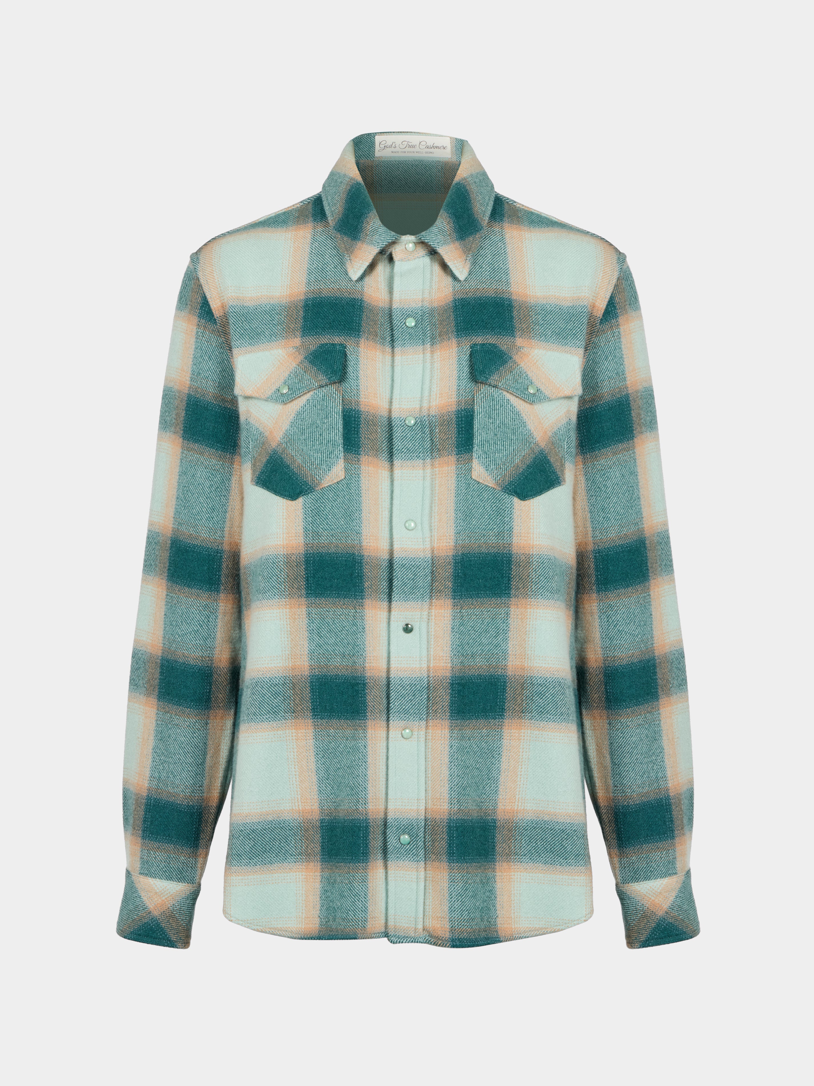 God's True Cashmere Avocado Shadow Plaid Cashmere Shirt