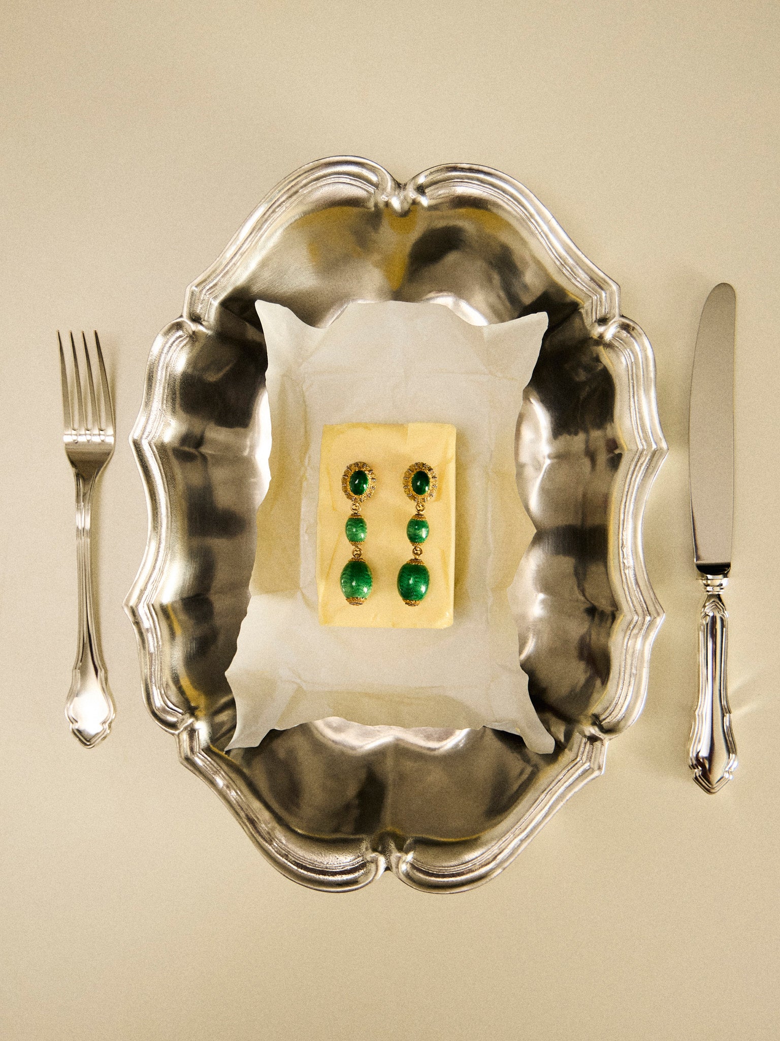 - Green guilloche enamel, 18-karat gold; 1960s; Cazzaniga
