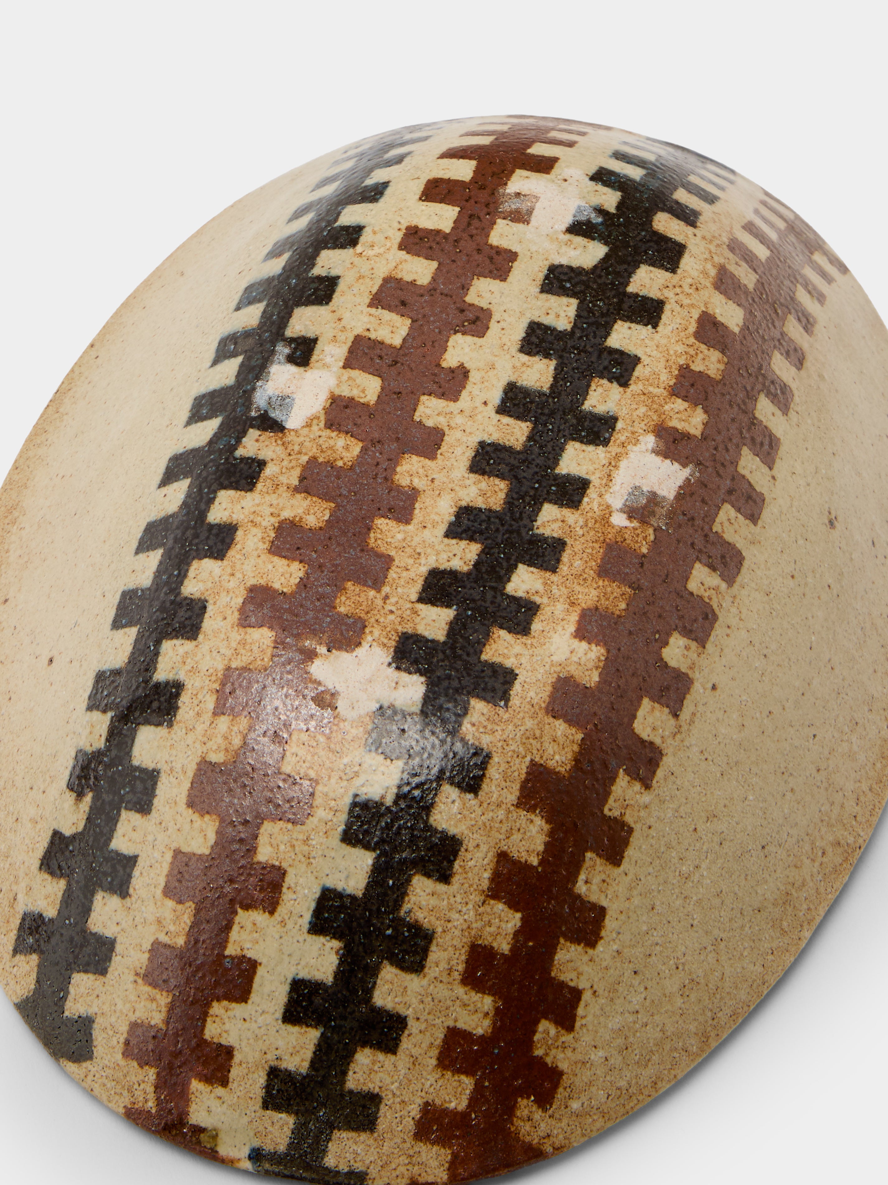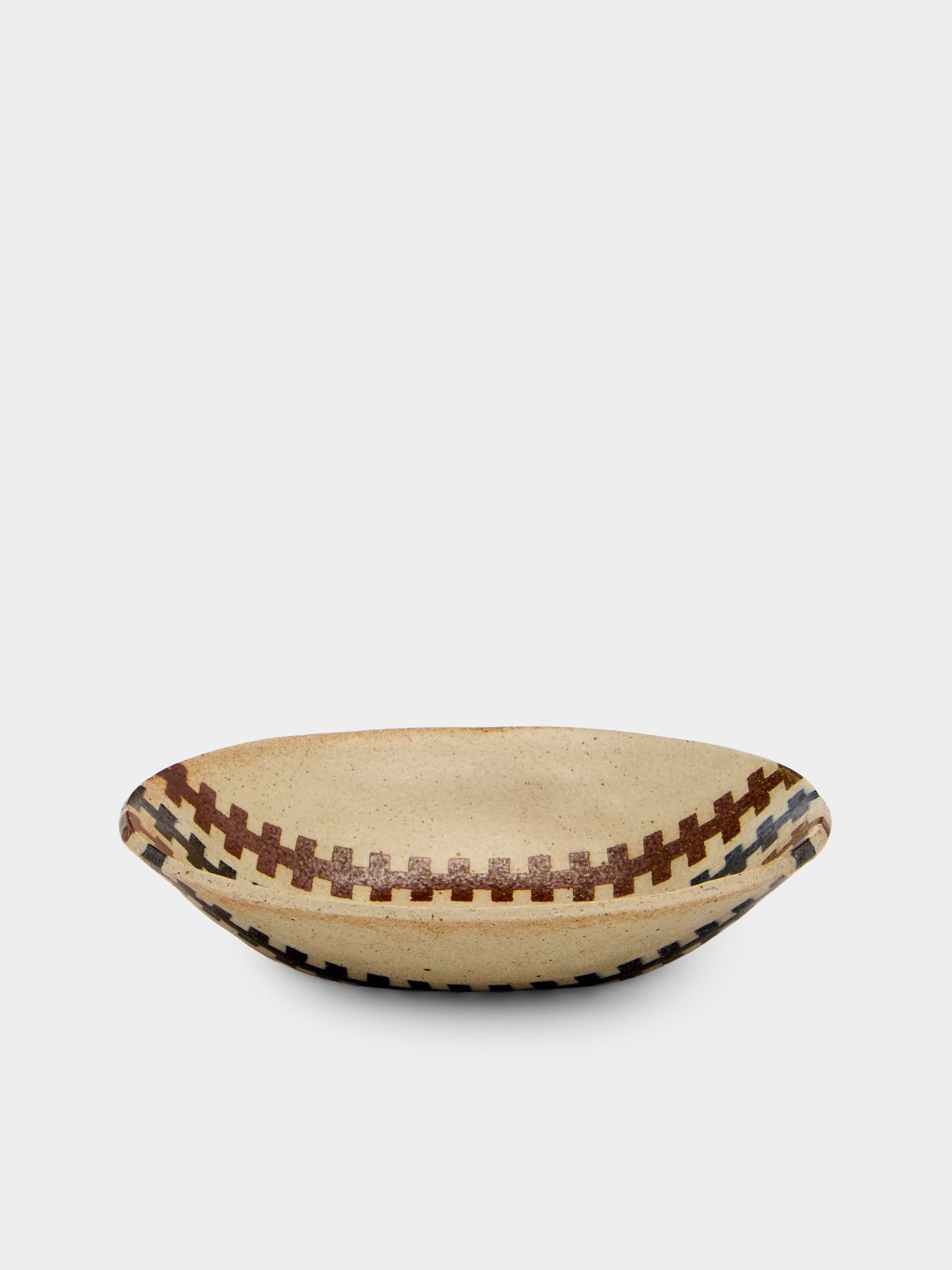 Headed byYoshikuniSugimoto and nestled in Japan’s Tottori Prefecture,Makidani-gamais a ceramic studio with a distinctly geometric point of view. Its signature lies in nerikomi—a technique, akin to neriage, where layers of colored clay are stacked and sliced to reveal intricate patterns.
