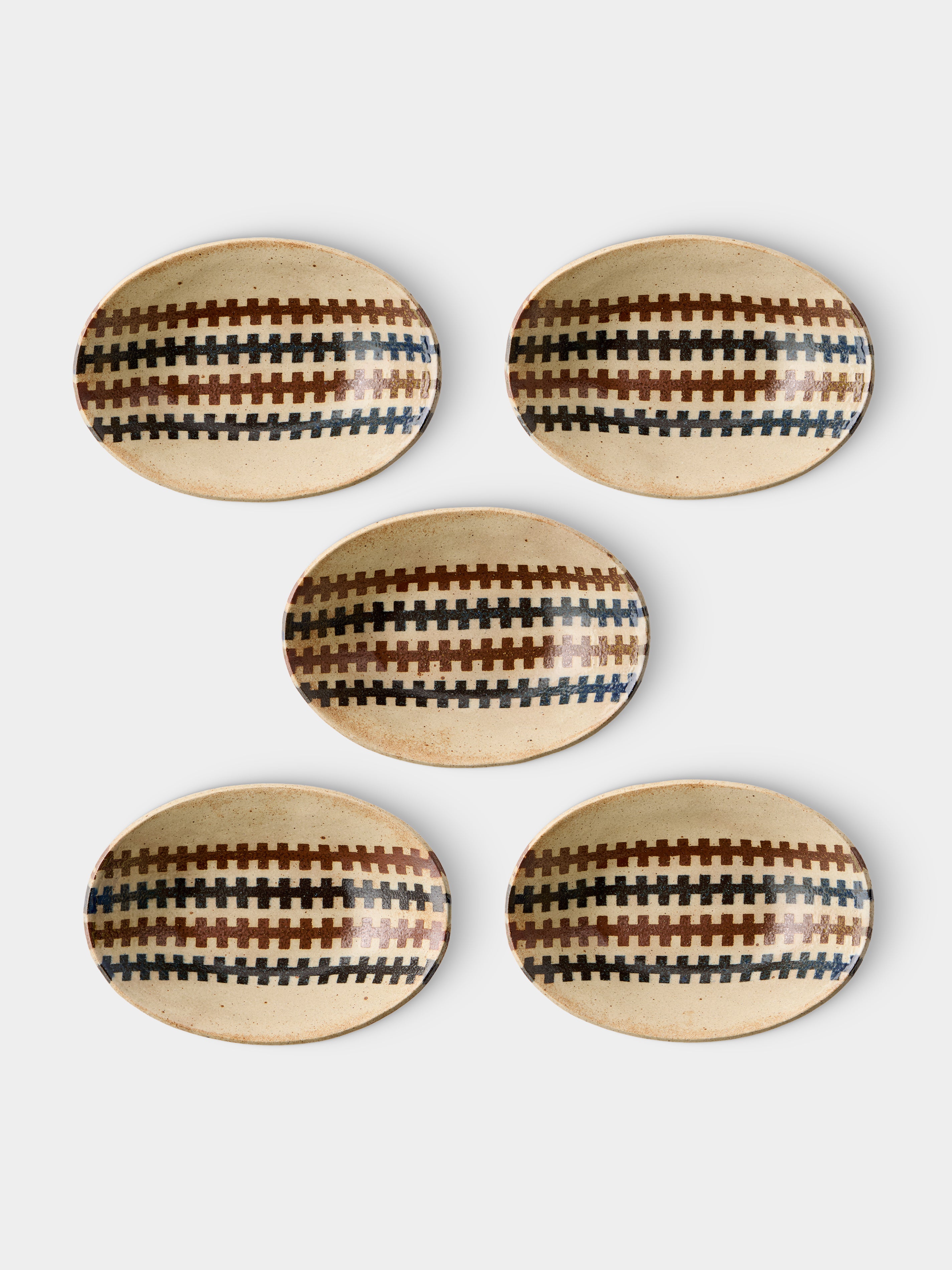 Makidani-gama No. 1 Nerikomi Ceramic Medium Oval Bowls (Set of 5)