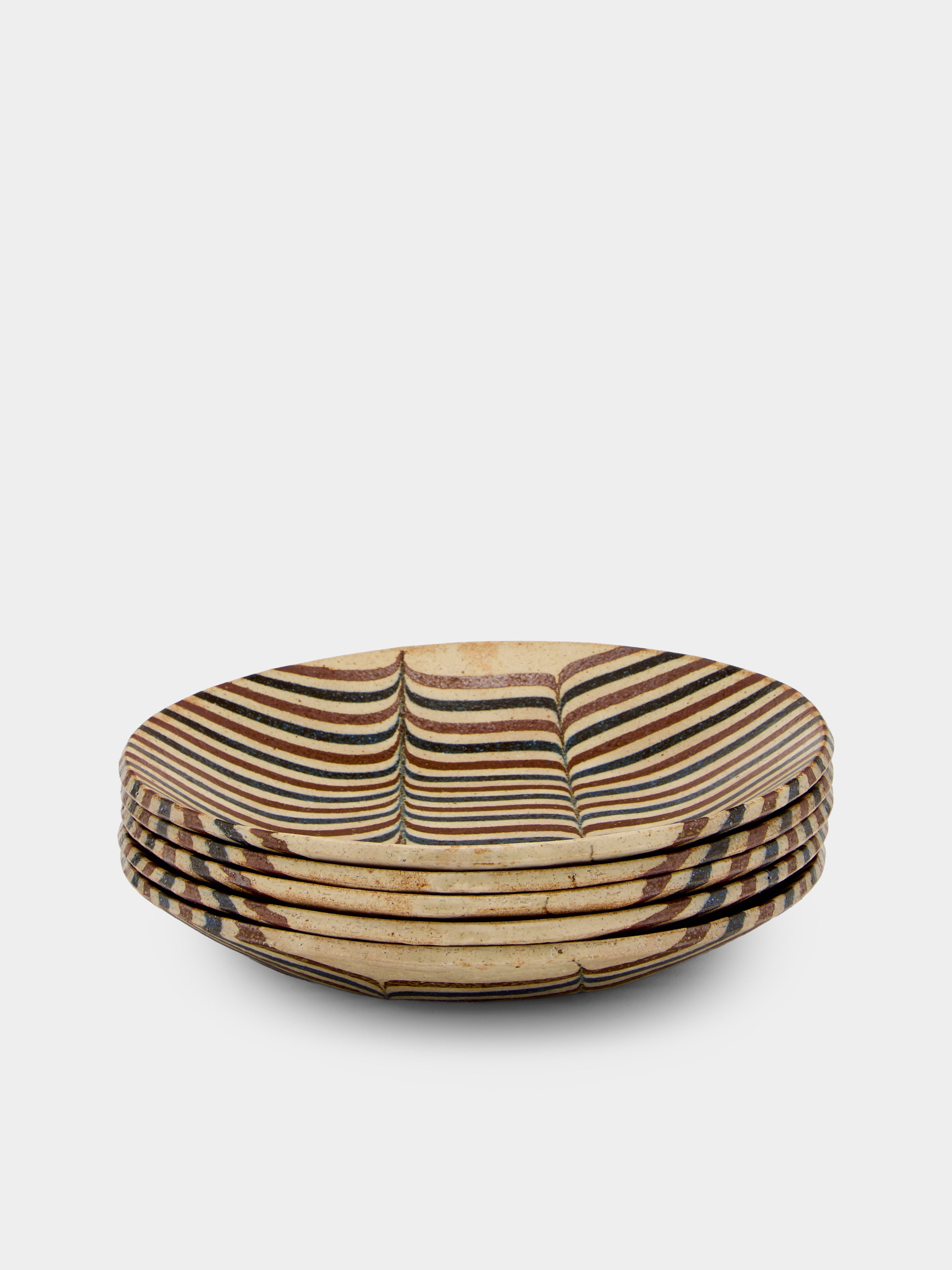 Makidani-gama No. 3 Nerikomi Ceramic Dessert / Side Plates – 8in/21cm (Set of 5)