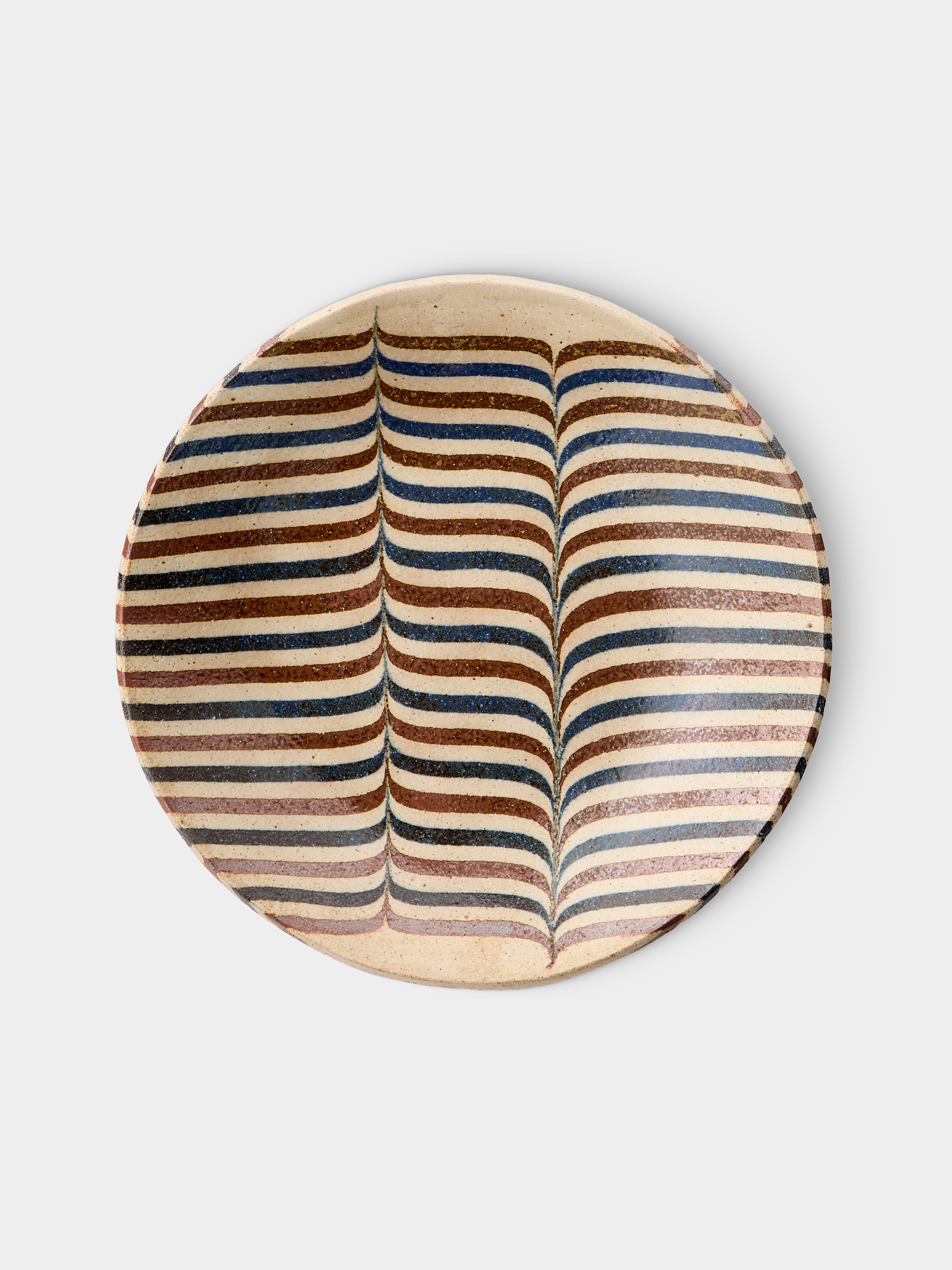 Headed byYoshikuniSugimoto and nestled in Japan’s Tottori Prefecture,Makidani-gamais a ceramic studio with a distinctly geometric point of view. Its signature lies in nerikomi—a technique, akin to neriage, where layers of colored clay are stacked and sliced to reveal intricate patterns.