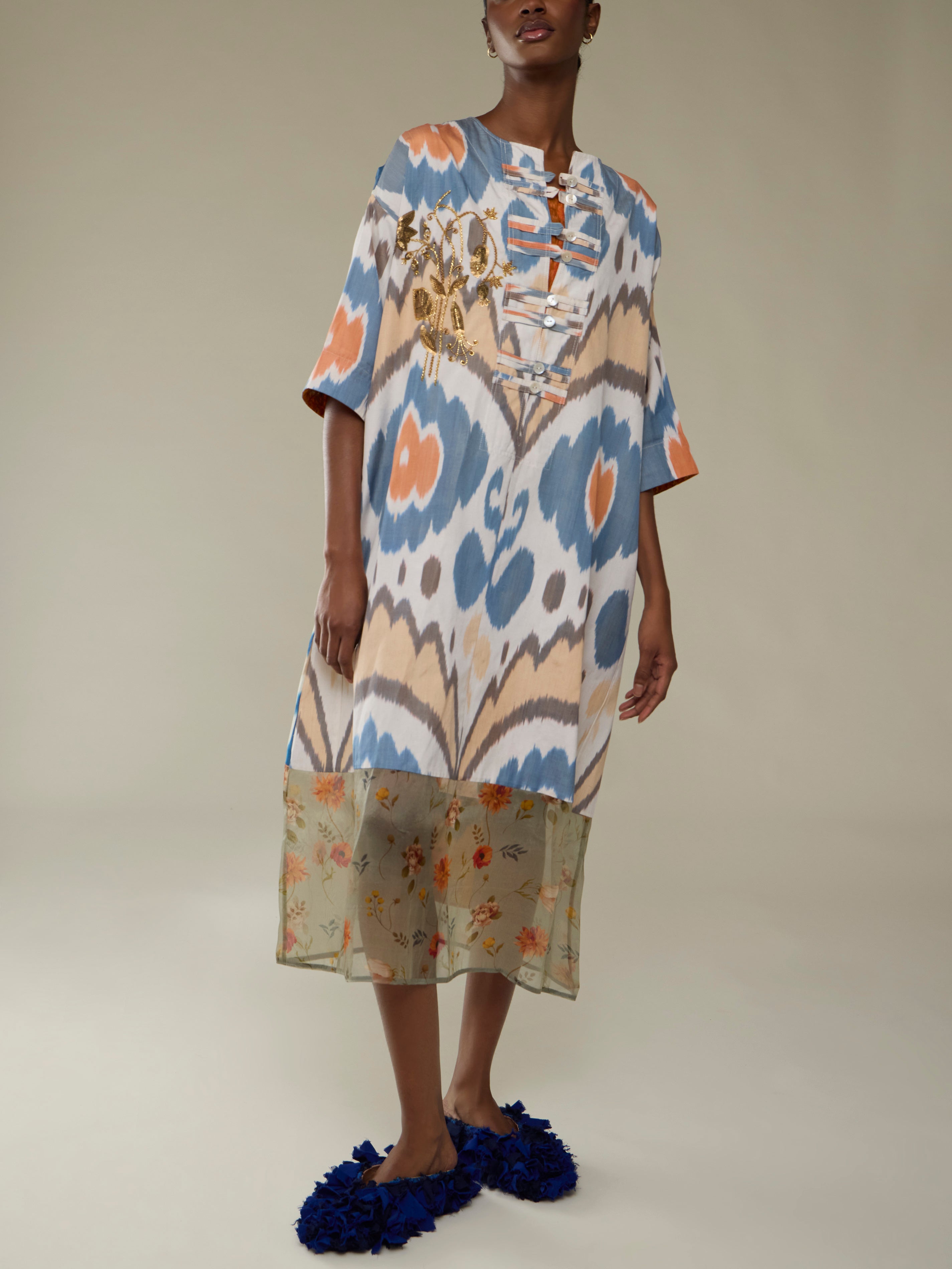 Nazzy Beglari Hand-Loomed Ikat Silk and Cotton Dress | One Size