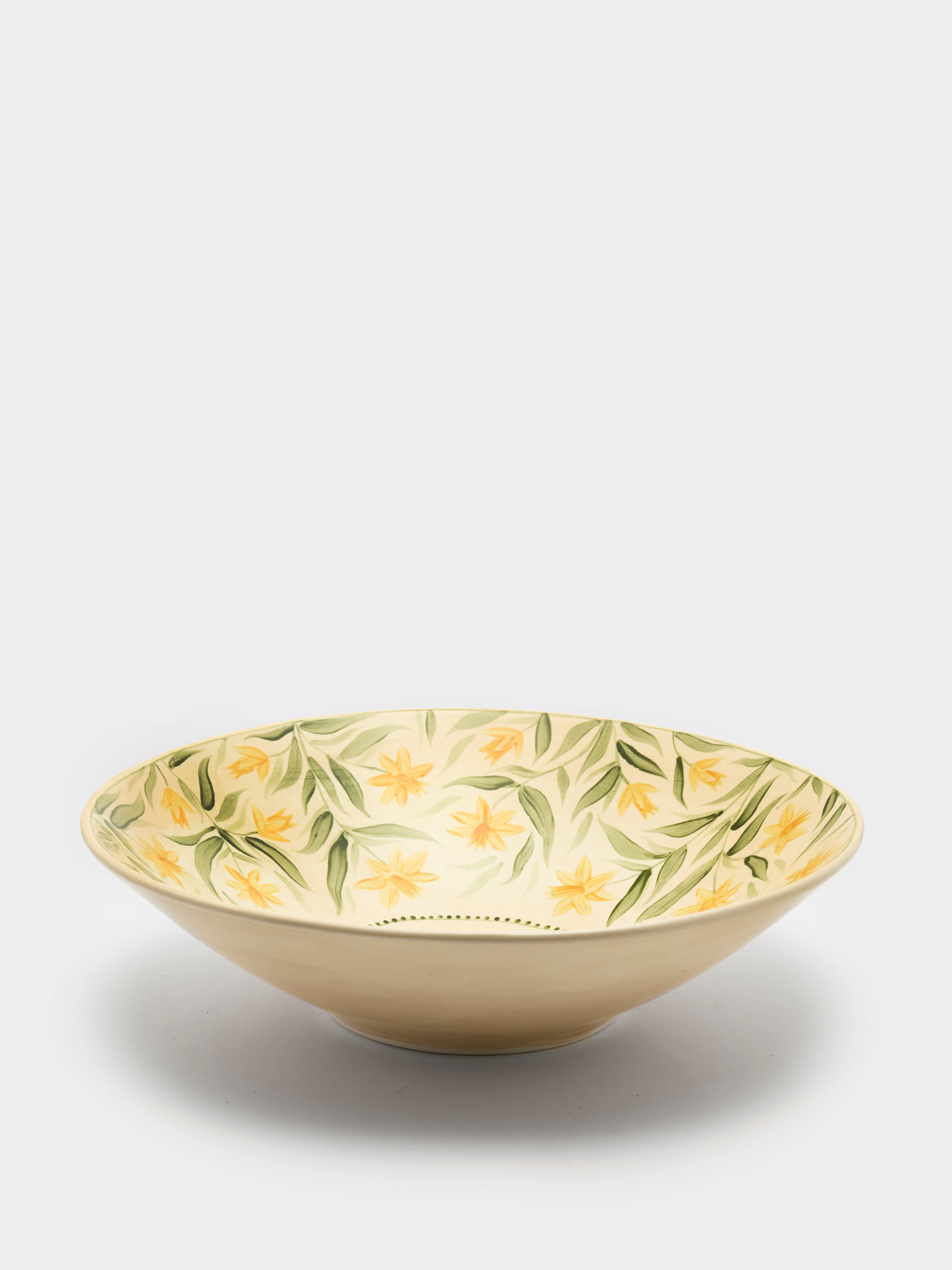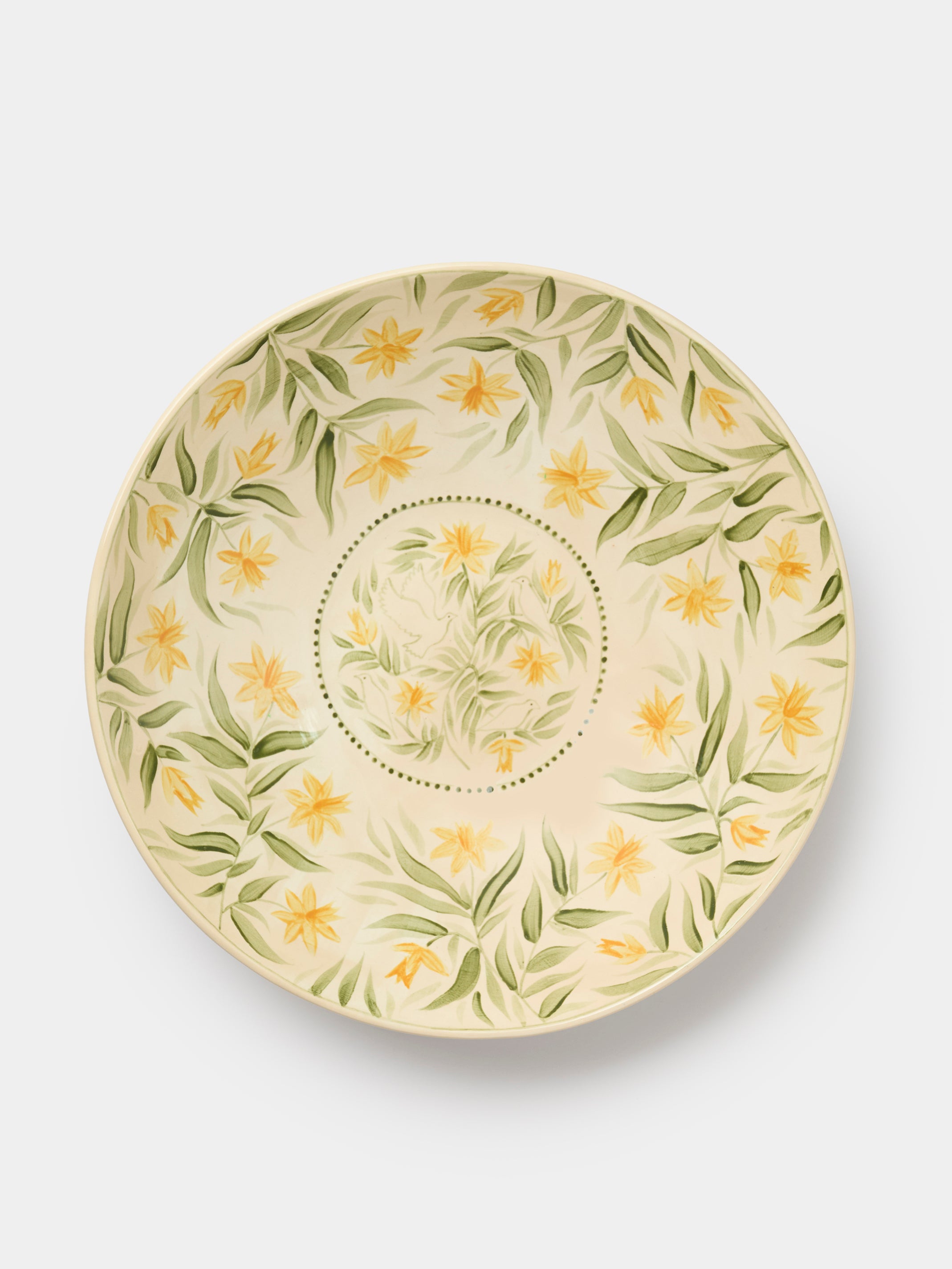 Rosanna Corfe Doves and Daffodils Hand-Painted Ceramic Flared Bowl