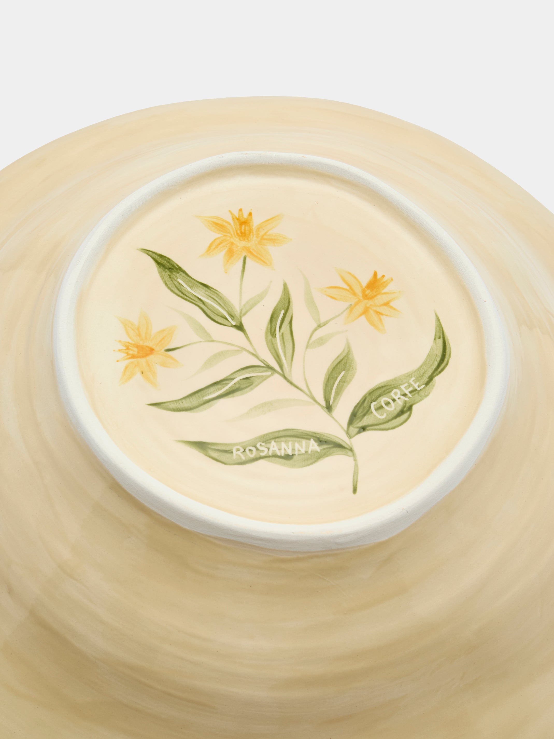 Doves and Daffodils Hand-Painted Ceramic Flared Bowl9.5cm (h) x 34.5cm (d) / 3.7" (h) x 13.5" (d)