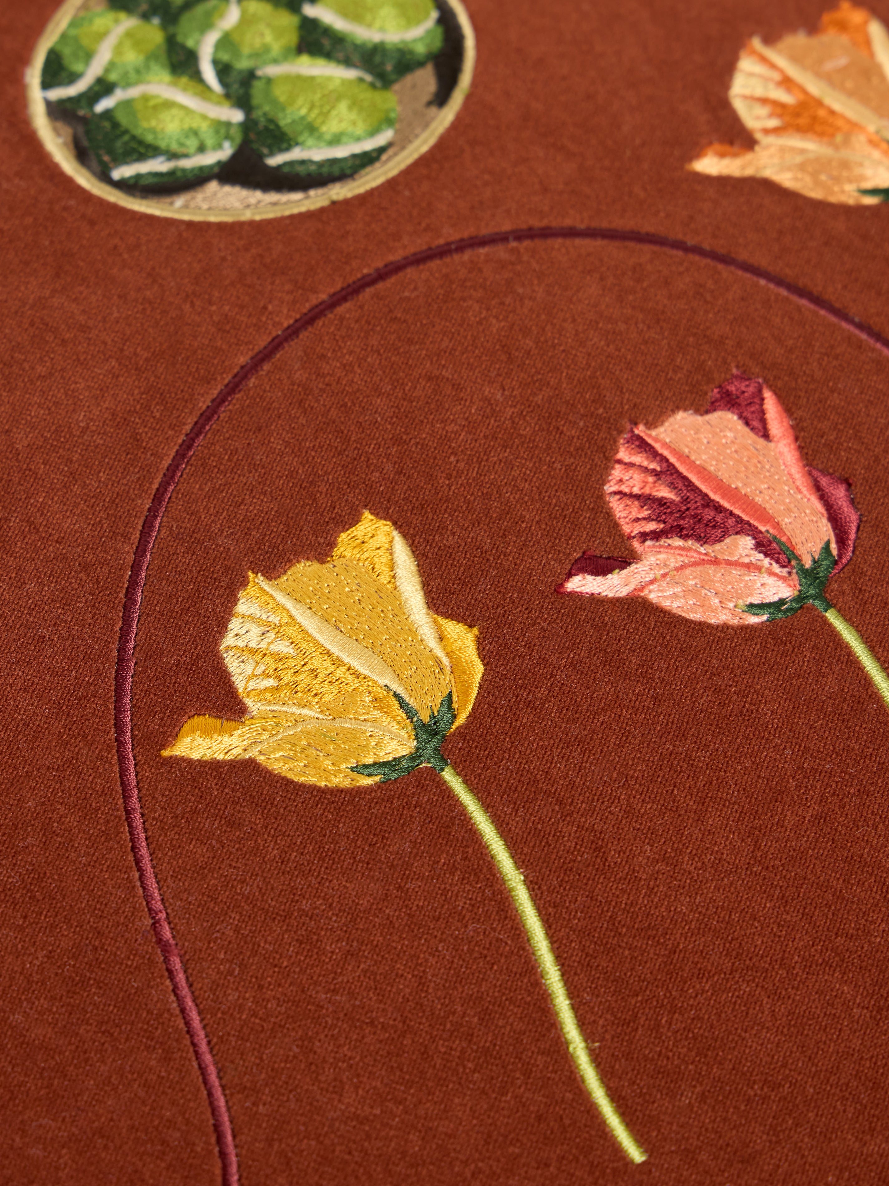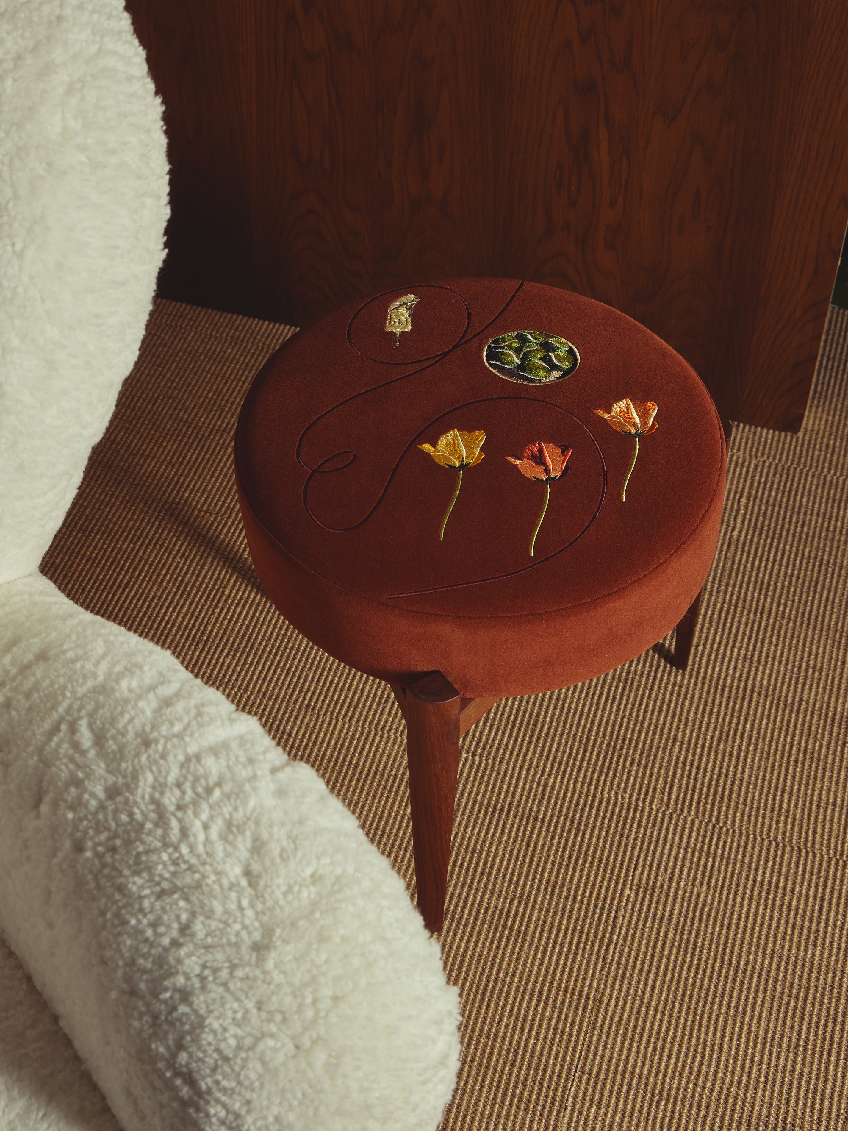 Uncommon Ancestor Garden Party Embroidered Velvet Round Footstool