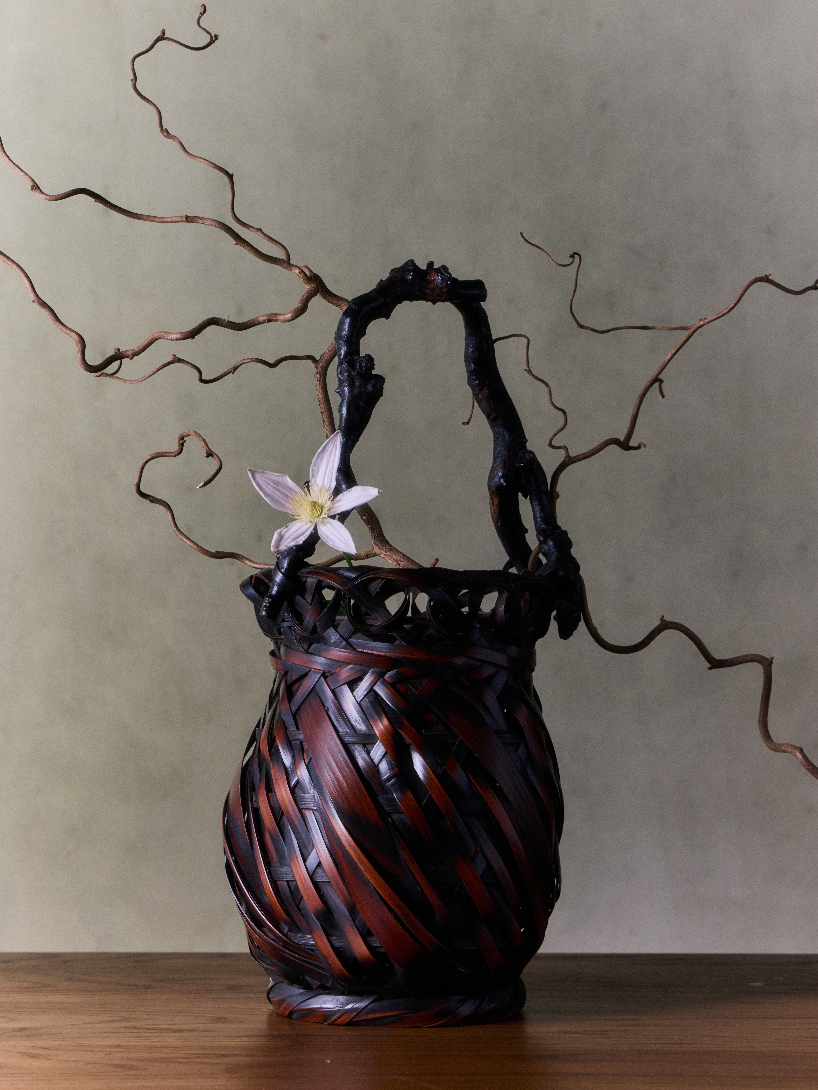 Antique and Vintage Mid-Century Japanese Bamboo Ikebana Basket