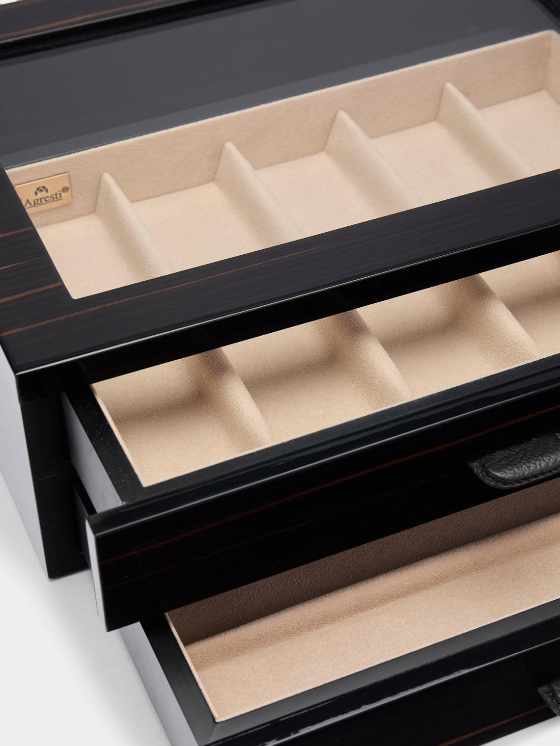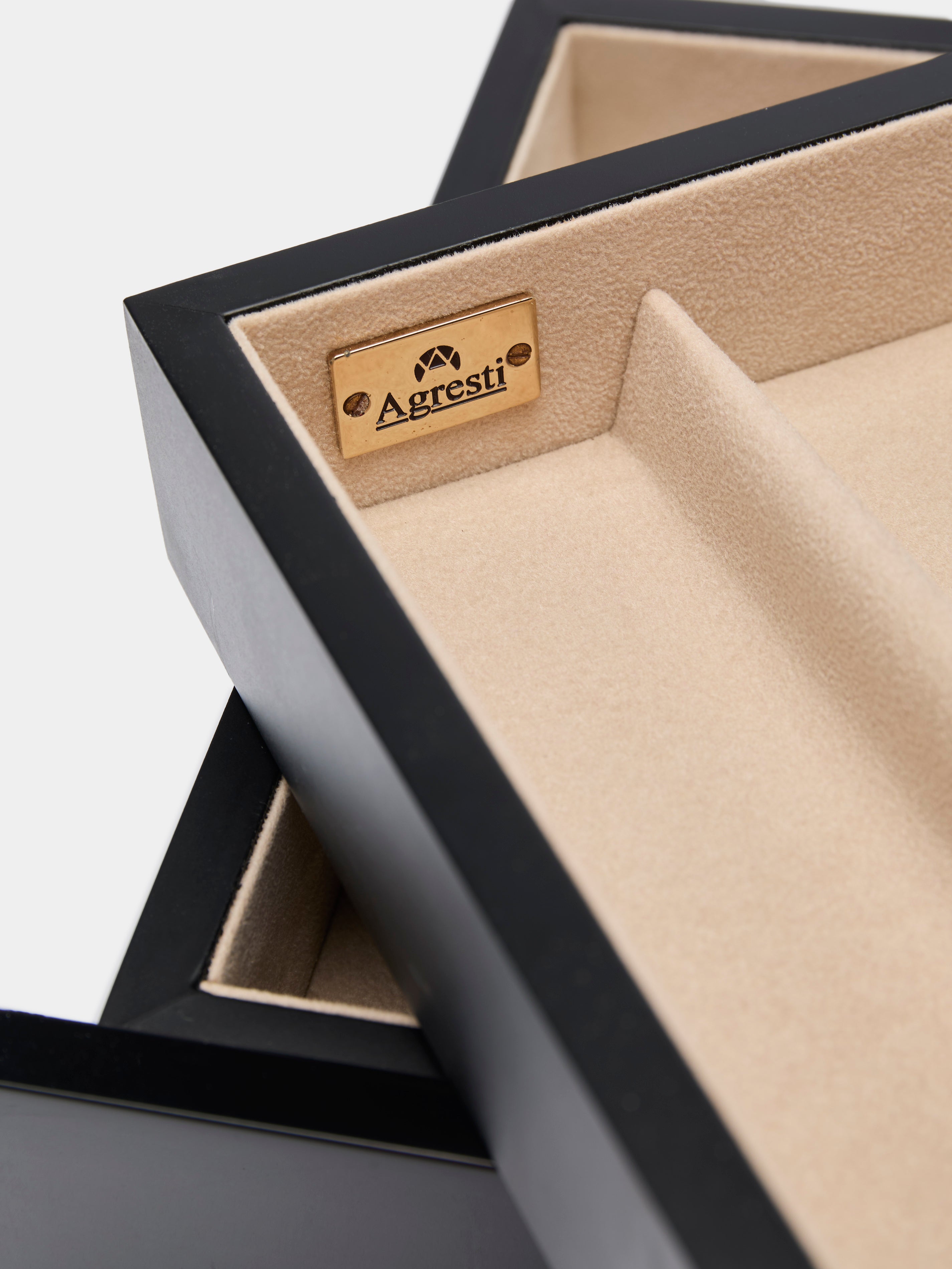 Florence-based Agresti started in 1949 as a leather specialist, and while still well-versed in leather and suede, its repertoire has since expanded to include everything from metals to fine woods. Today, the maker’s expertise is found in handcrafted chests, all exquisitely made, lined, and internally divided for seamless functionality. Keep an eye out for the finer details that make each design unique, from the first-rate materials to the finishing touches added by expert artisans.
