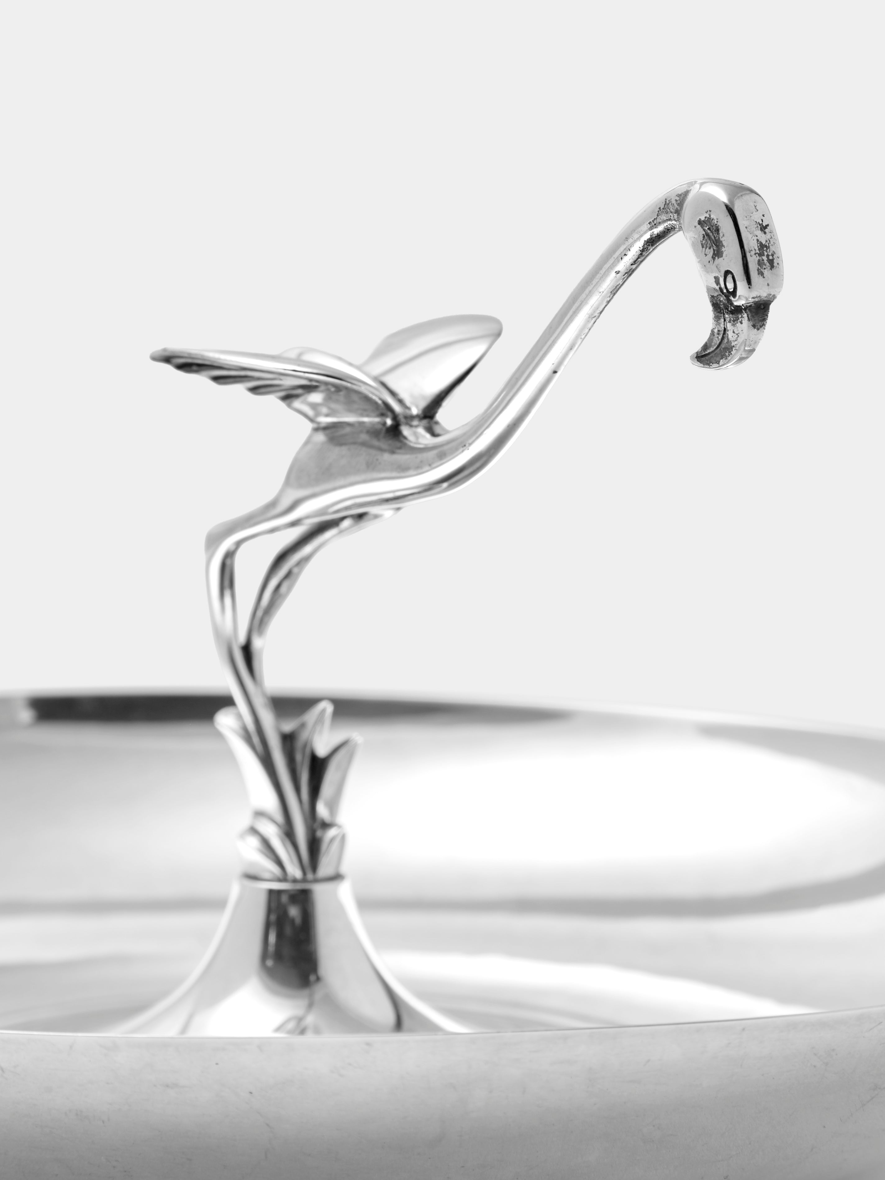 Antique and Vintage 1930s Milanese Solid Silver Flamingo Serving Dish