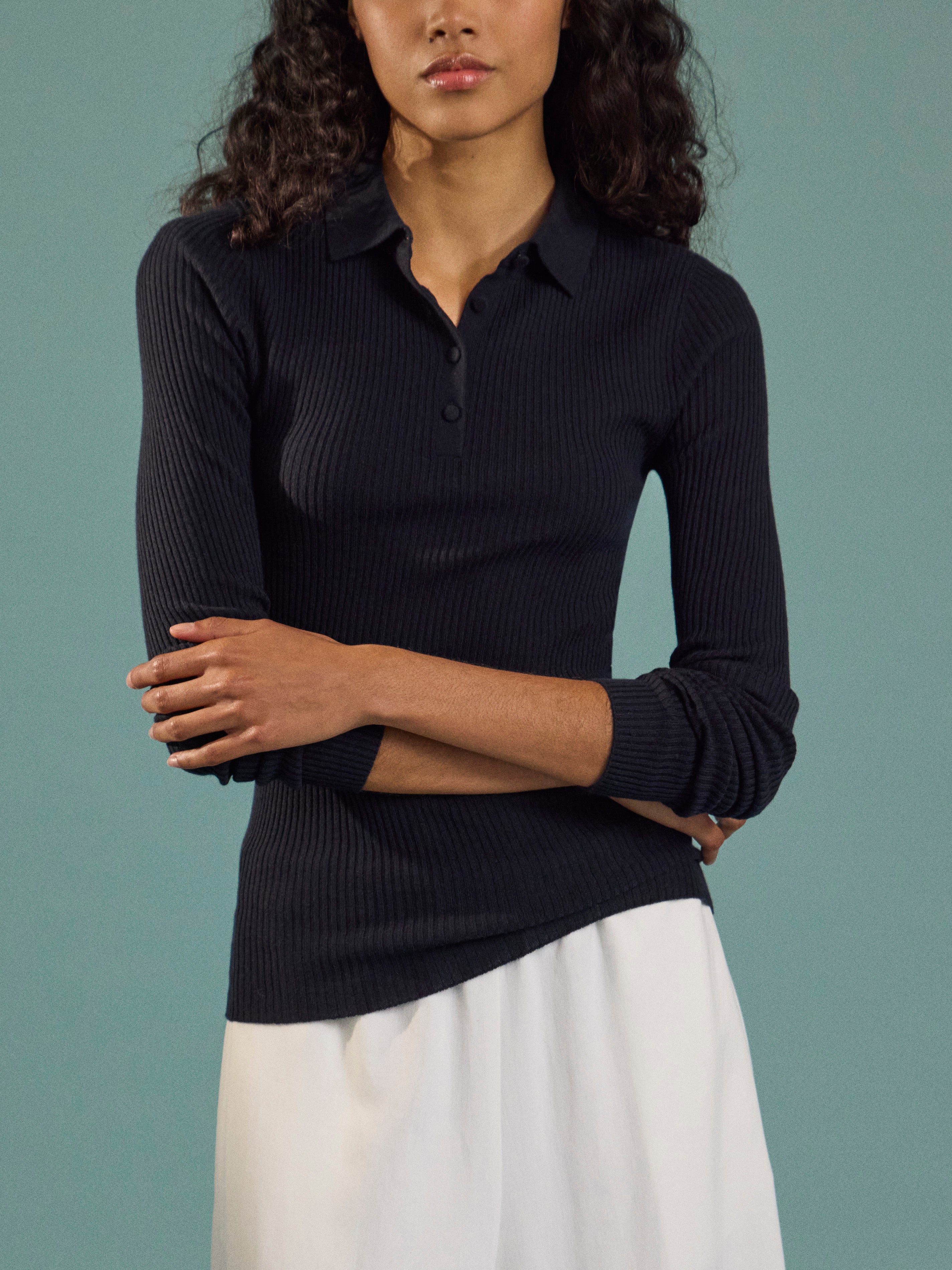 Arch4 Nightingale Baby Goat Cashmere Long-Sleeved Polo Top