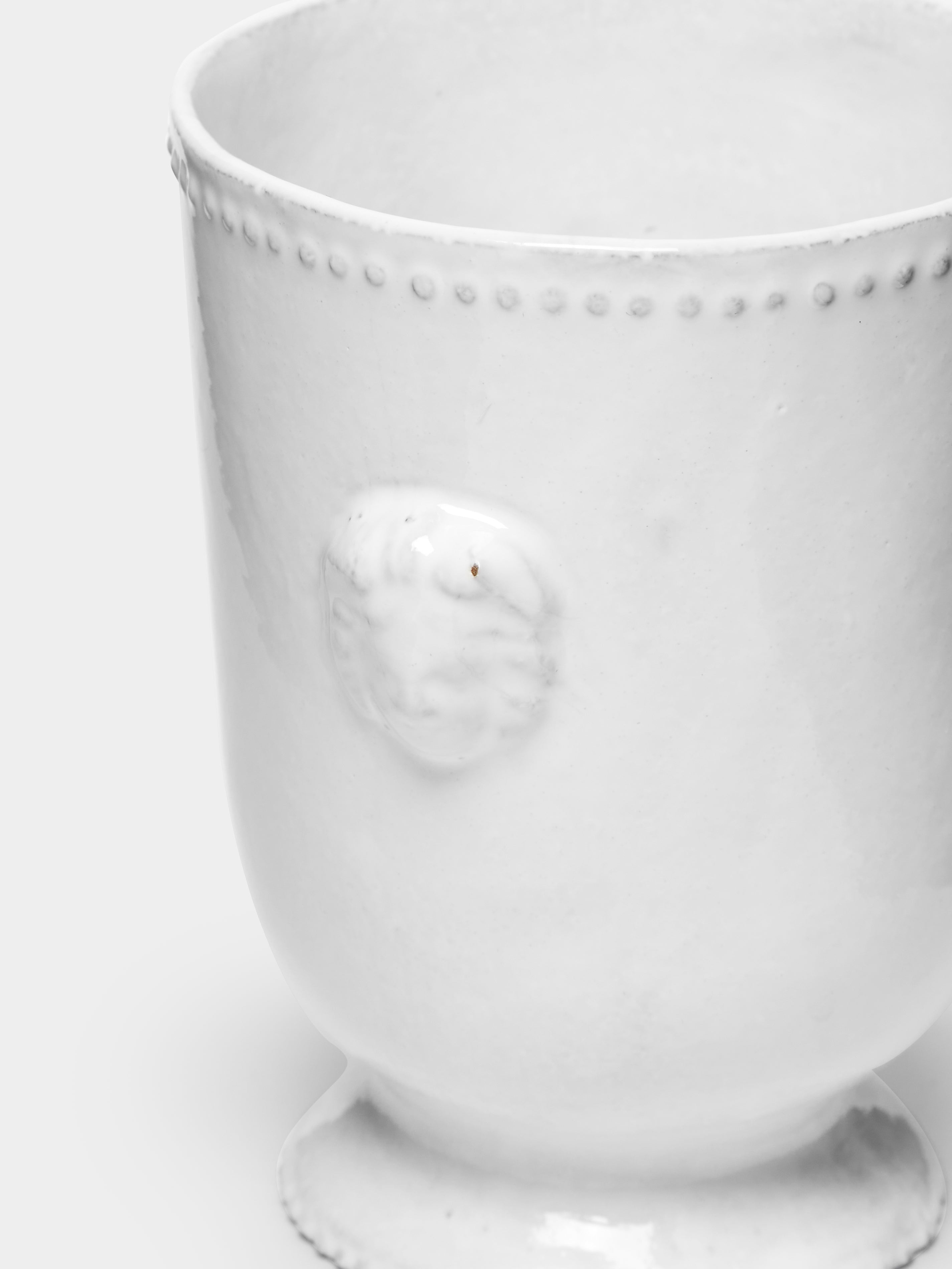 Old friends Ivan Pericoli and Benoît Astier de Villatte met at the prestigious École des Beaux-Arts in Paris, leading to the launch of Astier de Villatte in 1996. Since the beginning, they’ve been charmed with ideas of the imperfect, finding beauty in uneven glazes, dark pockmarks, and subtle ripples. But these details only emphasize the craft tale behind each piece—stories that start with a single sheet of black terracotta clay extracted from Parisian quarries. They follow traditional Roman methods to bring each "dream object" to life, shaping and inscribing each one with the potter’s initials and finishing with a high-shine white porcelain glaze.