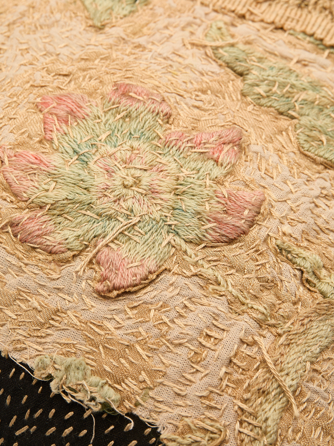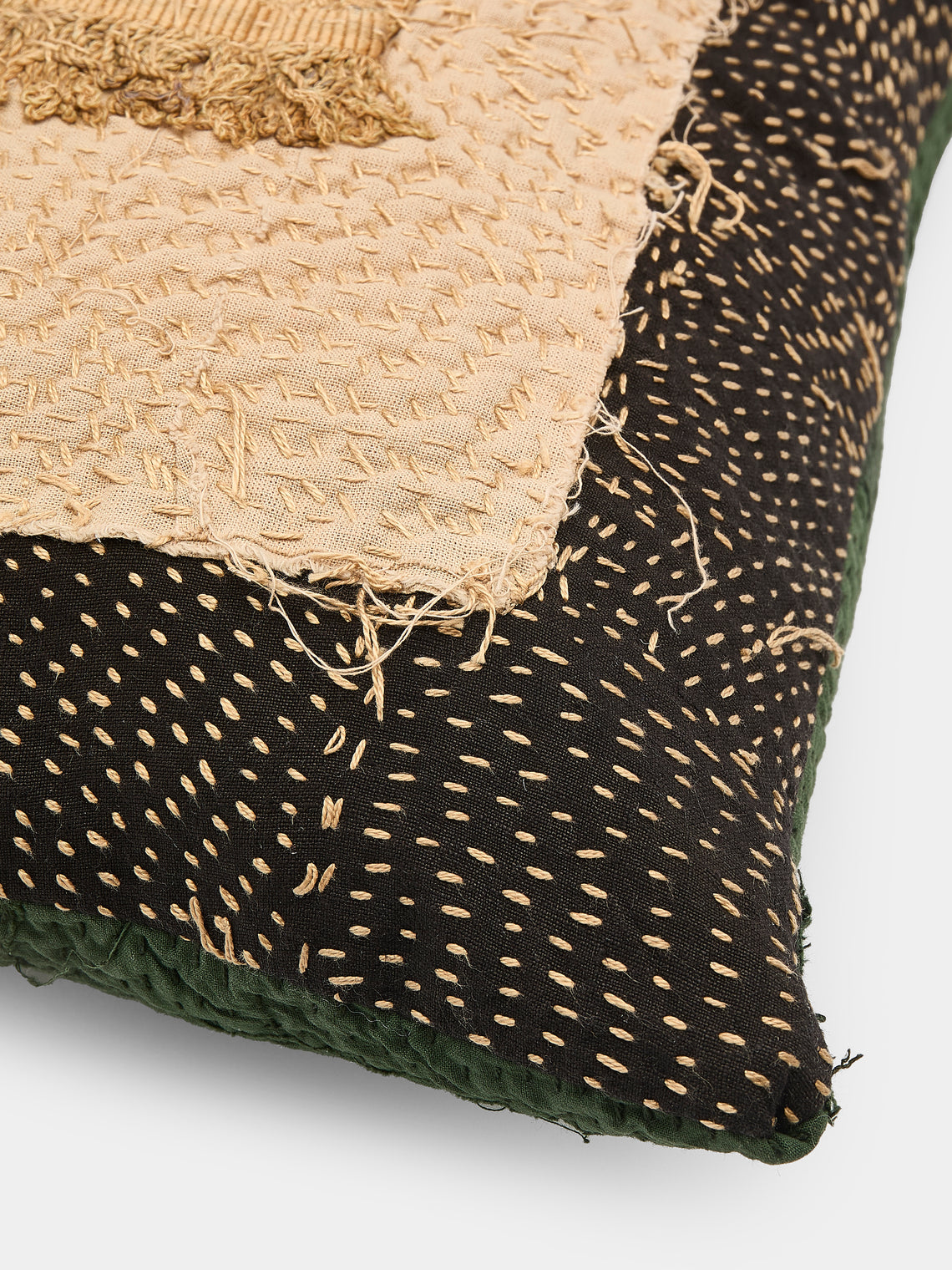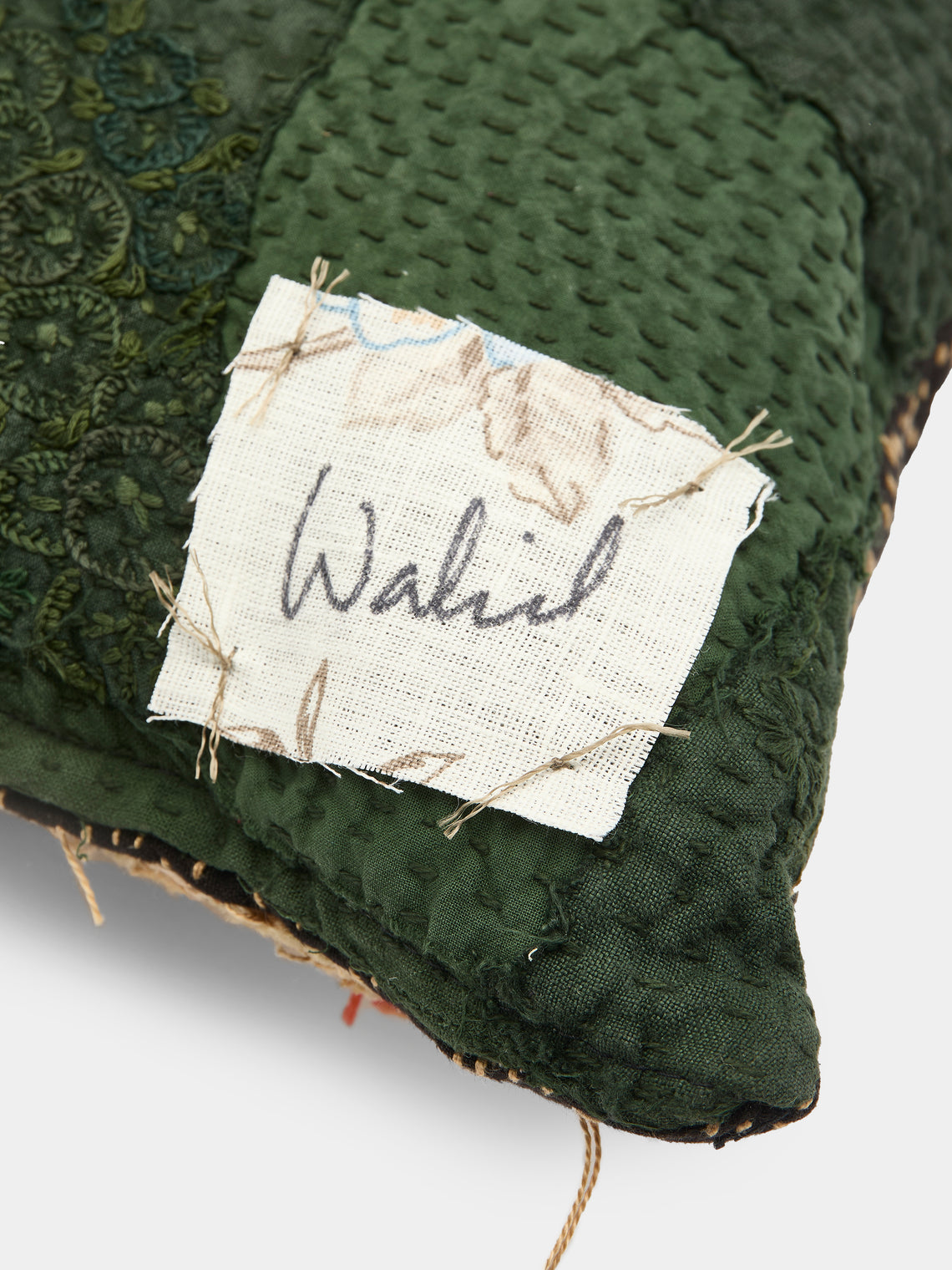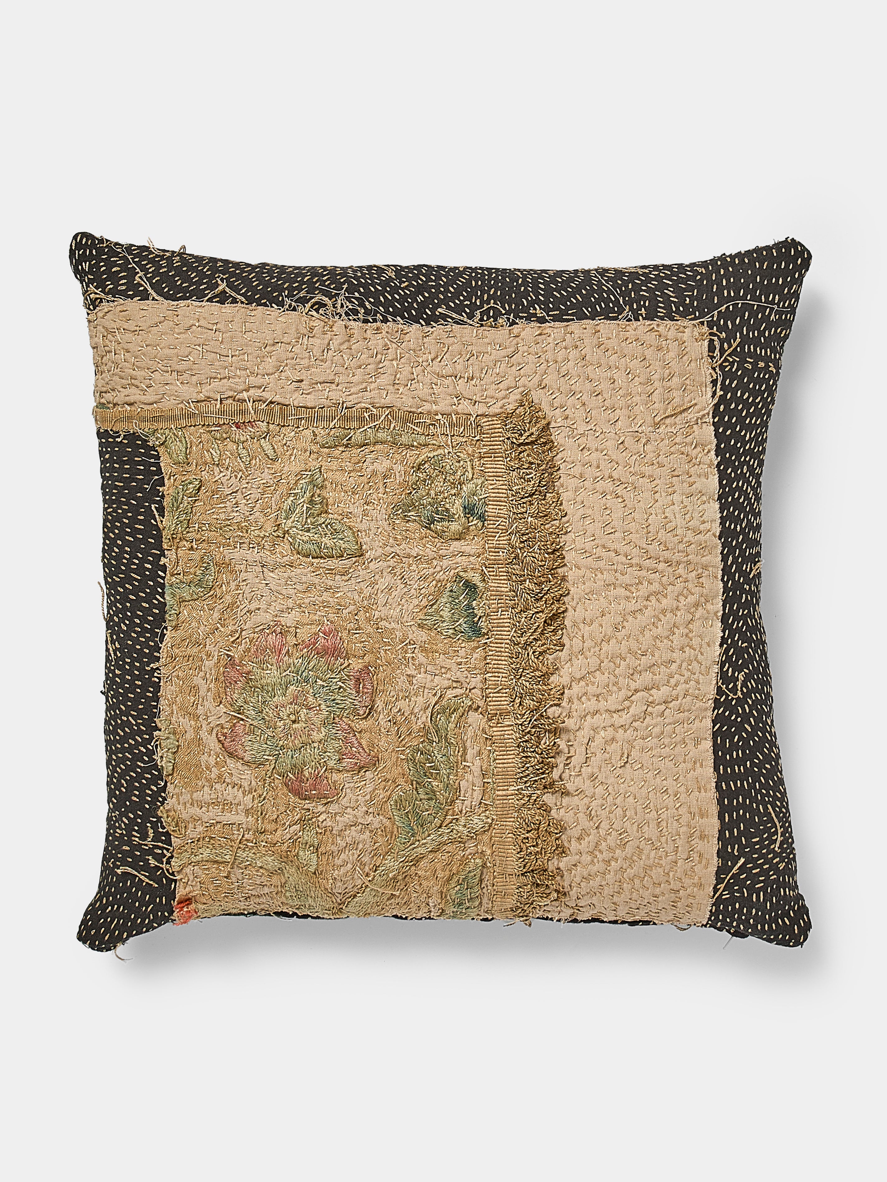 By Walid 18th-Century English Embroidered Patchwork Wool and Cotton Cushion (17.5in/45cm)