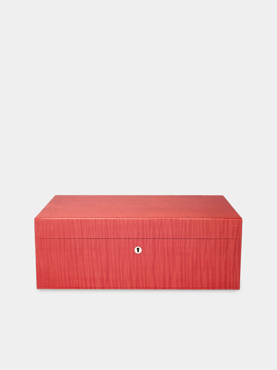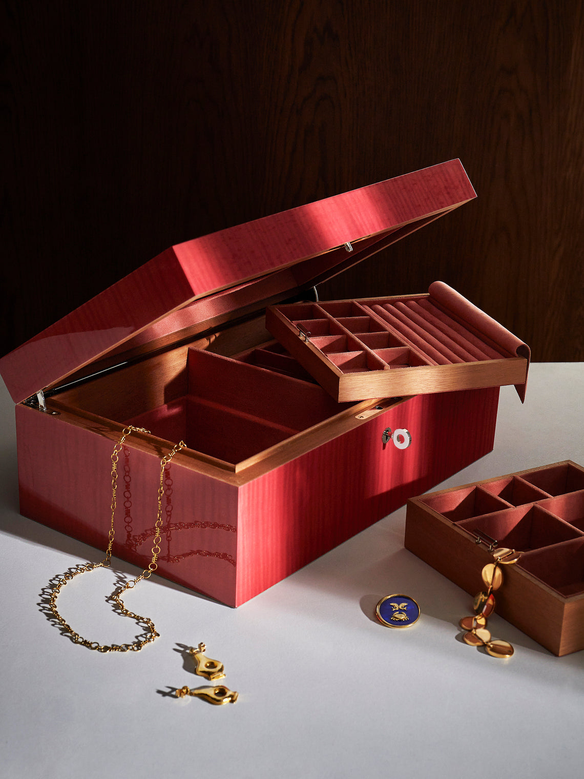 Elie Bleu is a household name for its humidors, but they aren’t the only field of expertise for this maker. No matter what its boxes are guarding – from jewellery and watches to poker and pens – they’re always handmade to exacting standards, taking four to six months to come to fruition. Every story starts with a mass cut of timber that’s sourced from across the globe, before expert craftspeople have their way with it in the workshop just outside of Paris; perhaps they’re lacquering it by hand, or maybe they’re piecing it together via Boulle marquetry. Whatever they’re rustling up, rest assured that the final result will be a product of expert savoir-faire, as has been the case since its founding in 1976.