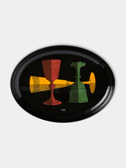 Fornasetti Bicchieri Iron Oval Tray (20.5in/52cm)