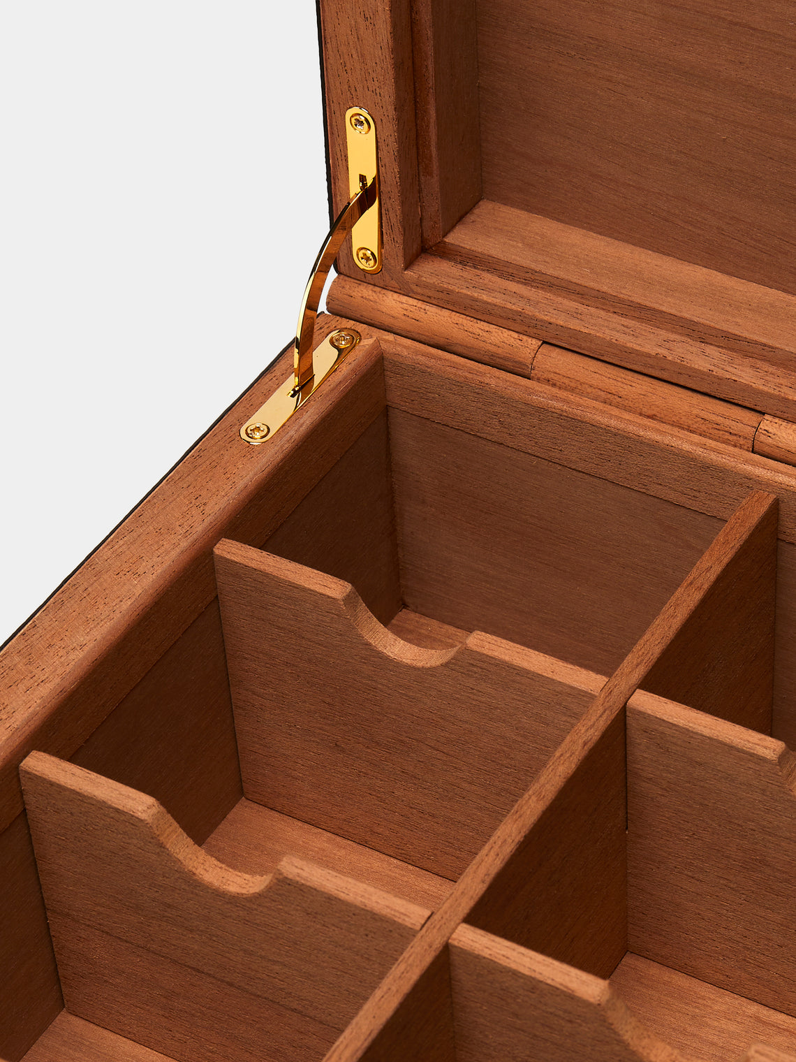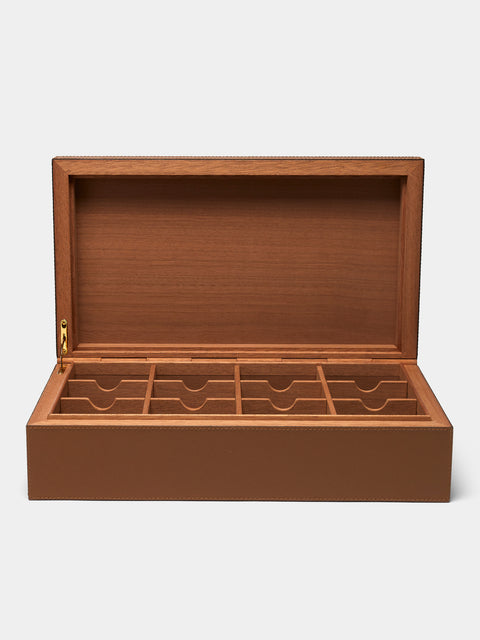 Giorgio Bagnara’s collection of handcrafted leather homeware nods to his Genoese family’s leather-making traditions from 1939. The founder of leather houses, Rabitti 1969 and Riviere, employs both hand-stitching and modern technologies to achieve artisanal excellence and great precision. From shagreen to natural calfskin leather, Giobagnara has over 200 dyed leathers, plus an inimitable collection of maple, oak and walnut wood.