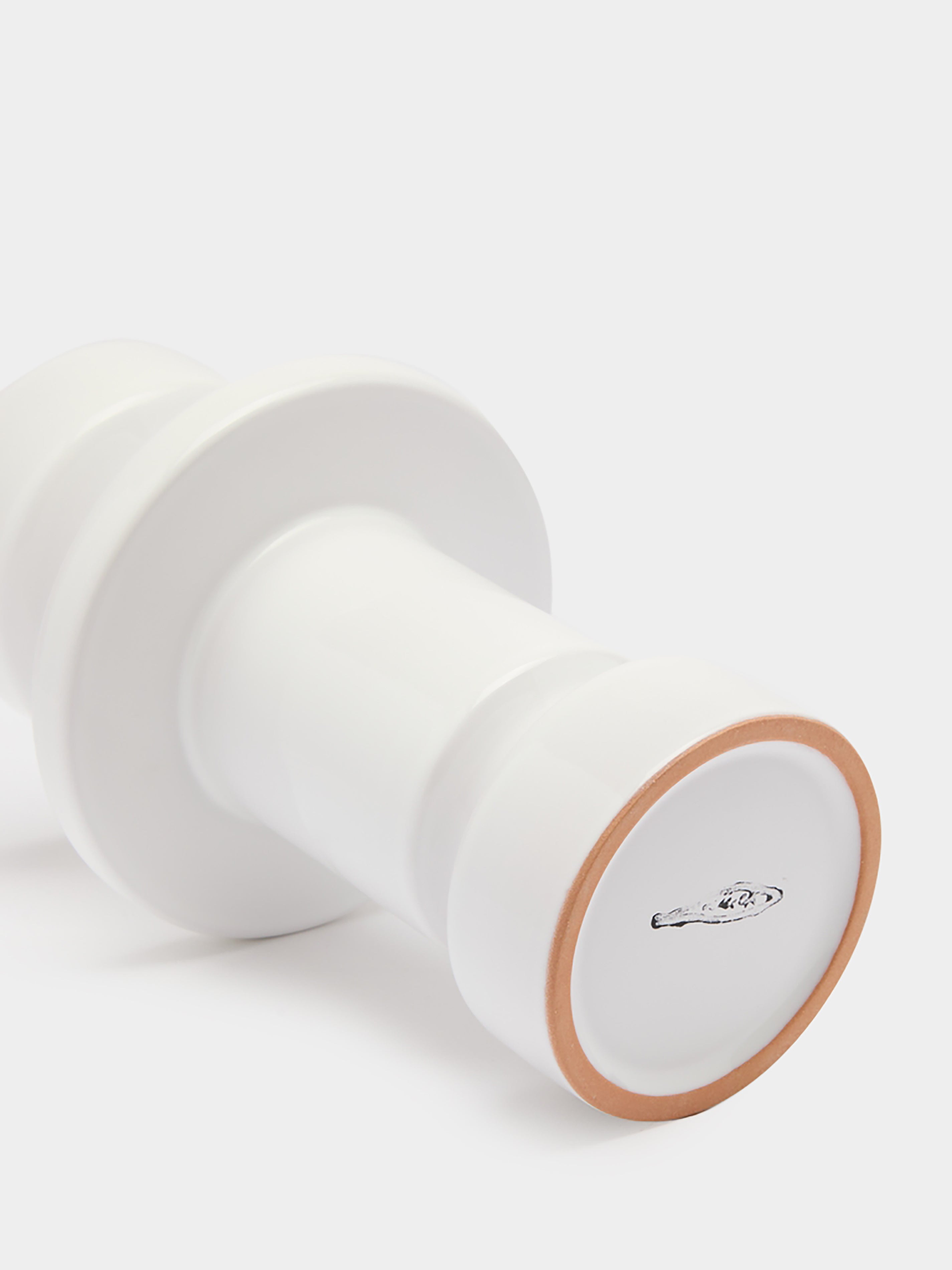 While growing up in 1930s Heimberg, Switzerland, Margrit Linck learned the craft of ceramics and developed a vision for unfussy pieces that could bridge both past and present. Later, stints in Berlin and Paris saw her rub shoulders with the doyens of the young, European art set, like Picasso, Giacometti and Braque, and helped her refine her aesthetic. An obsession with form as the pinnacle of purity led Margrit to eventually create only in white – no colour to distract from the clay’s sharp lines and curvatures. Margrit’s daughter-in-law continued her work after her death, and today, Linck Keramik is in its third generation under Annet Berger – the studio still in the original Bern location and accessories like vases and tableware still formed using a traditional wheel.