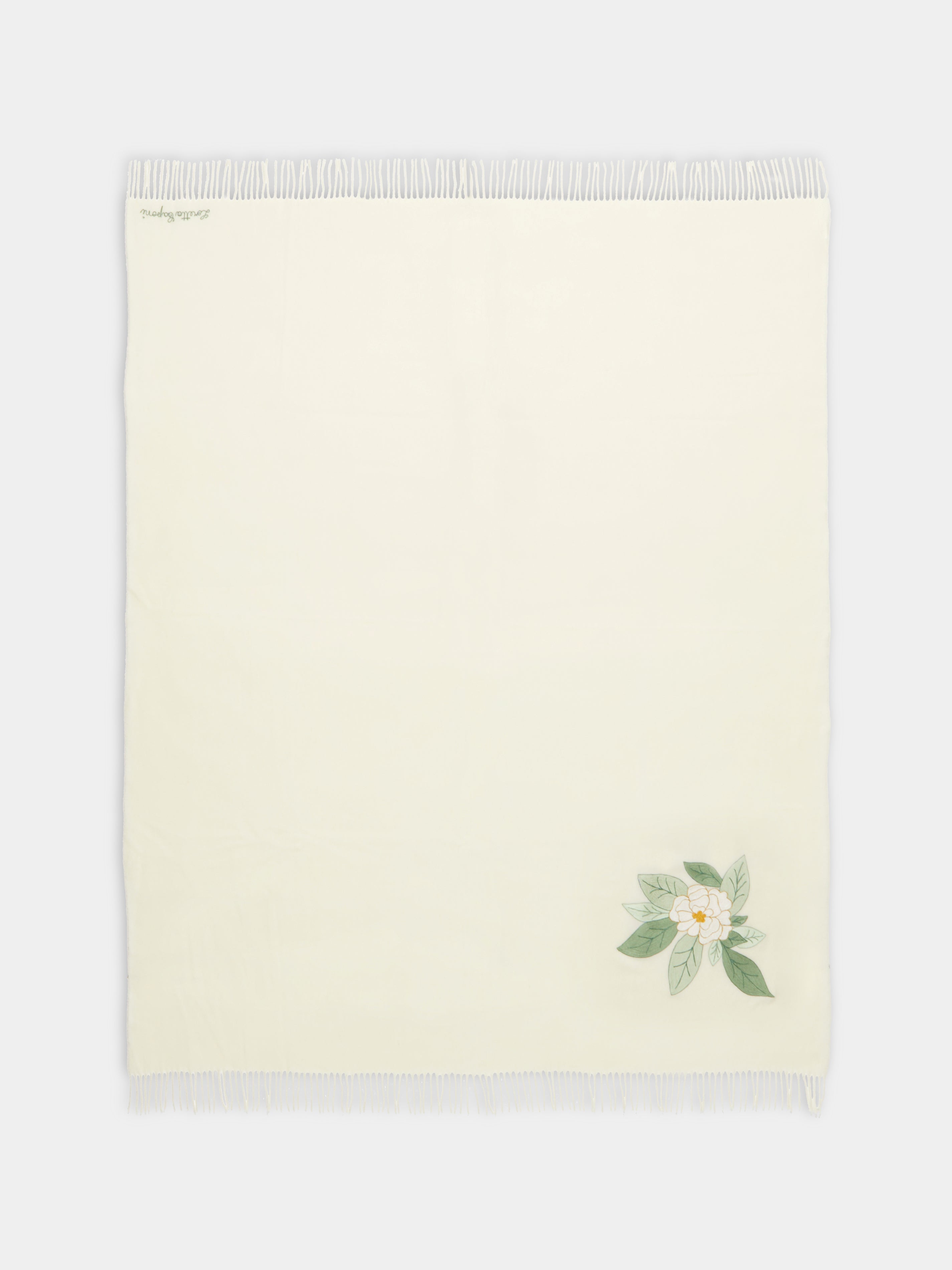 Loretta Caponi Camellia Hand-Embroidered Wool Throw (63in/1.6m)