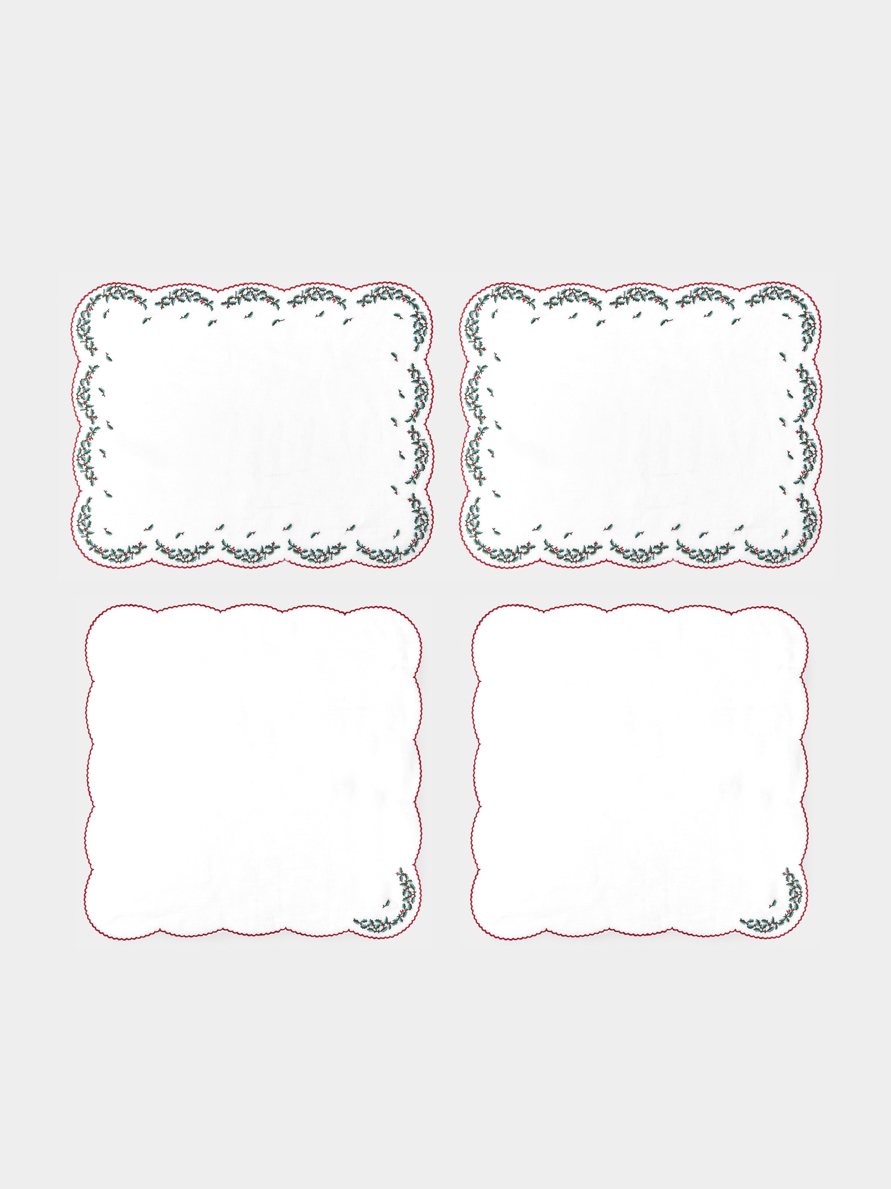 Loretta Caponi Holly Hand-Embroidered Linen Placemats and Napkins (Set of 2)