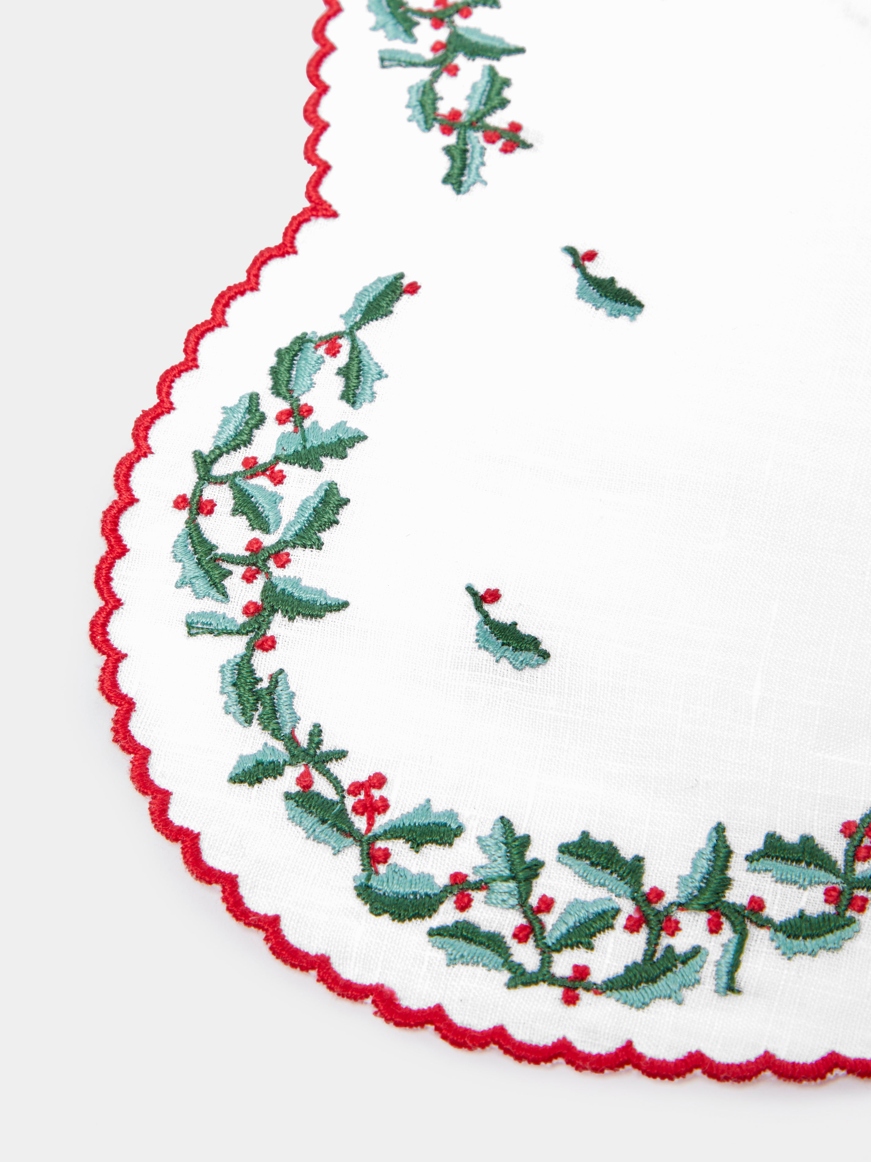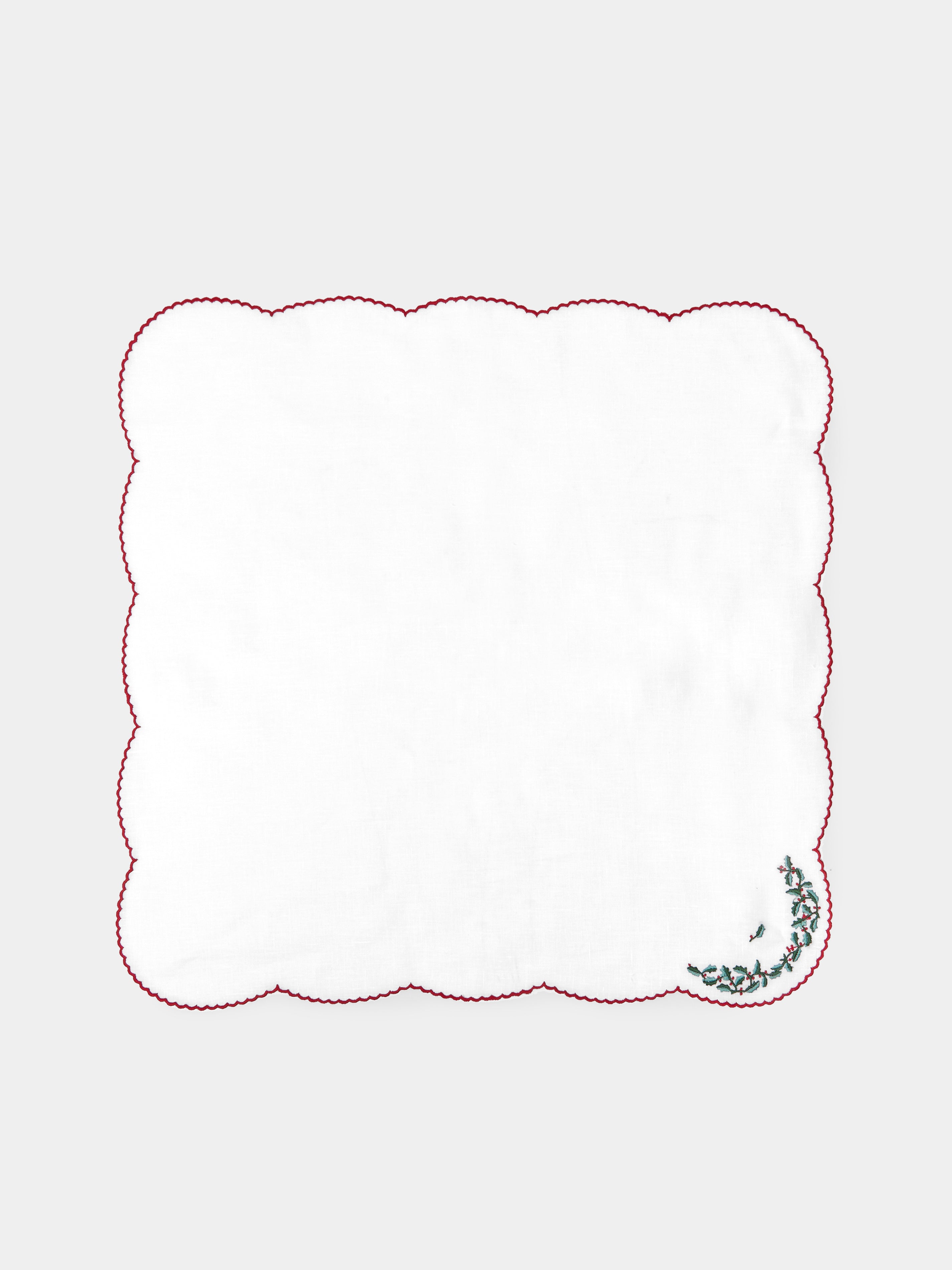 Holly Hand-Embroidered Linen Napkins (Set of 6)50cm (l) x 50cm (w) / 19.5" (l) x 19.5" (w)