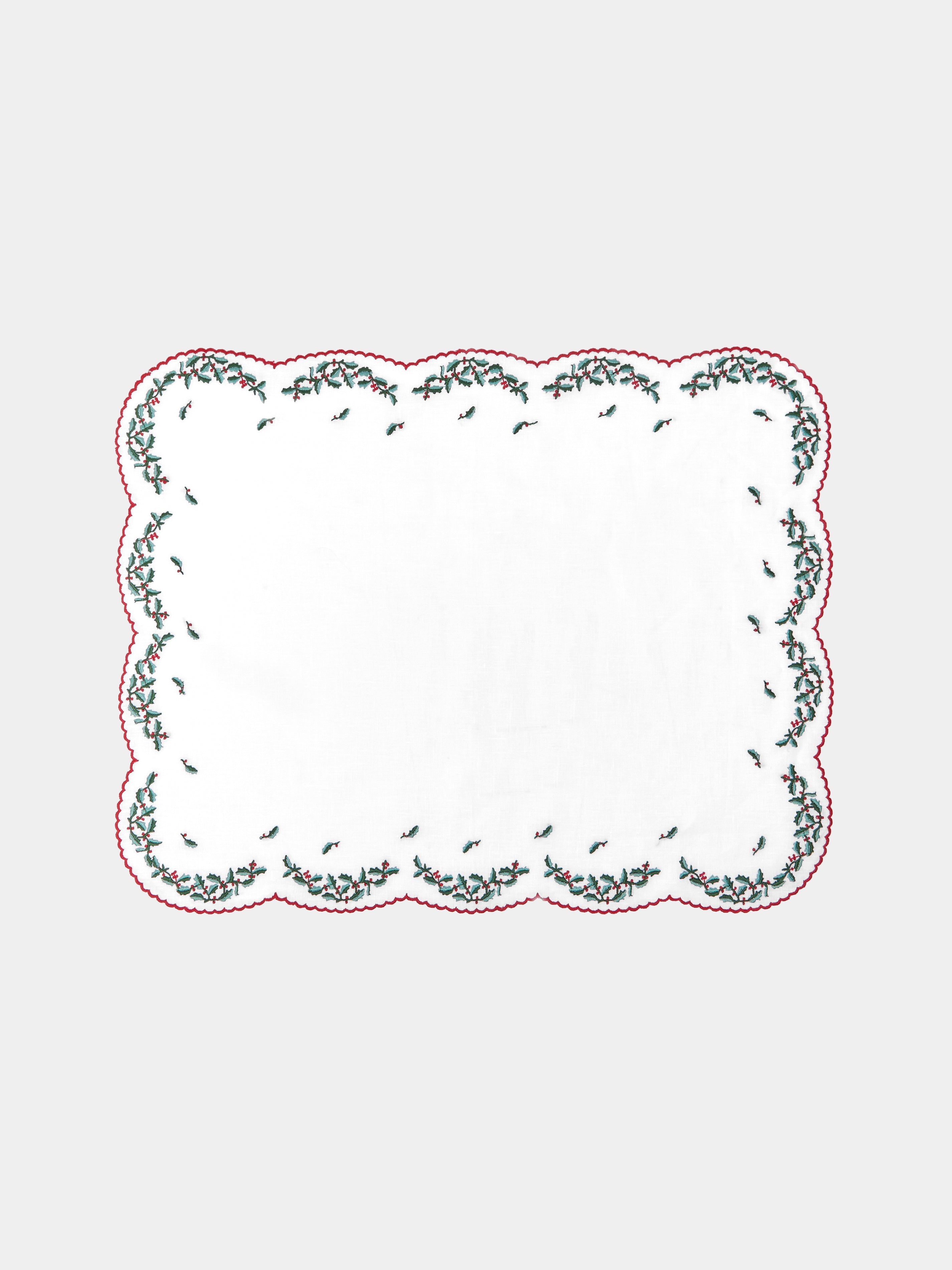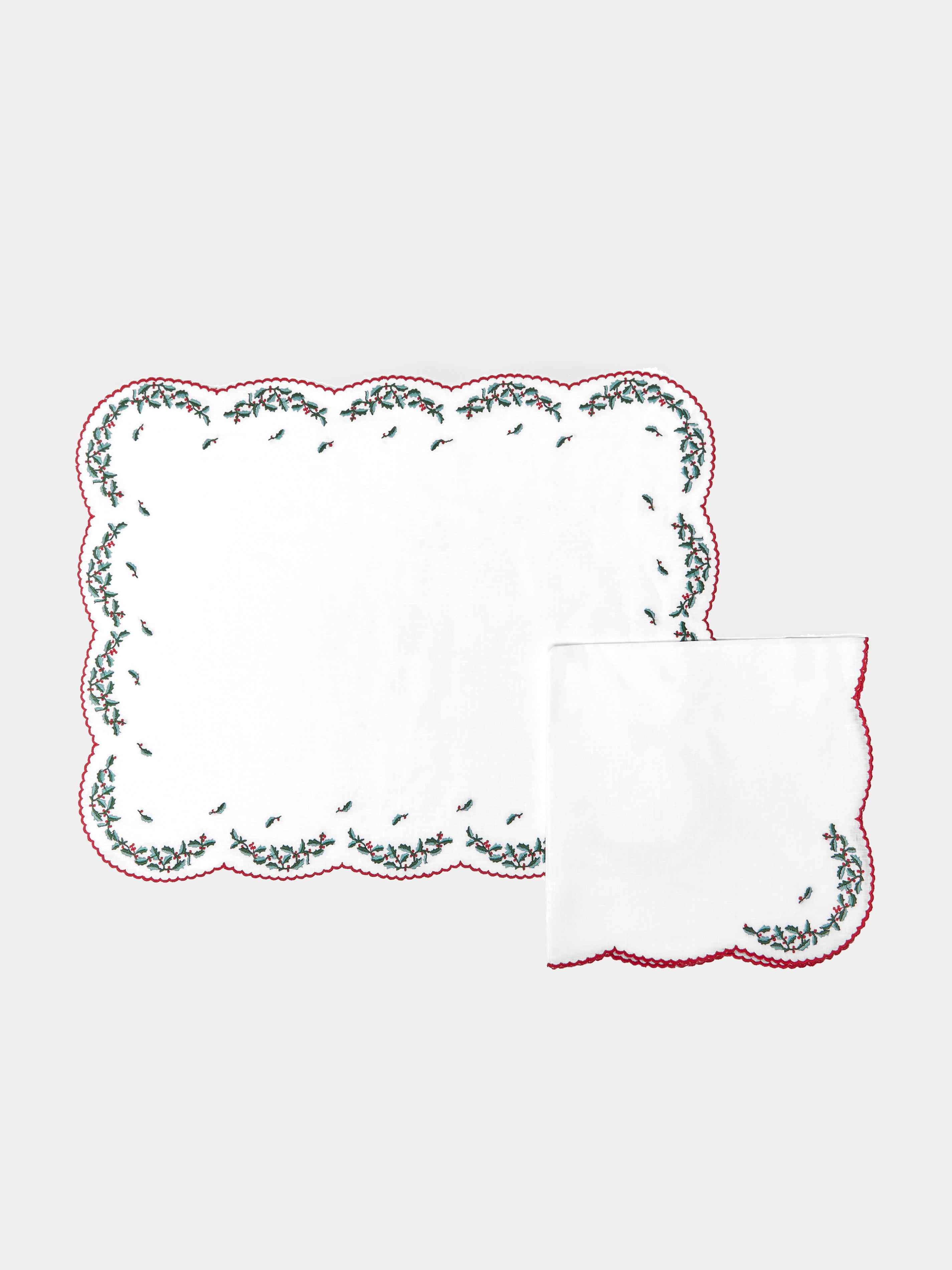Holly Hand-Embroidered Linen Placemats and Napkins (Set of 2)38cm (l) x 49cm (w) / 14.8" (l) x 19.1" (w)