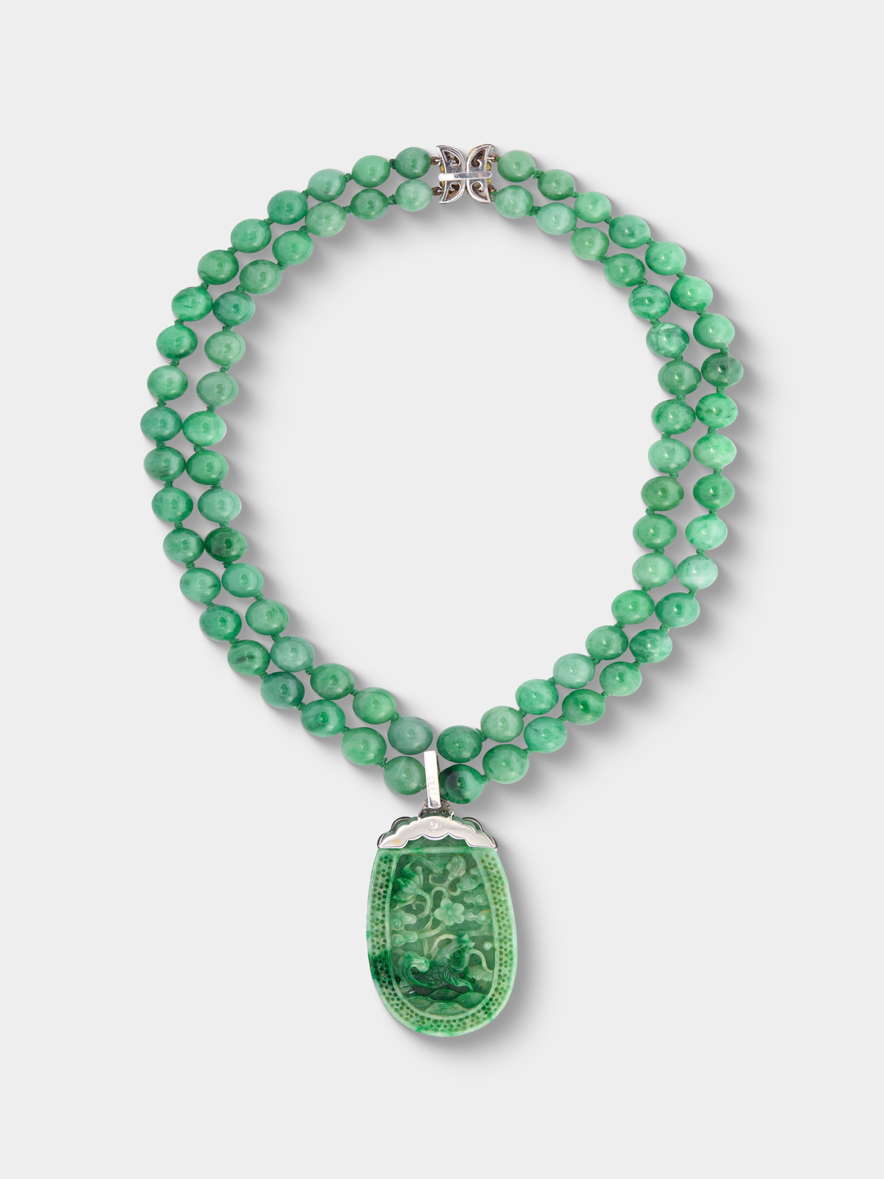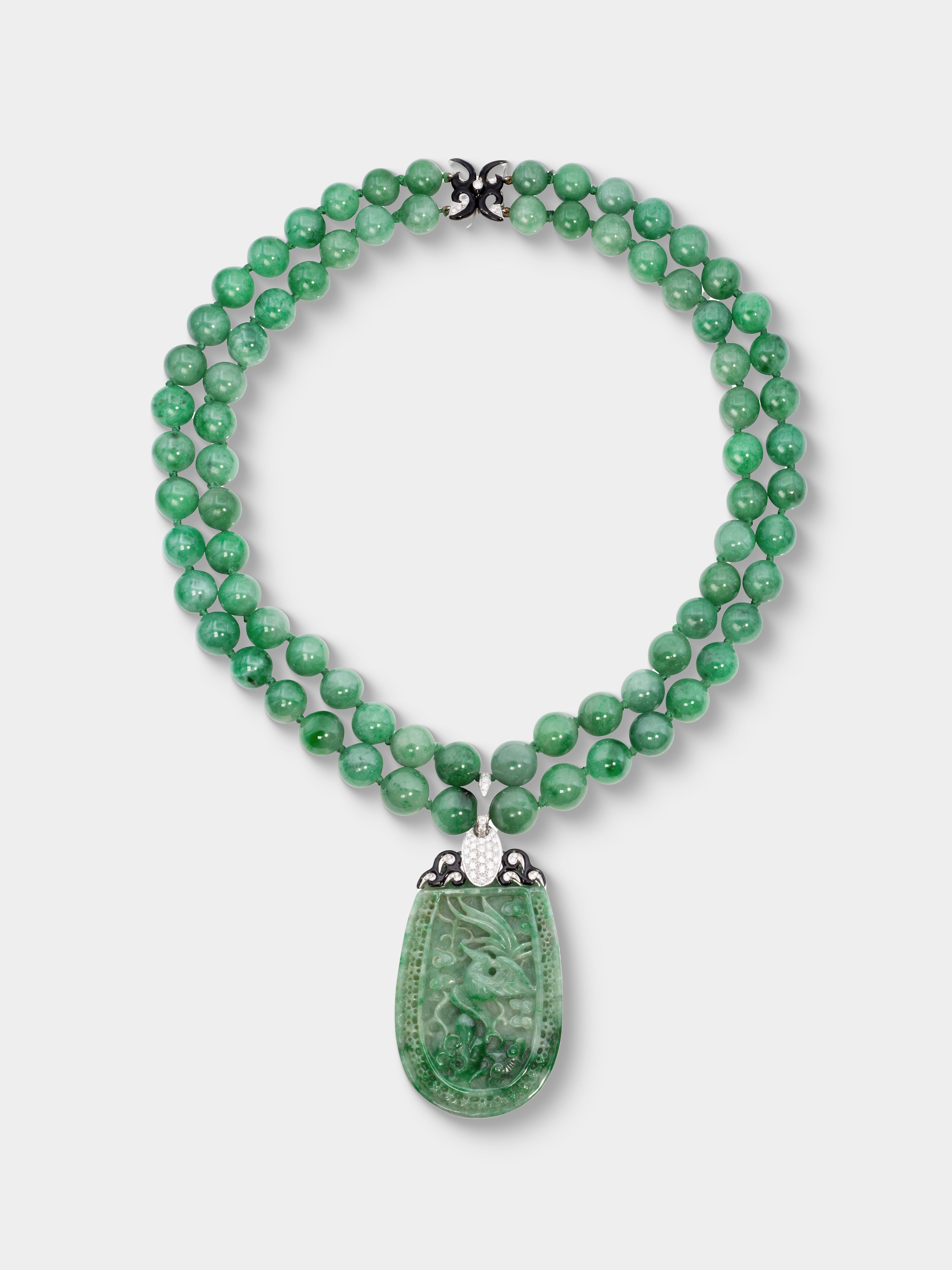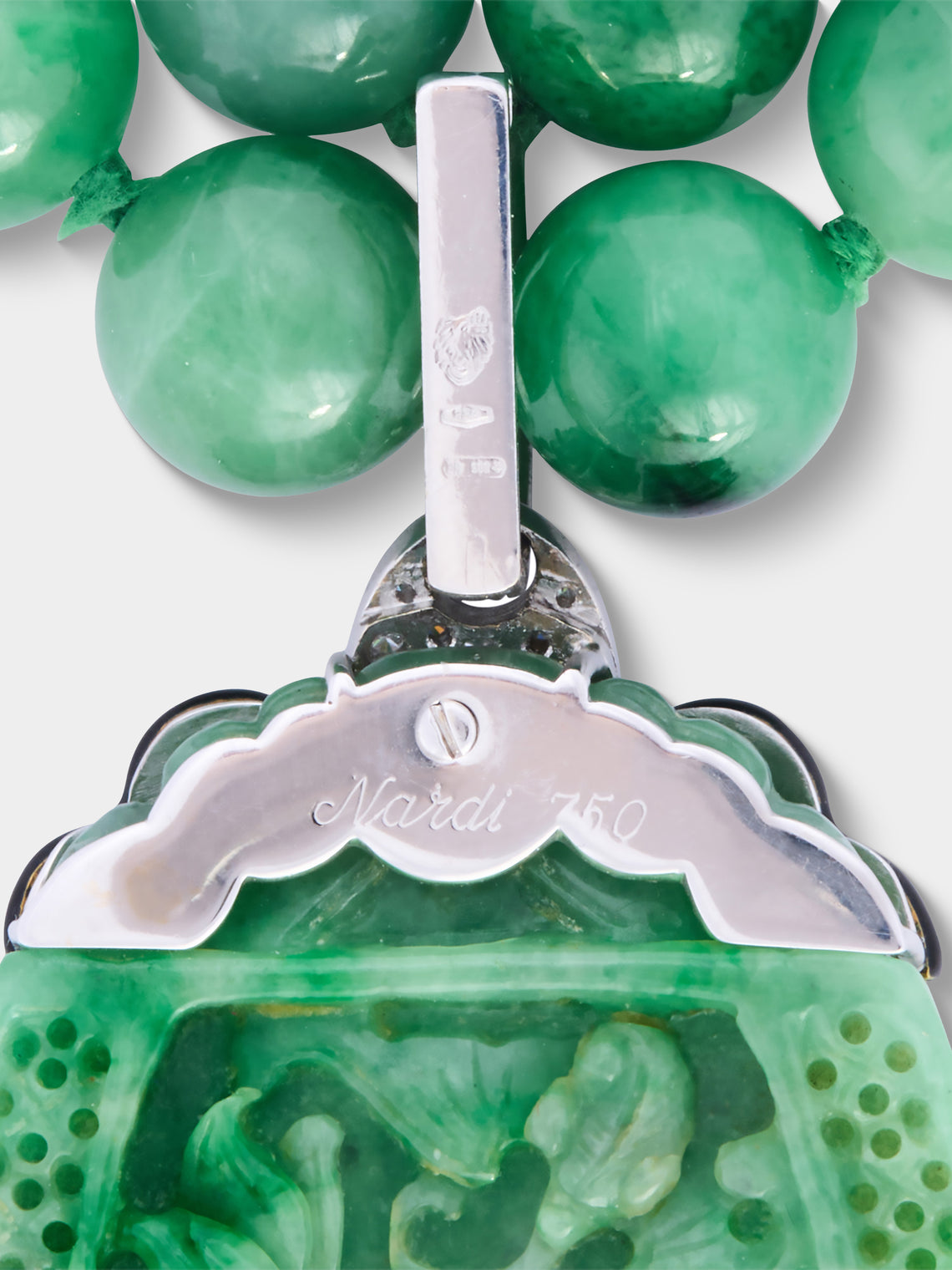 Mahnaz Collection Vintage 1970s Nardi 18-Karat White Gold, Diamond, Jade and Enamel Necklace