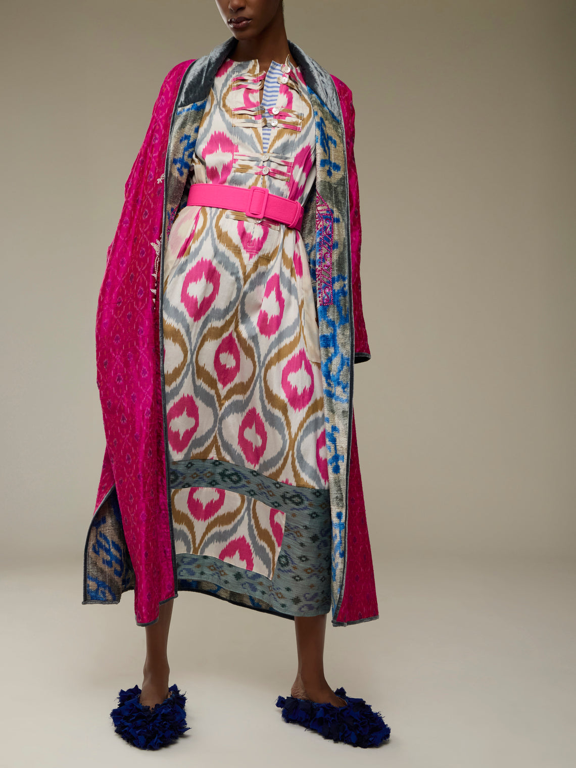 Nazzy Beglari Hand-Loomed Ikat Silk and Cotton Dress | One Size