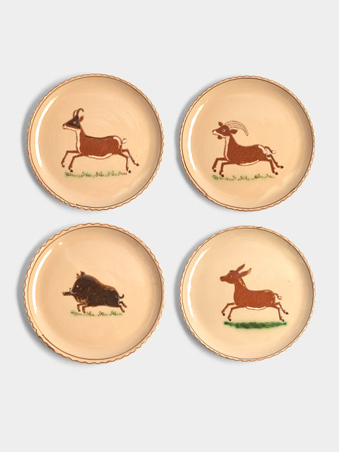 Poterie d’Évires Animals Hand-Painted Ceramic Dinner Plates – 9.5in/24cm (Set of 4)