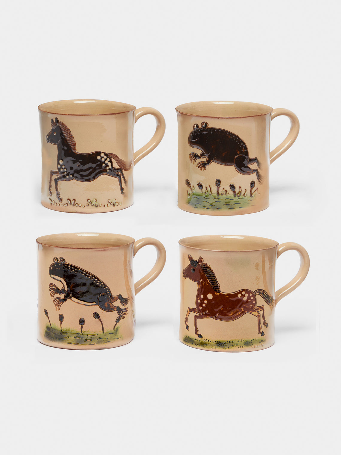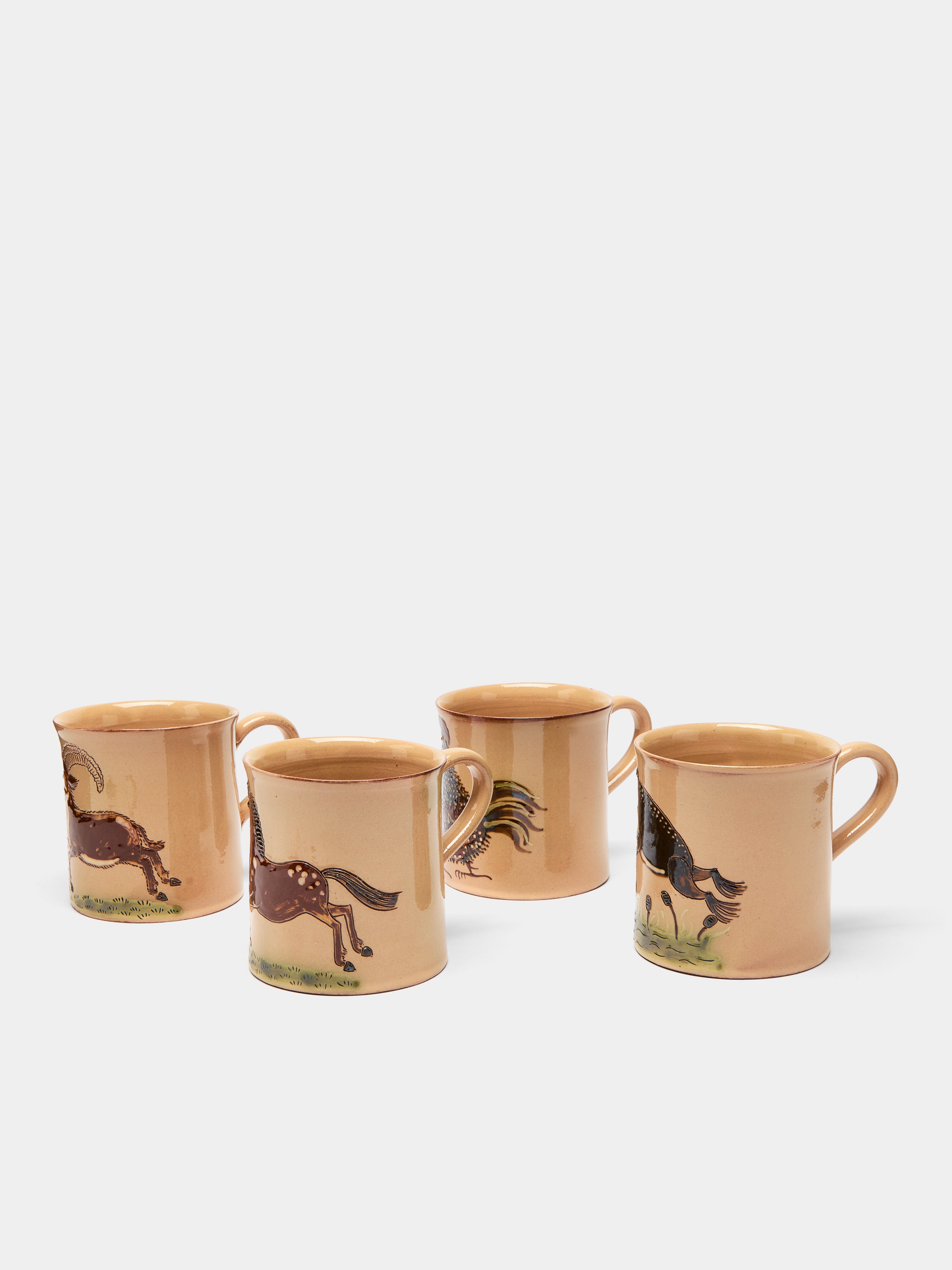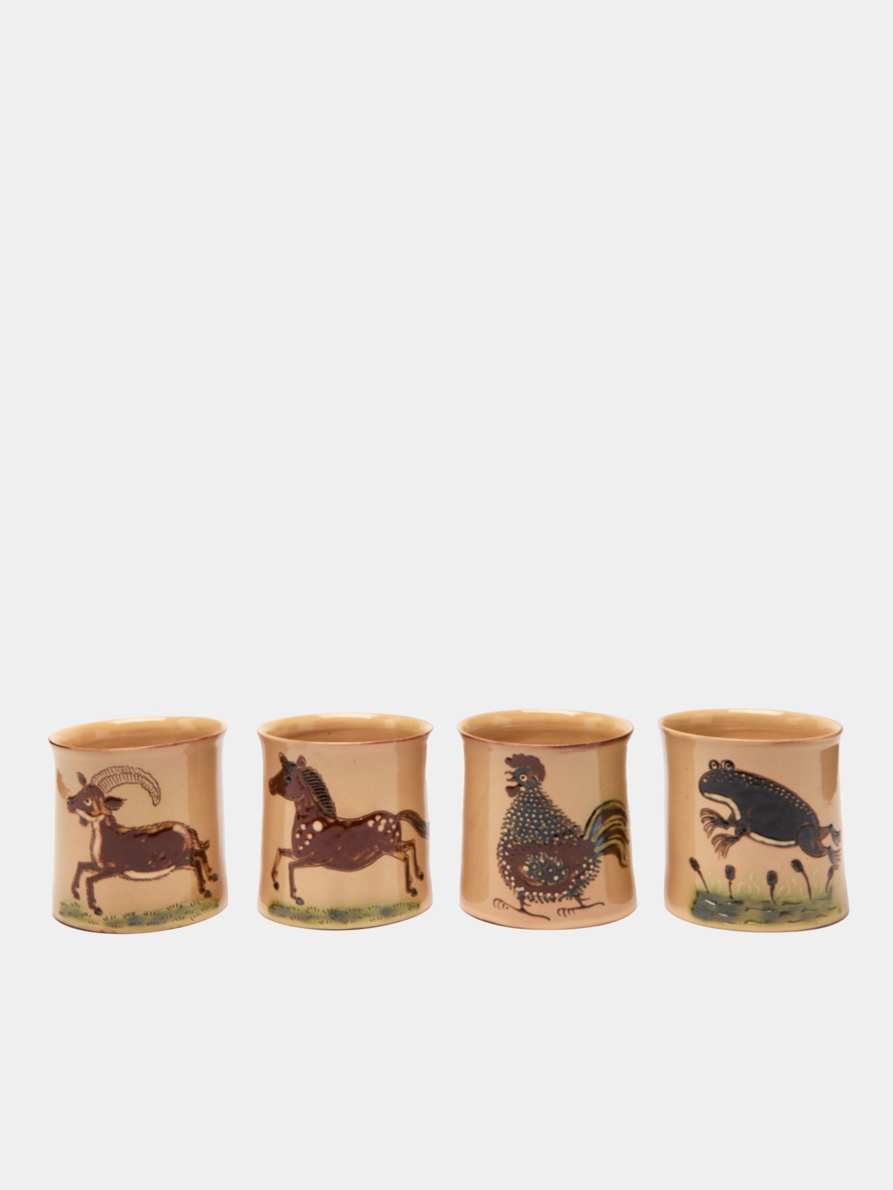 Poterie d’Évires Animals Hand-Painted Ceramic Mugs (Set of 4)