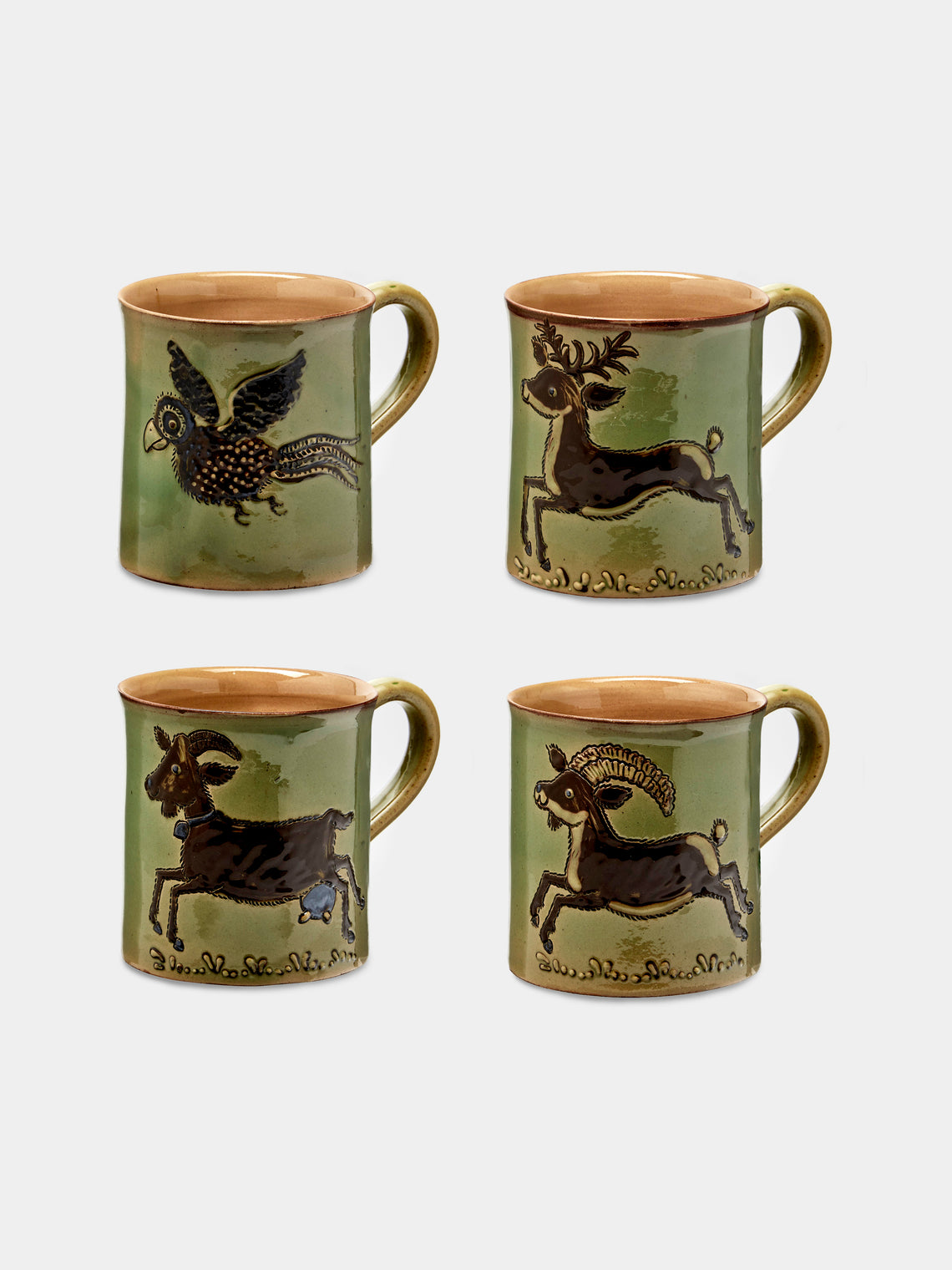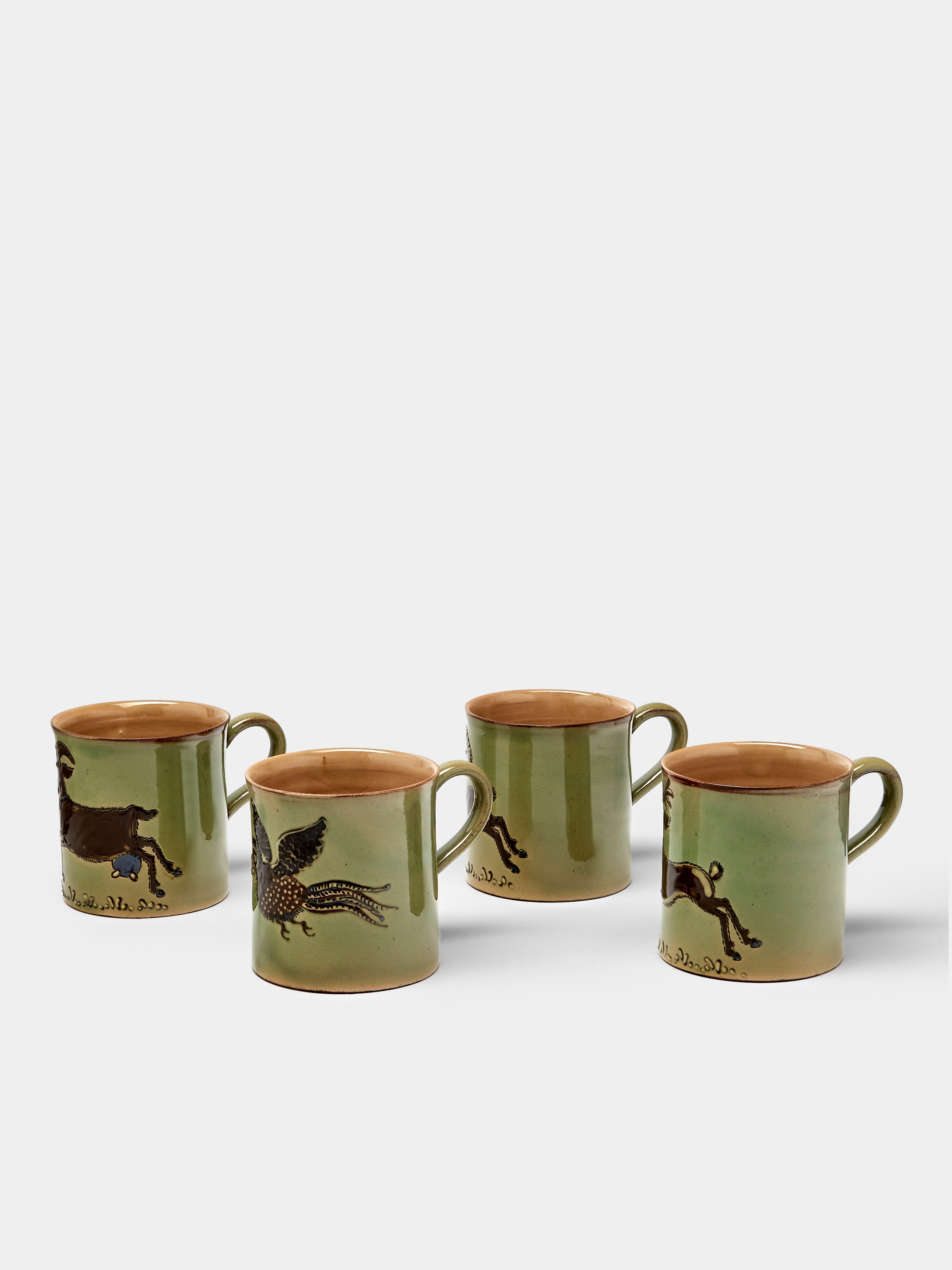 Poterie d’Évires Animals Hand-Painted Ceramic Mugs (Set of 4)
