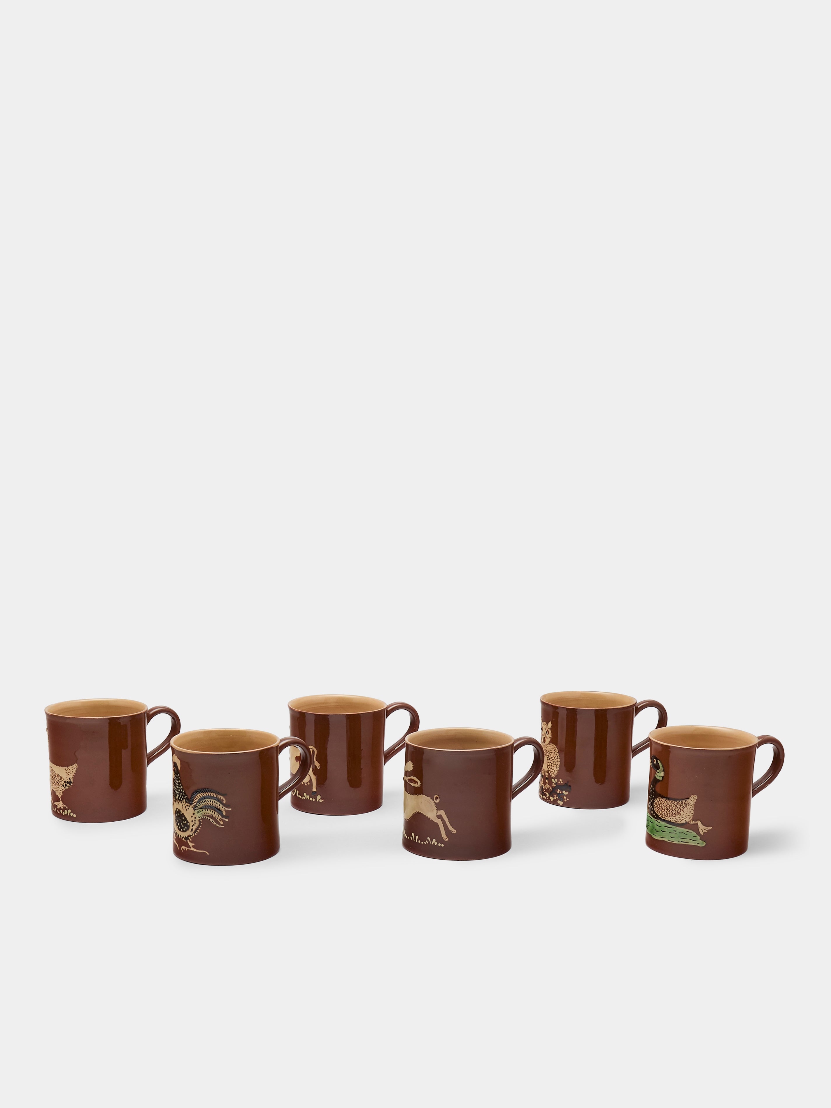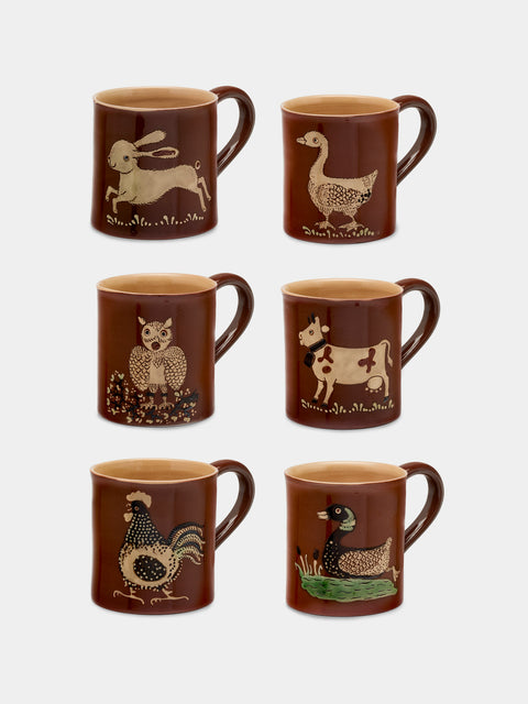 Poterie d’Évires Animals Hand-Painted Ceramic Mugs (Set of 6)