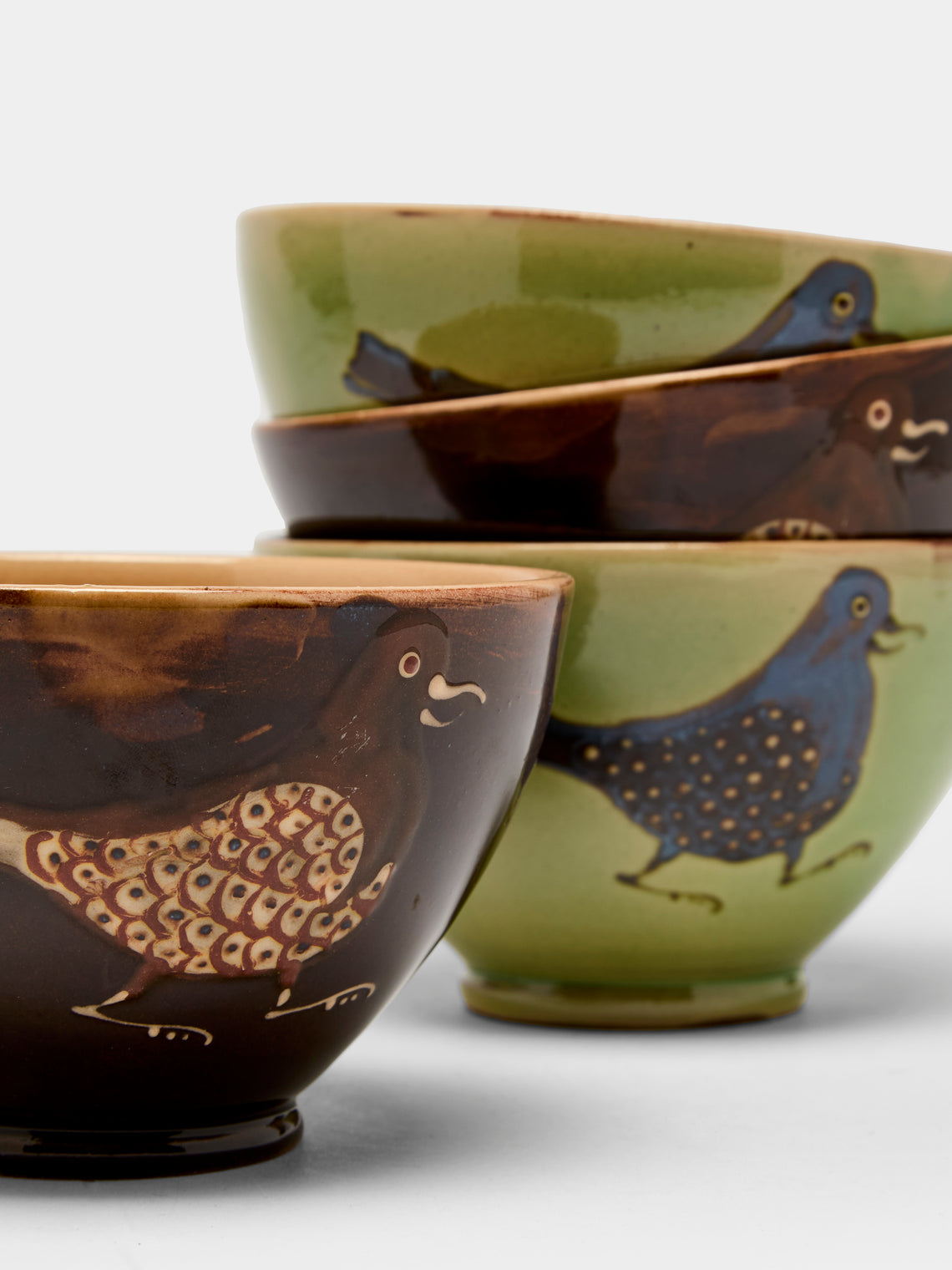 Poterie d’Évires Birds Hand-Painted Ceramic Cereal Bowls (Set of 4)