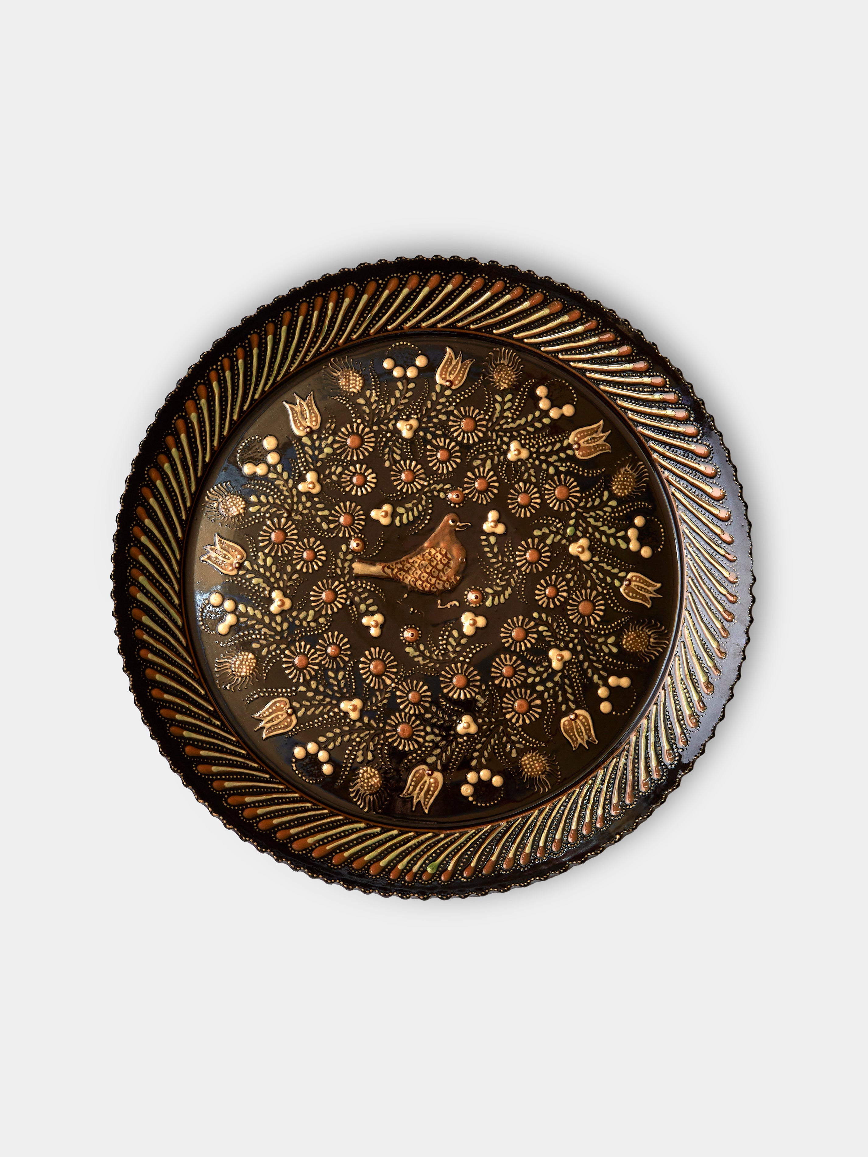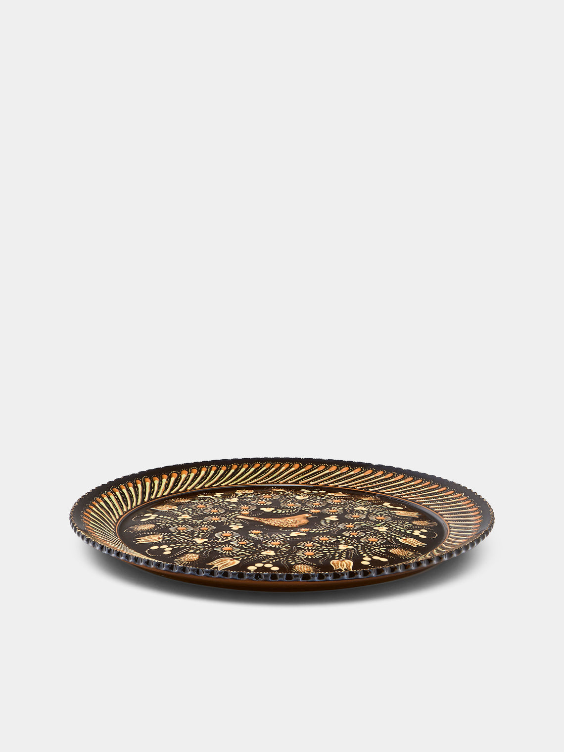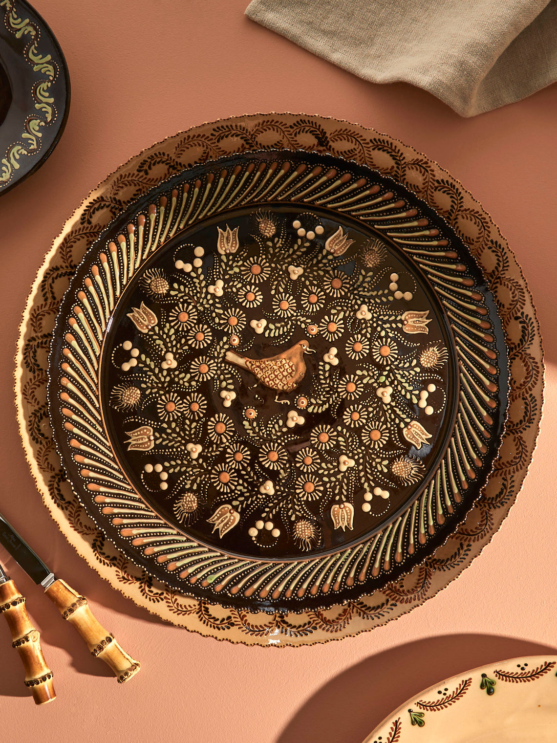 Poterie d’Évires Birds Hand-Painted Ceramic Large Round Platter