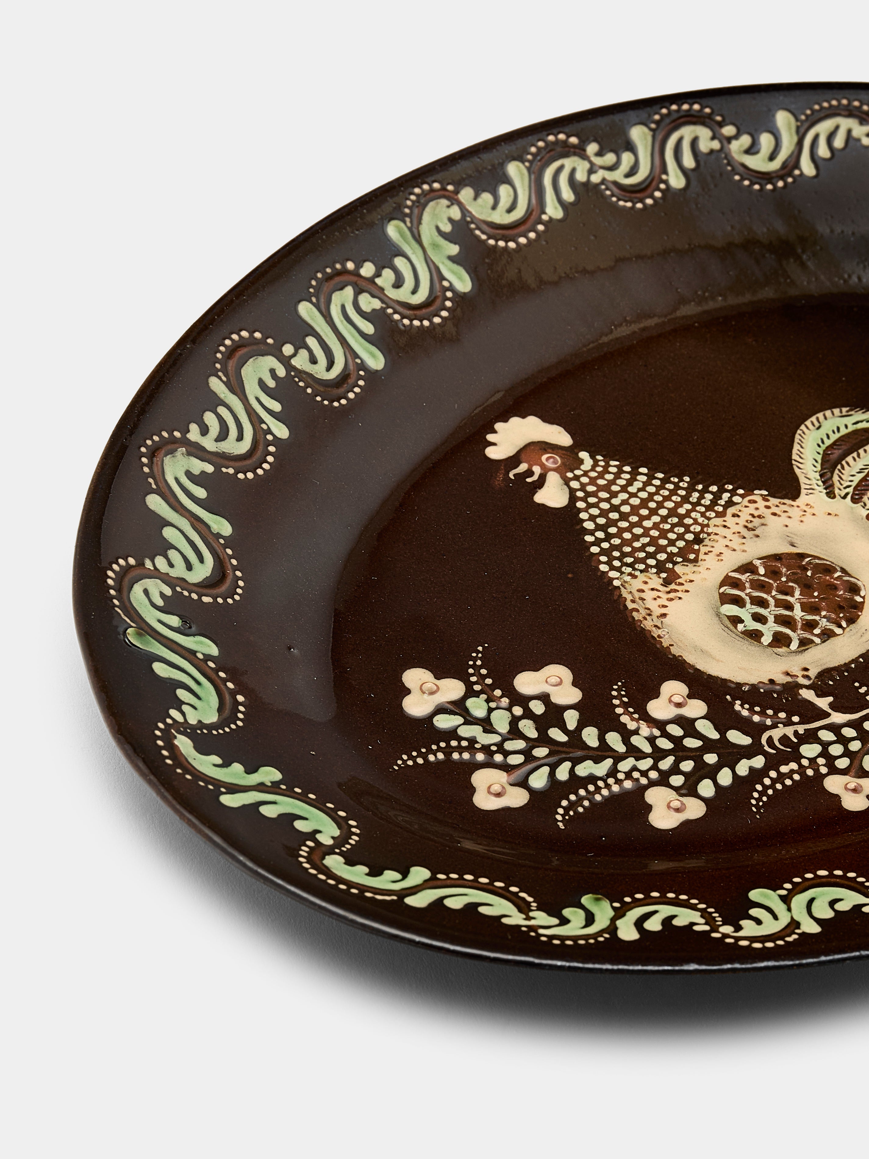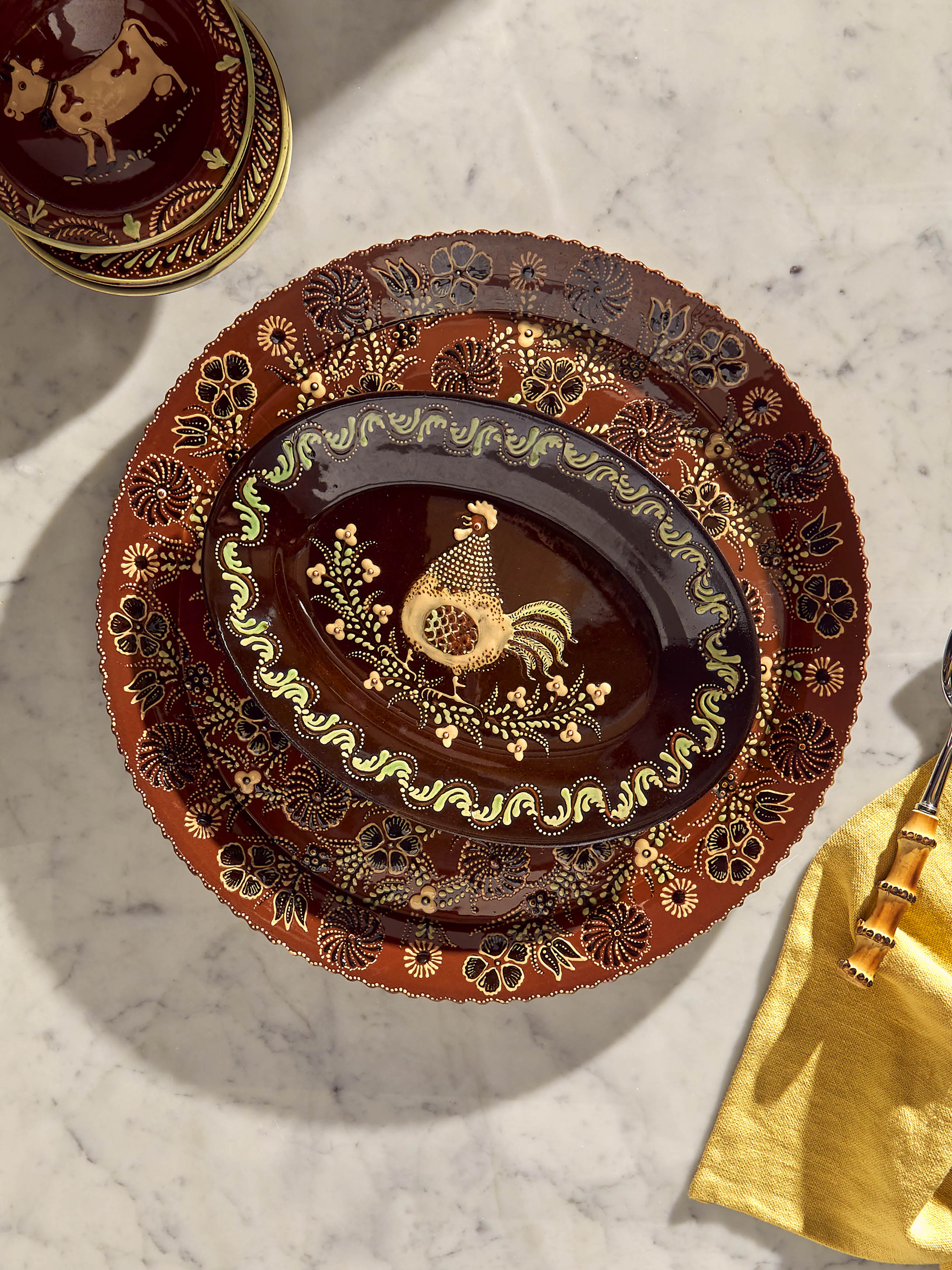 Poterie d’Évires Chickens Hand-Painted Ceramic Oval Platter
