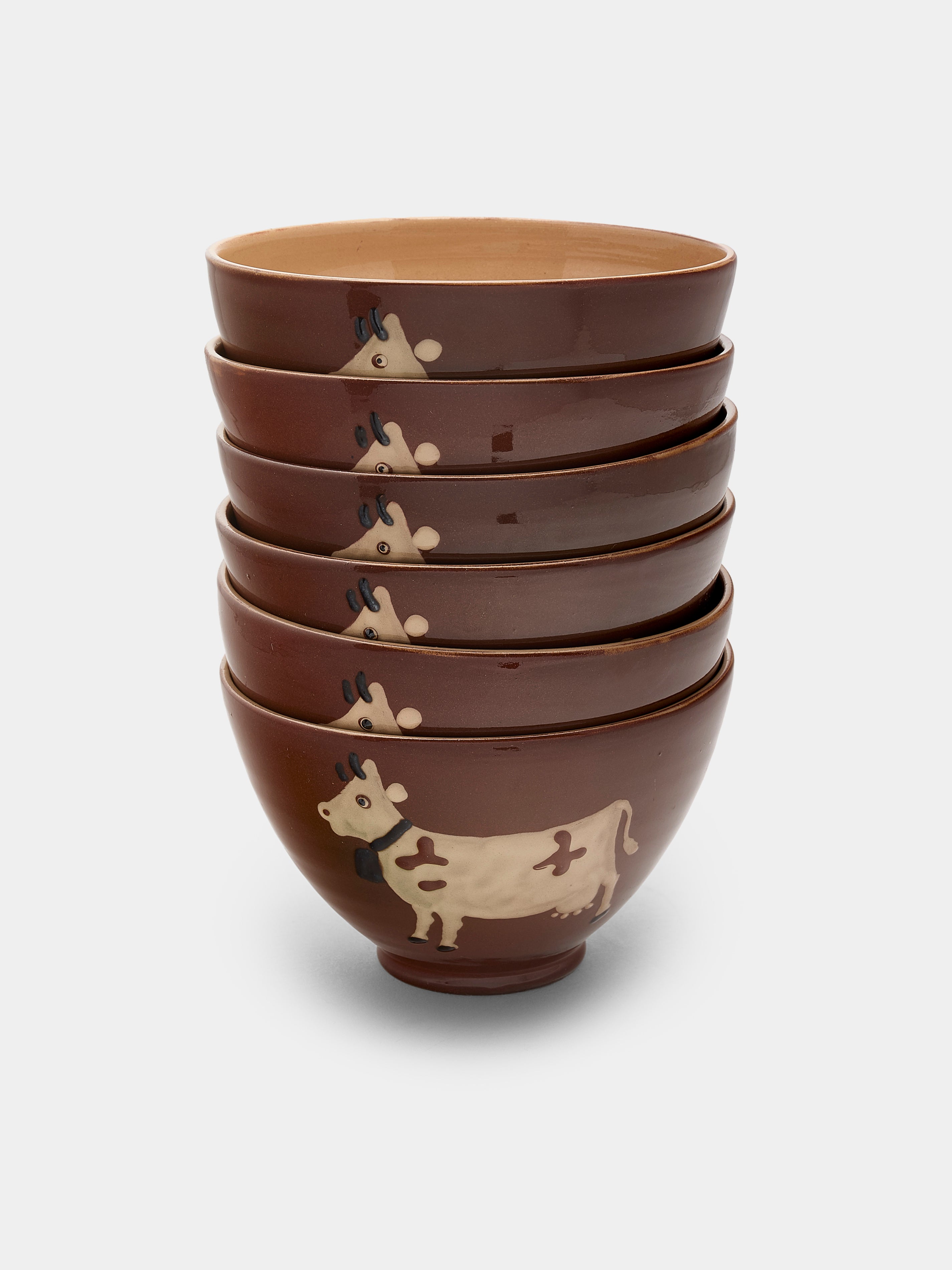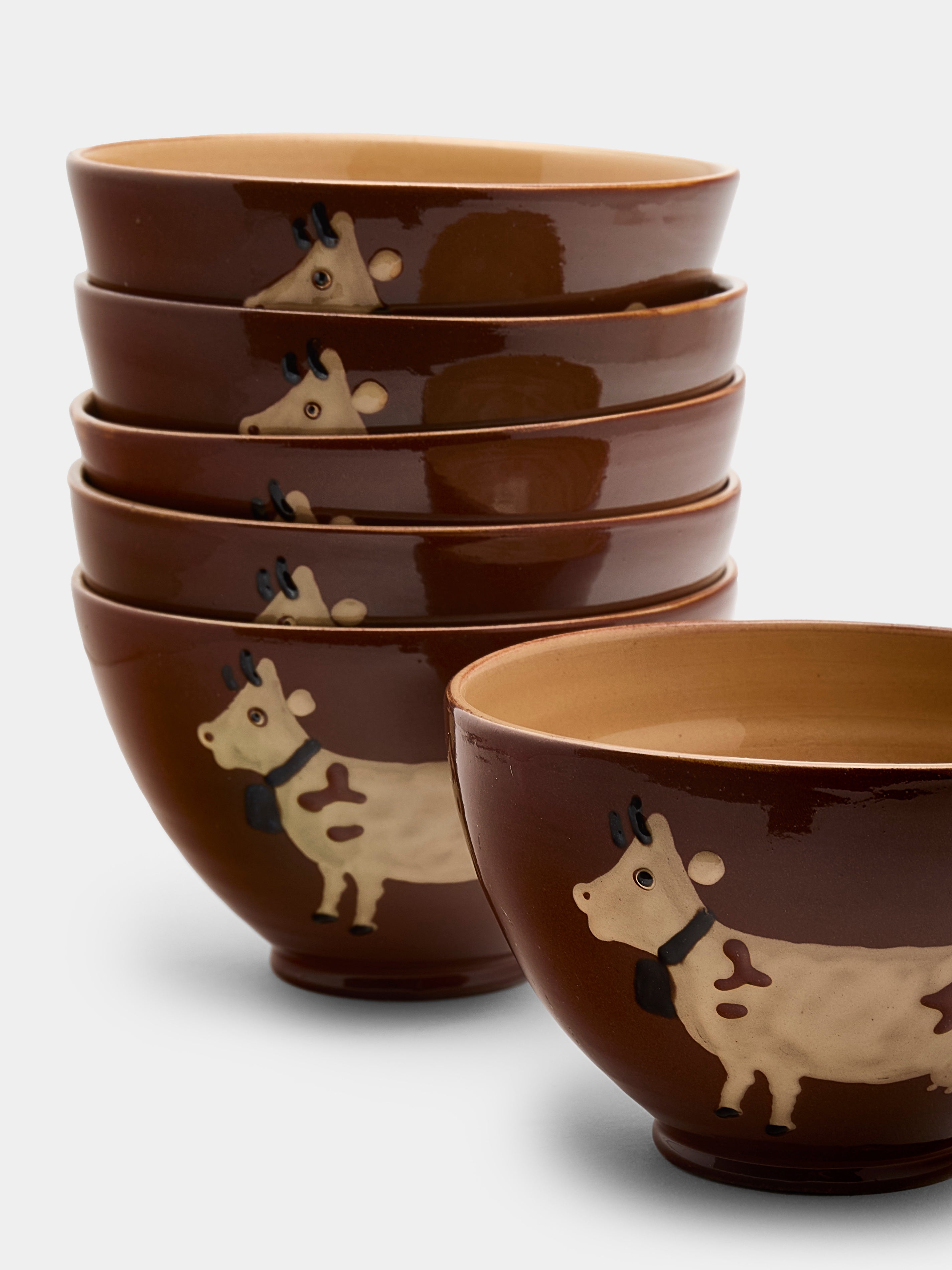 Poterie d’Évires Cows Hand-Painted Ceramic Bowls (Set of 6)