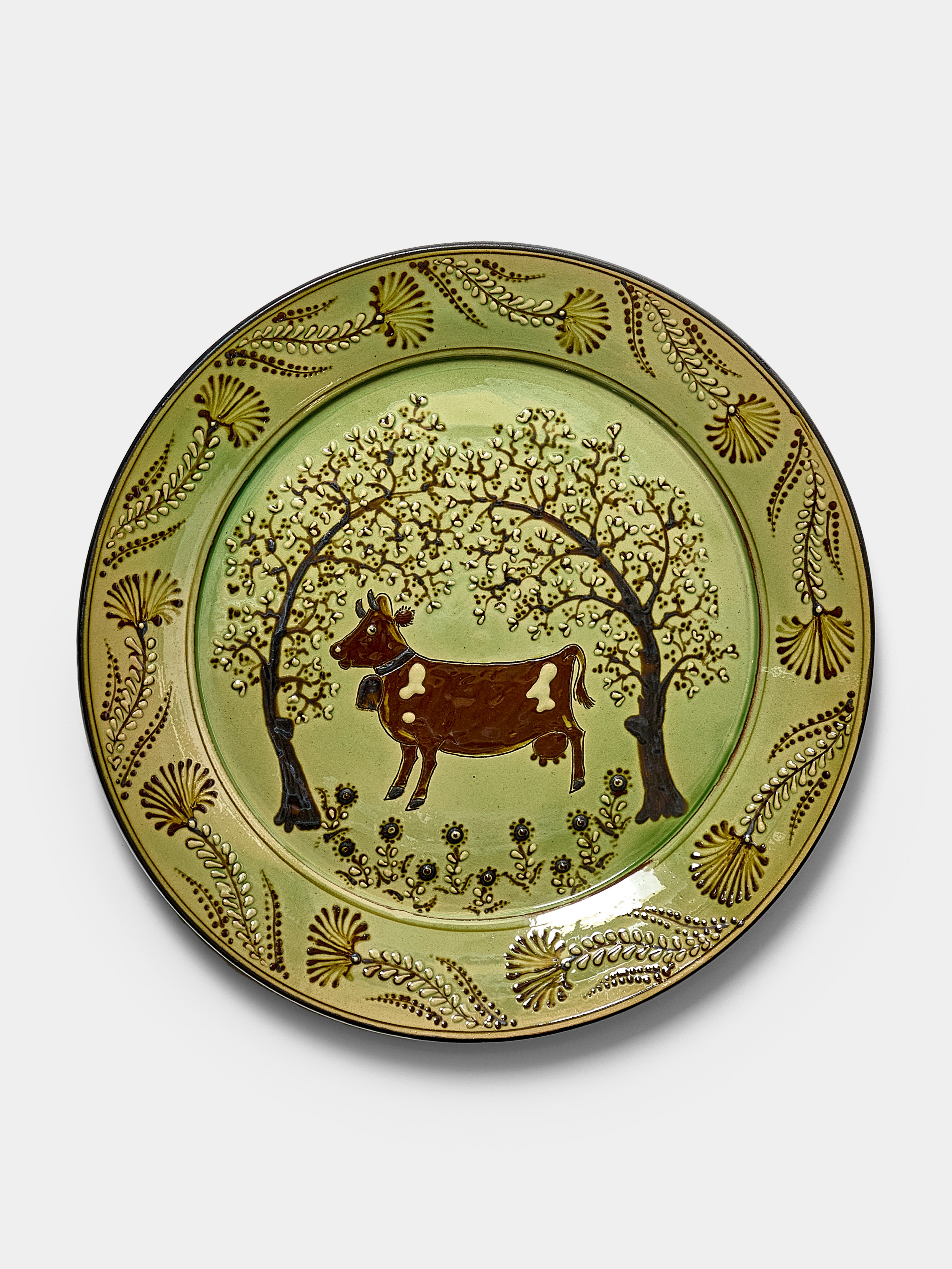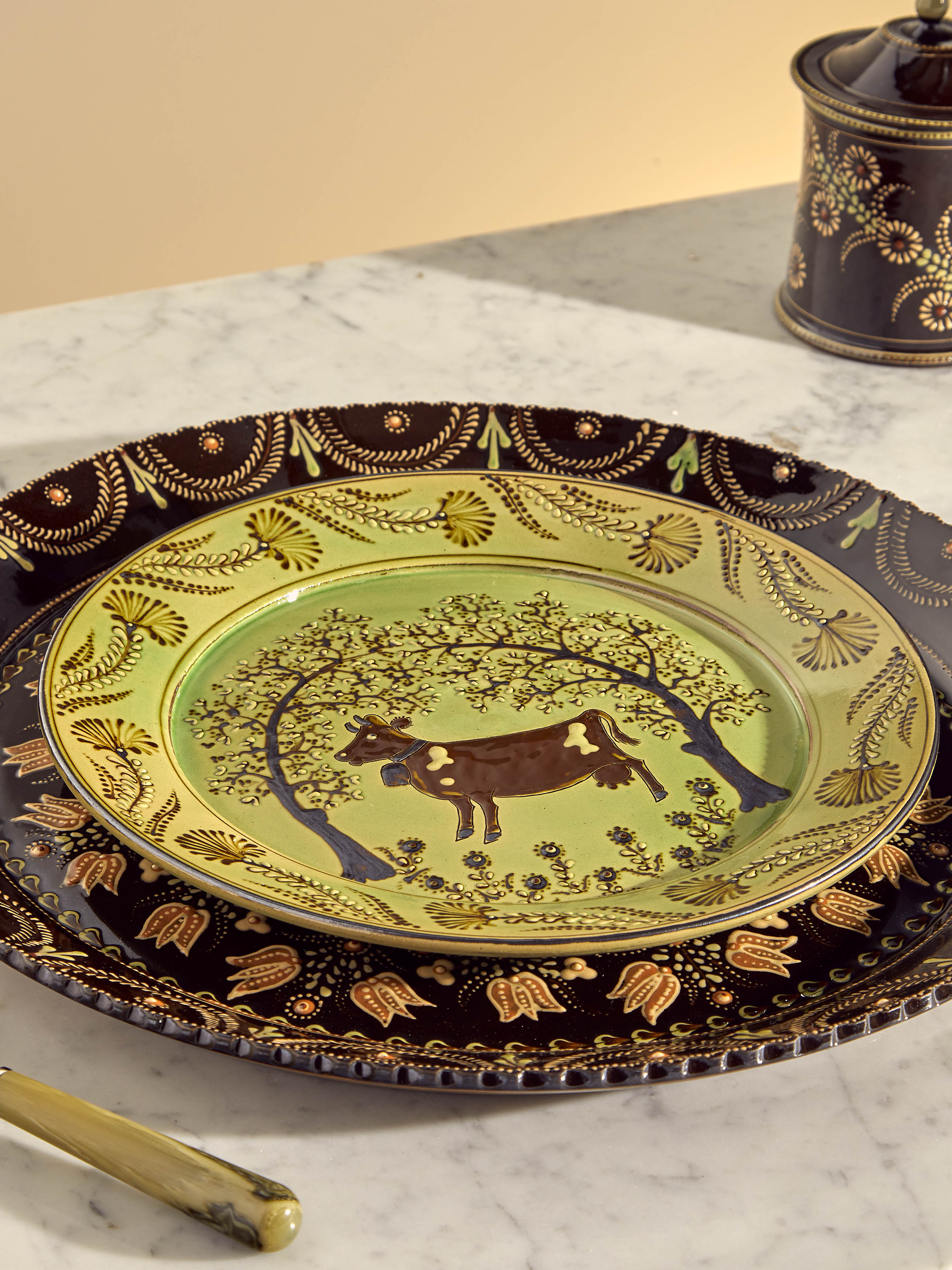 Poterie d’Évires Cows Hand-Painted Ceramic Round Platter