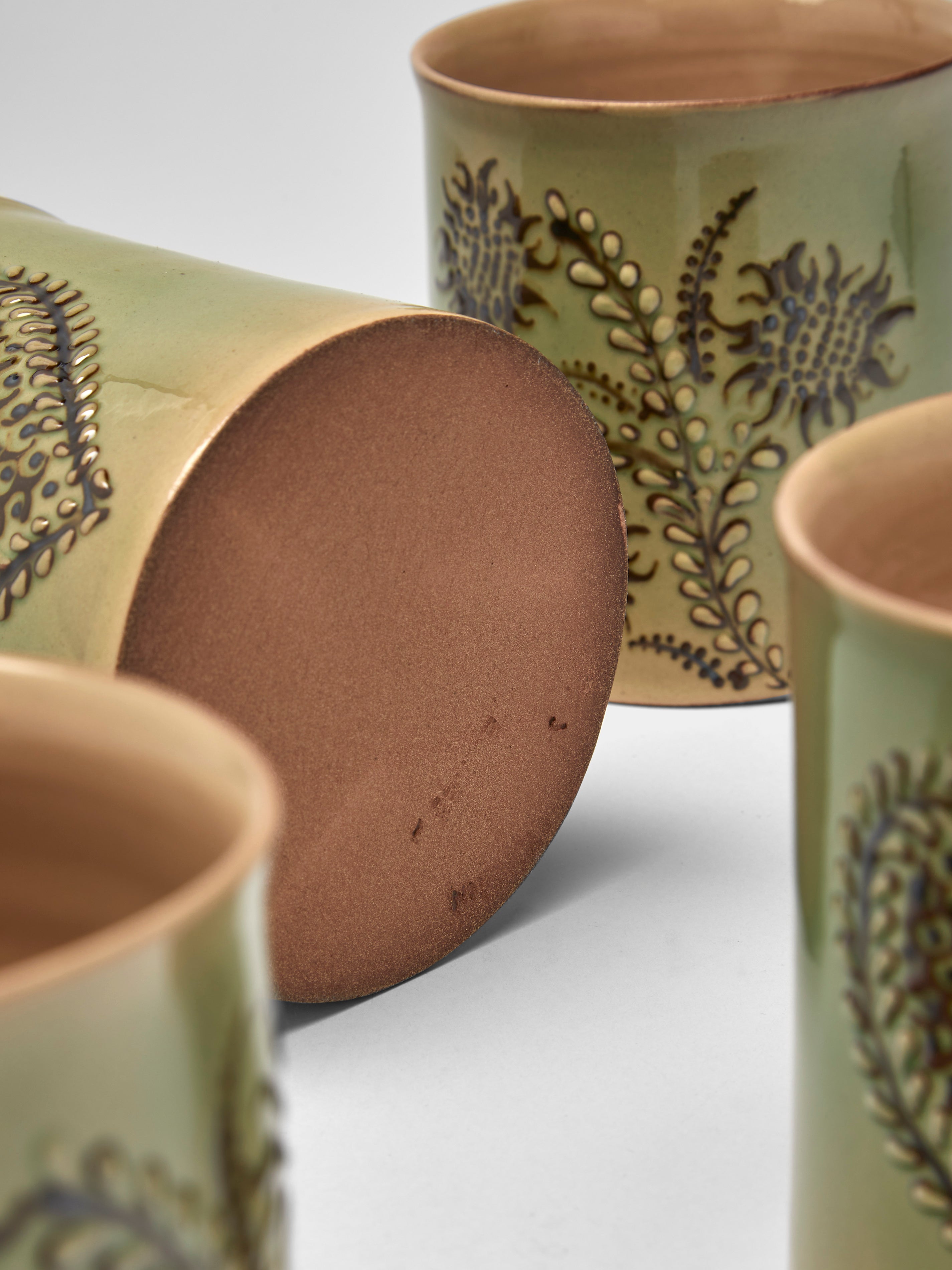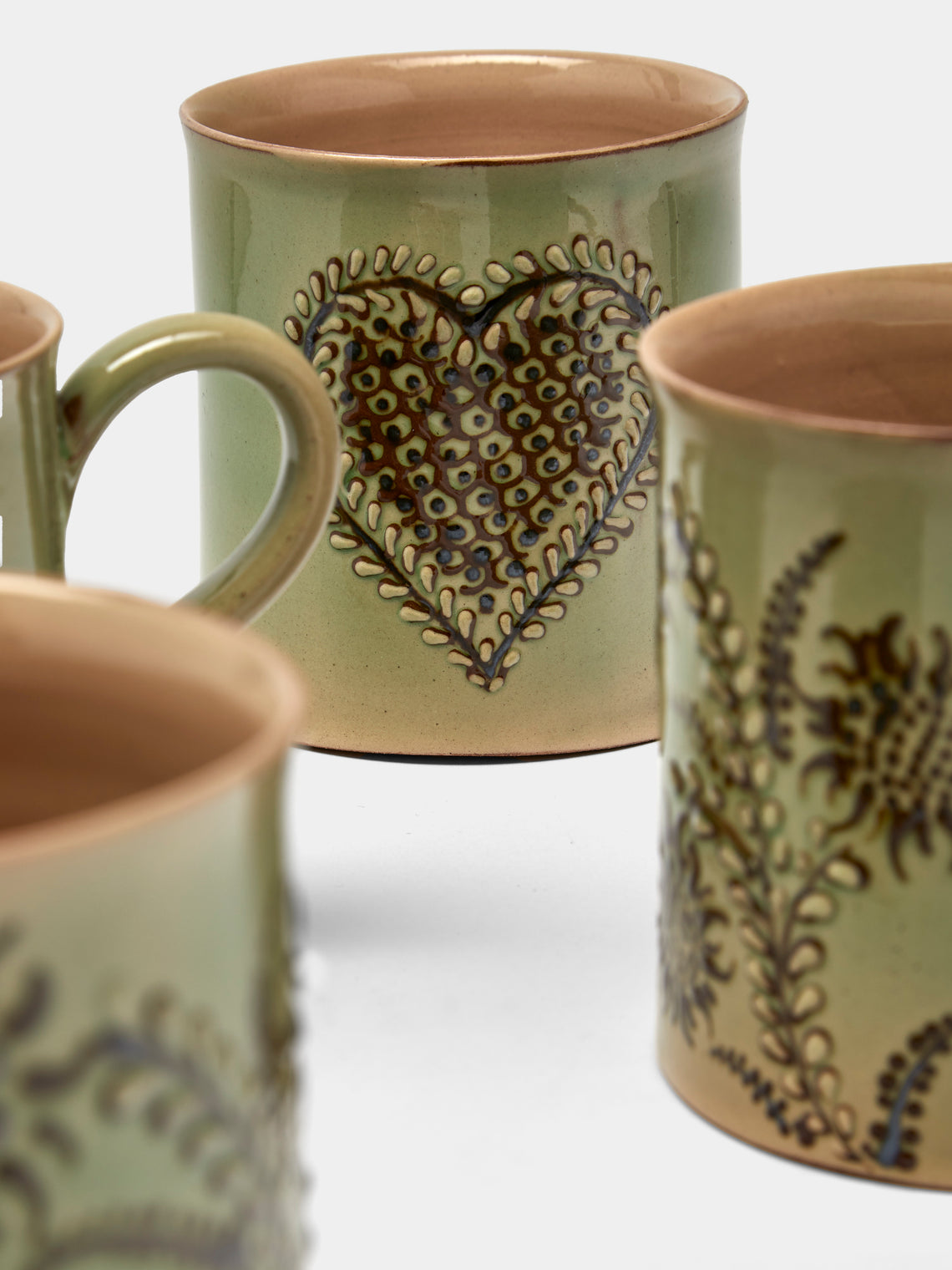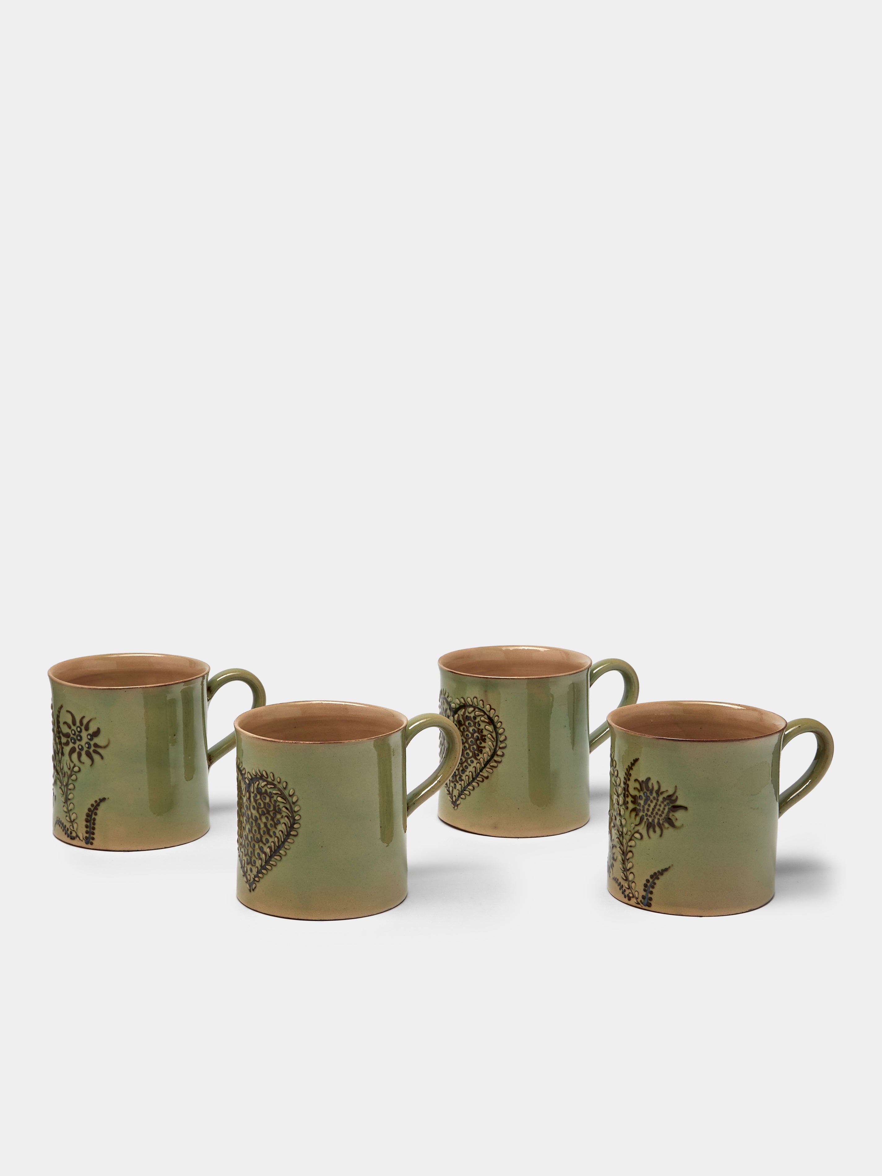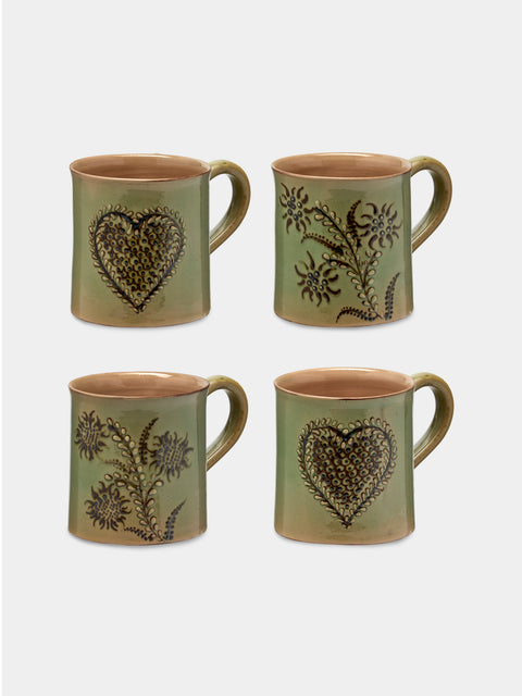 Poterie d’Évires Flowers and Hearts Hand-Painted Ceramic Mugs (Set of 4)