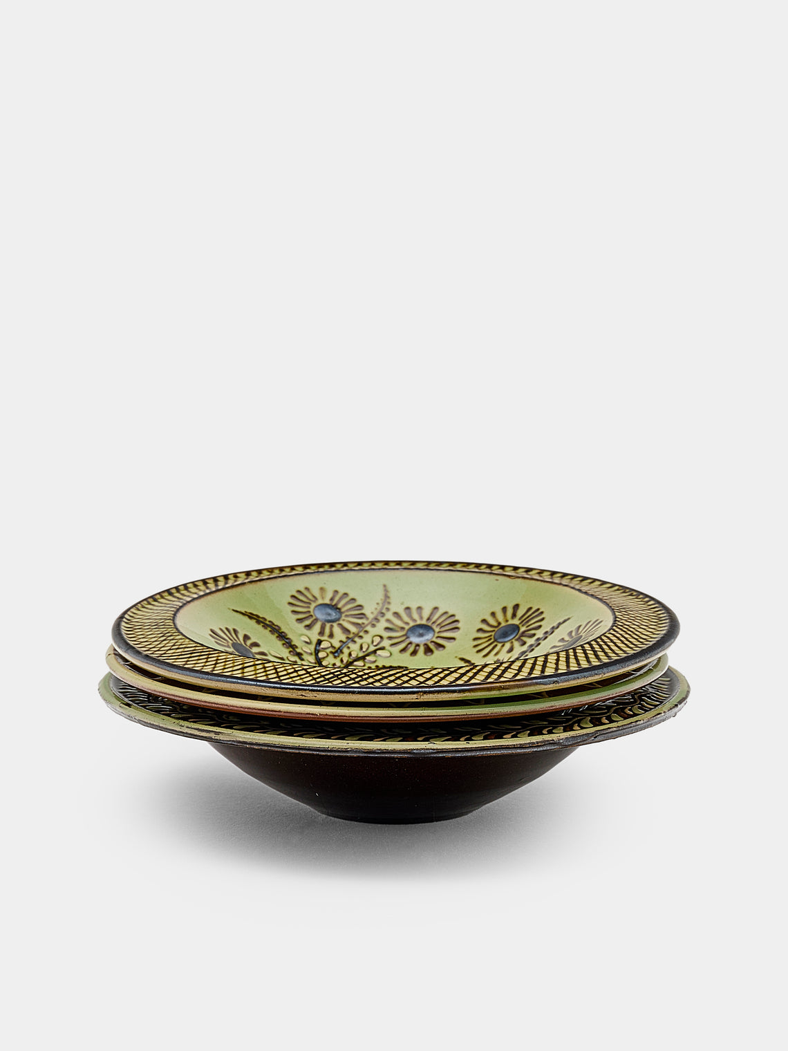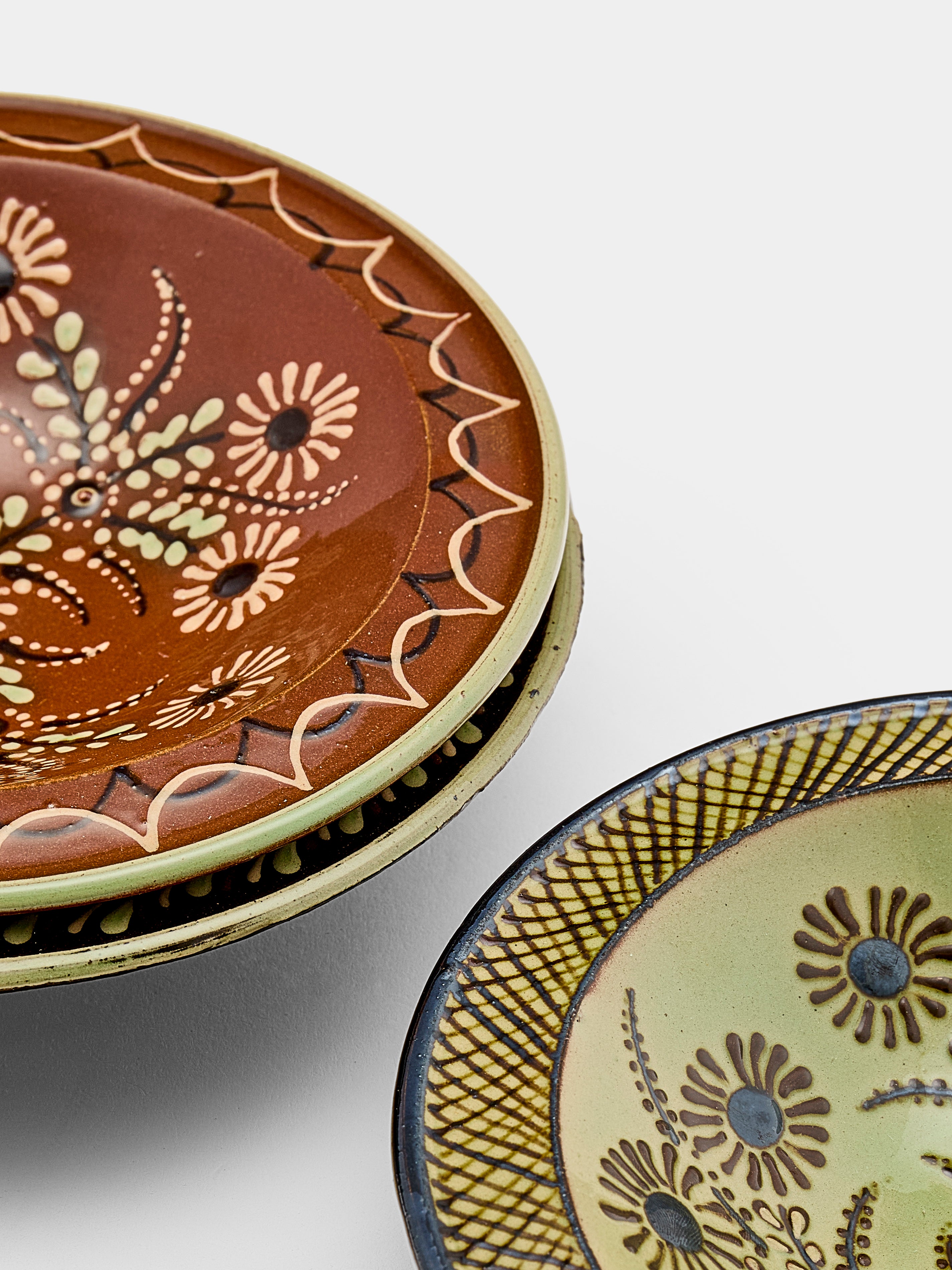 Jean-Christophe Hermann grew up near Lake Annecy in France, and recalls visiting an old pottery at just five years old that inspired him to pursue ceramics – a moment that led to the opening of Poterie d’Évires in 1971. Influenced by the landscape of their Haute-Savoie home, the Hermann family – Jean-Christophe and David, the father and son duo – hand-paint local delights onto their light, earthy and decorative clay; alpine flowers like tiny crocuses and soldanellas often feature, as well as native creatures such as Chamois and Ibex. ABASK made a special road-trip to the French Alps to hand-pick a curation from their exquisite collection. In 1981, after exploring his region’s brocante for many years, Jean-Christophe opened a museum dedicated to the pottery and folk art of Savoie. It’s the largest and most comprehensive collection in the world and displays pieces that date as far back as the 12th century.