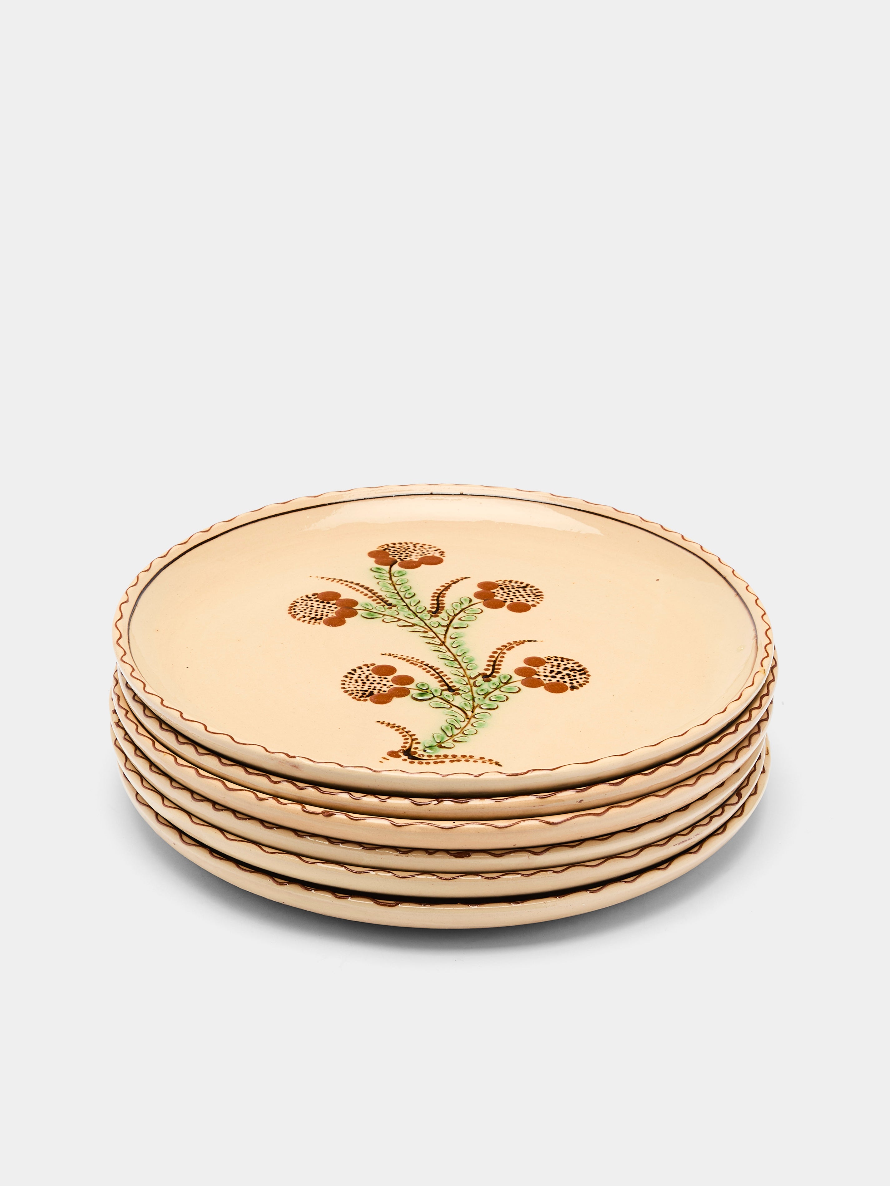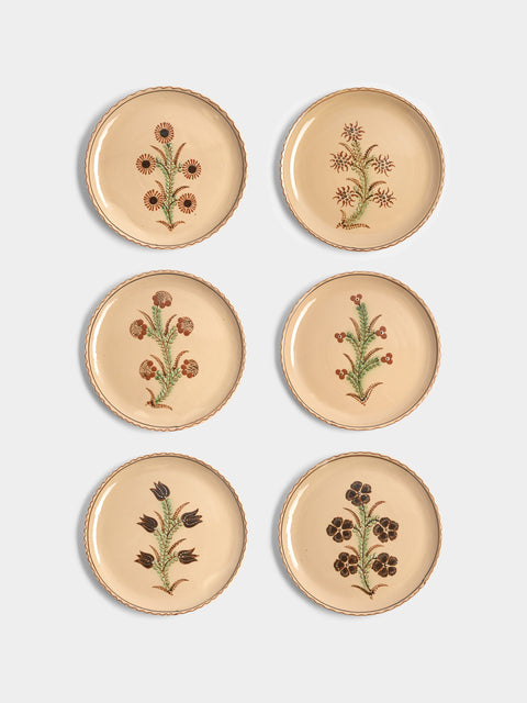 Poterie d’Évires Flowers Hand-Painted Ceramic Dinner Plates – 9.5in/24cm (Set of 6)