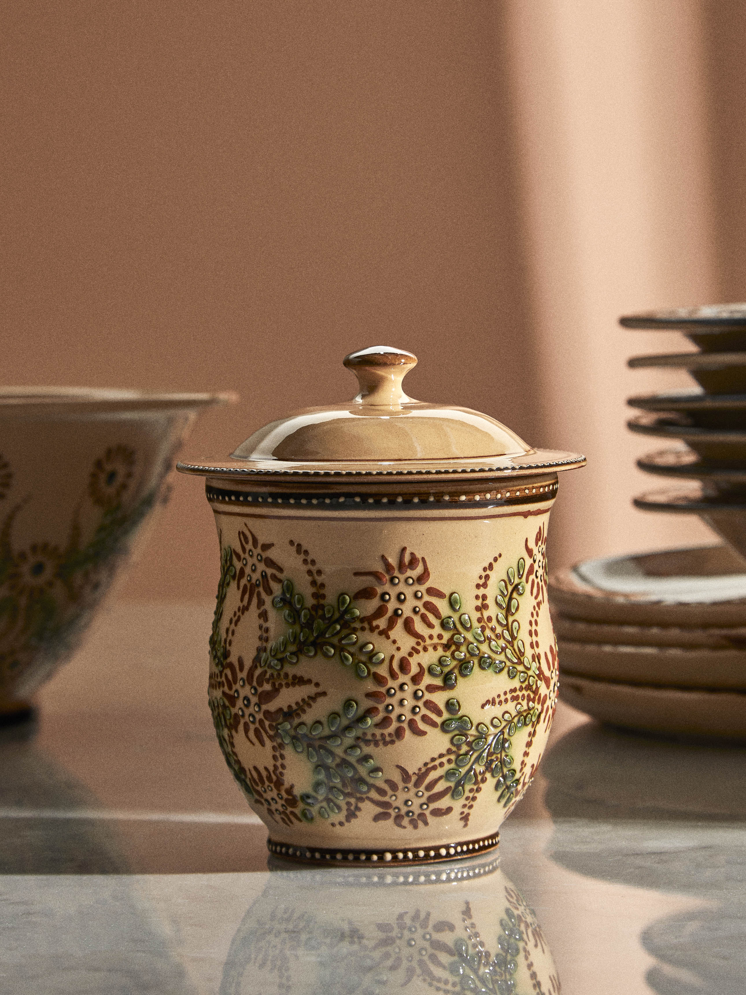 Jean-Christophe Hermann grew up near Lake Annecy in France, and recalls visiting an old pottery at just five years old that inspired him to pursue ceramics – a moment that led to the opening of Poterie d’Évires in 1971. Influenced by the landscape of their Haute-Savoie home, the Hermann family – Jean-Christophe and David, the father and son duo – hand-paint local delights onto their light, earthy and decorative clay; alpine flowers like tiny crocuses and soldanellas often feature, as well as native creatures such as Chamois and Ibex. ABASK made a special road-trip to the French Alps to hand-pick a curation from their exquisite collection. In 1981, after exploring his region’s brocante for many years, Jean-Christophe opened a museum dedicated to the pottery and folk art of Savoie. It’s the largest and most comprehensive collection in the world and displays pieces that date as far back as the 12th century.