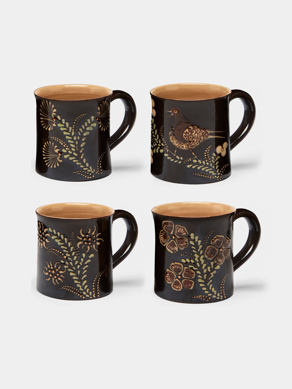 Poterie d’Évires Flowers Hand-Painted Ceramic Mugs (Set of 4)
