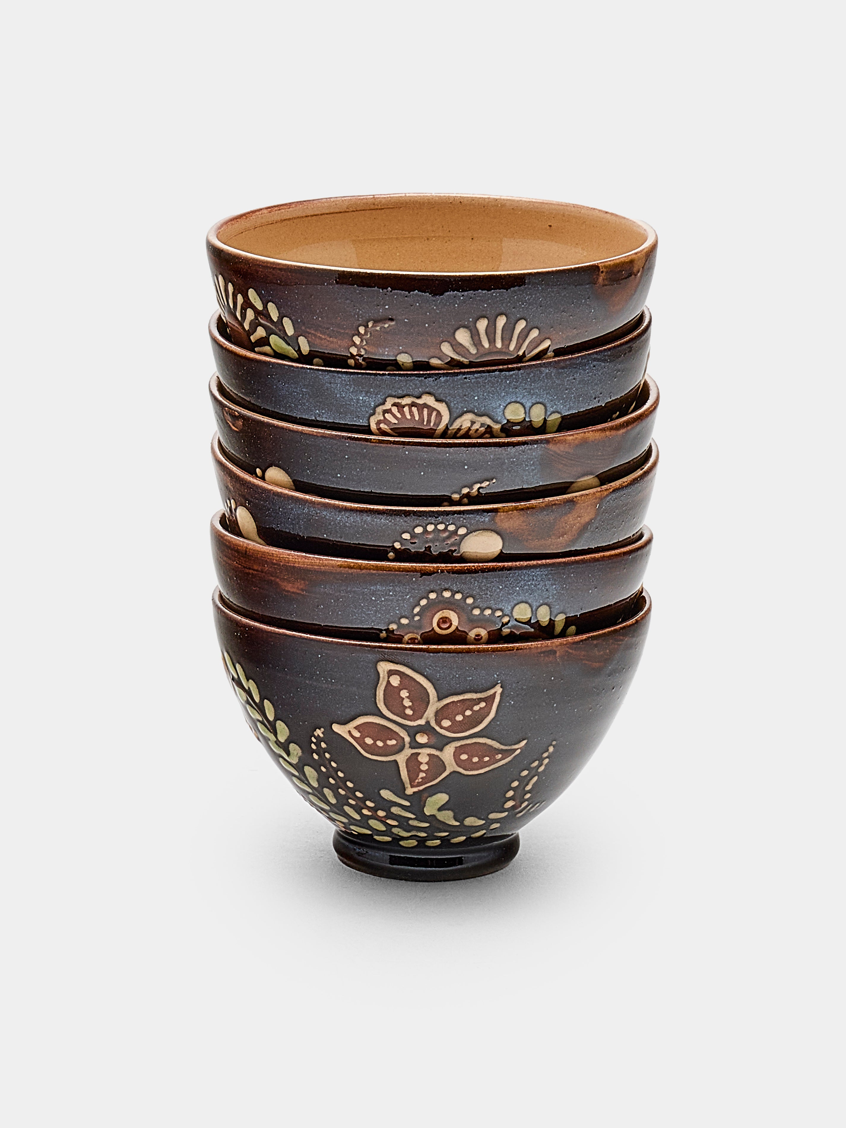 Poterie d’Évires Flowers Hand-Painted Ceramic Petit Bowls (Set of 6)