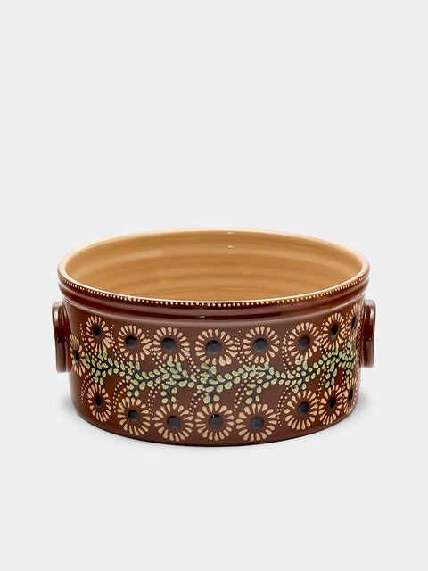 Poterie d’Évires Flowers Hand-Painted Ceramic Round Pie Dish
