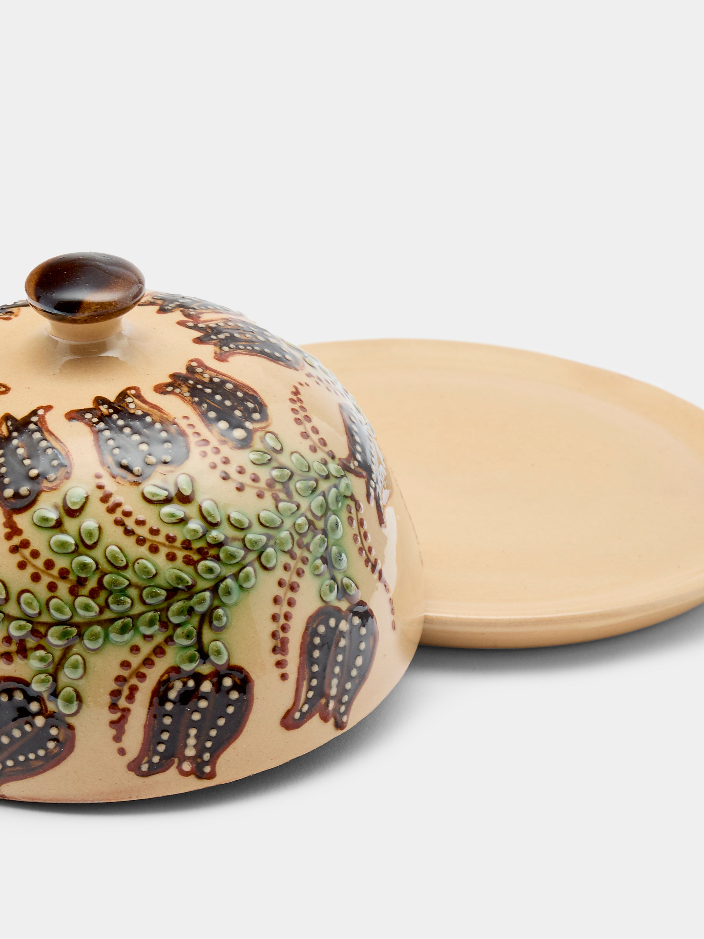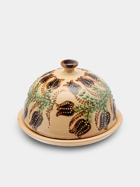 Poterie d’Évires Flowers Hand-Painted Ceramic Small Butter Dish